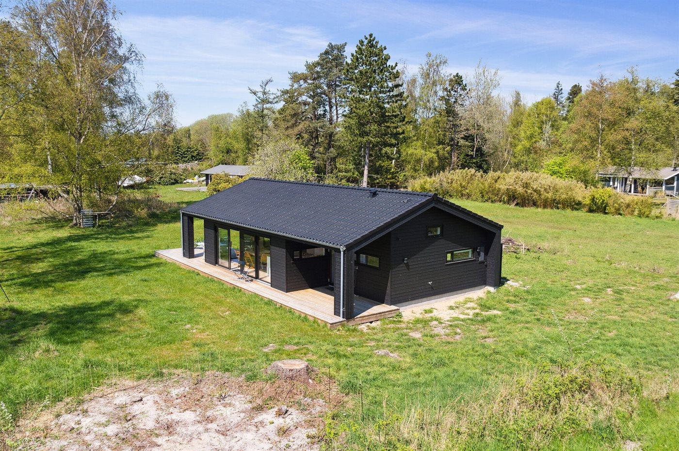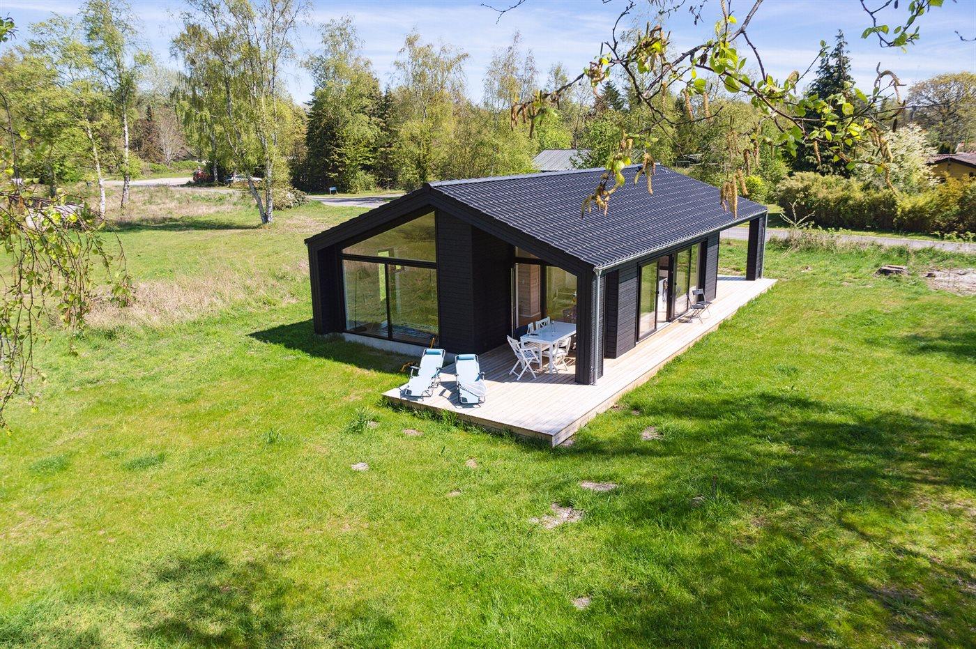 Modernes Ferienhaus nahe kinderfreundlichem Strand in ruhiger Naturumgebung, ideal für Familien und Erholungssuchende.