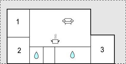 Badezimmer (nr. 1) - WC. Warmes und kaltes Wasser. Dusche und Badewanne