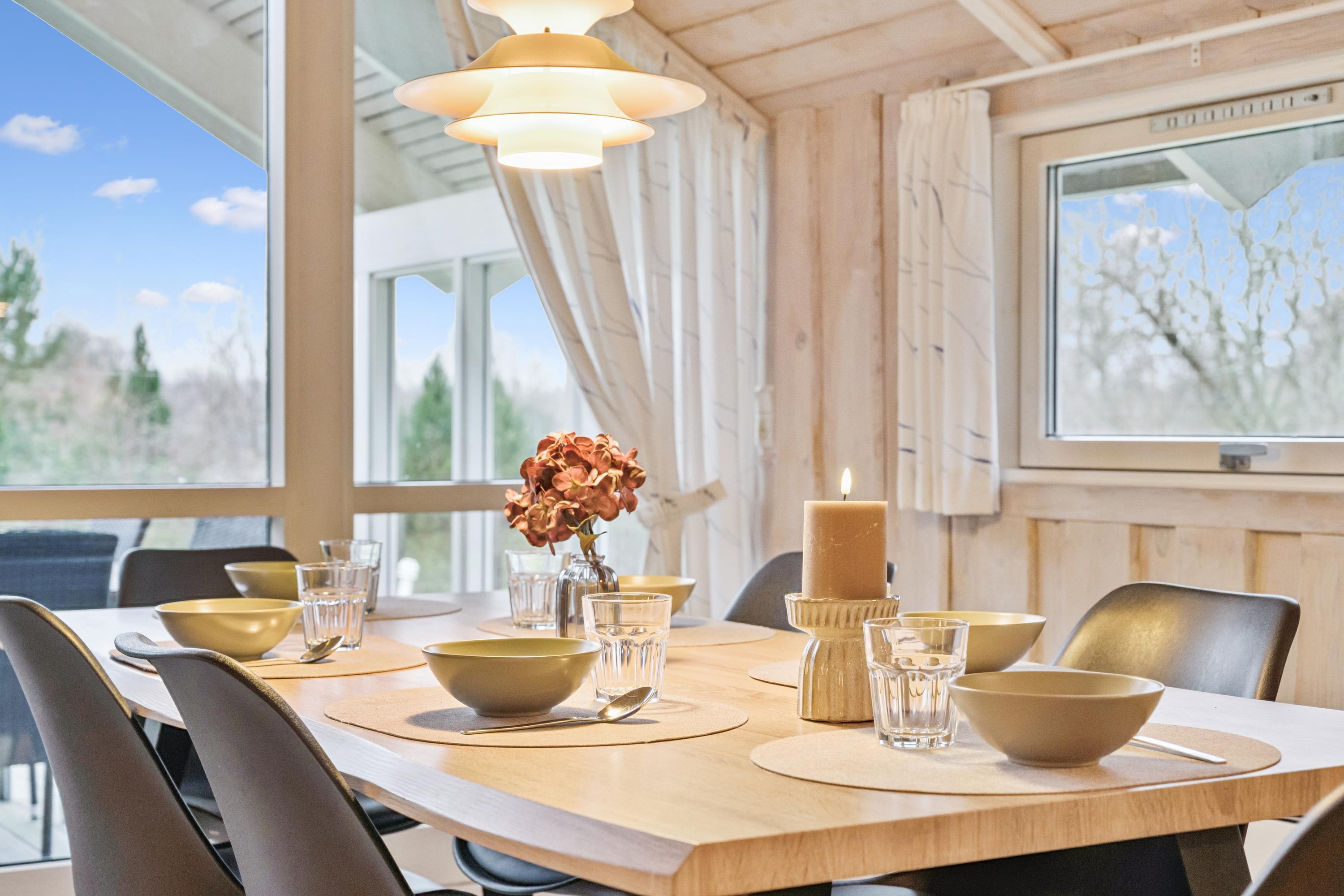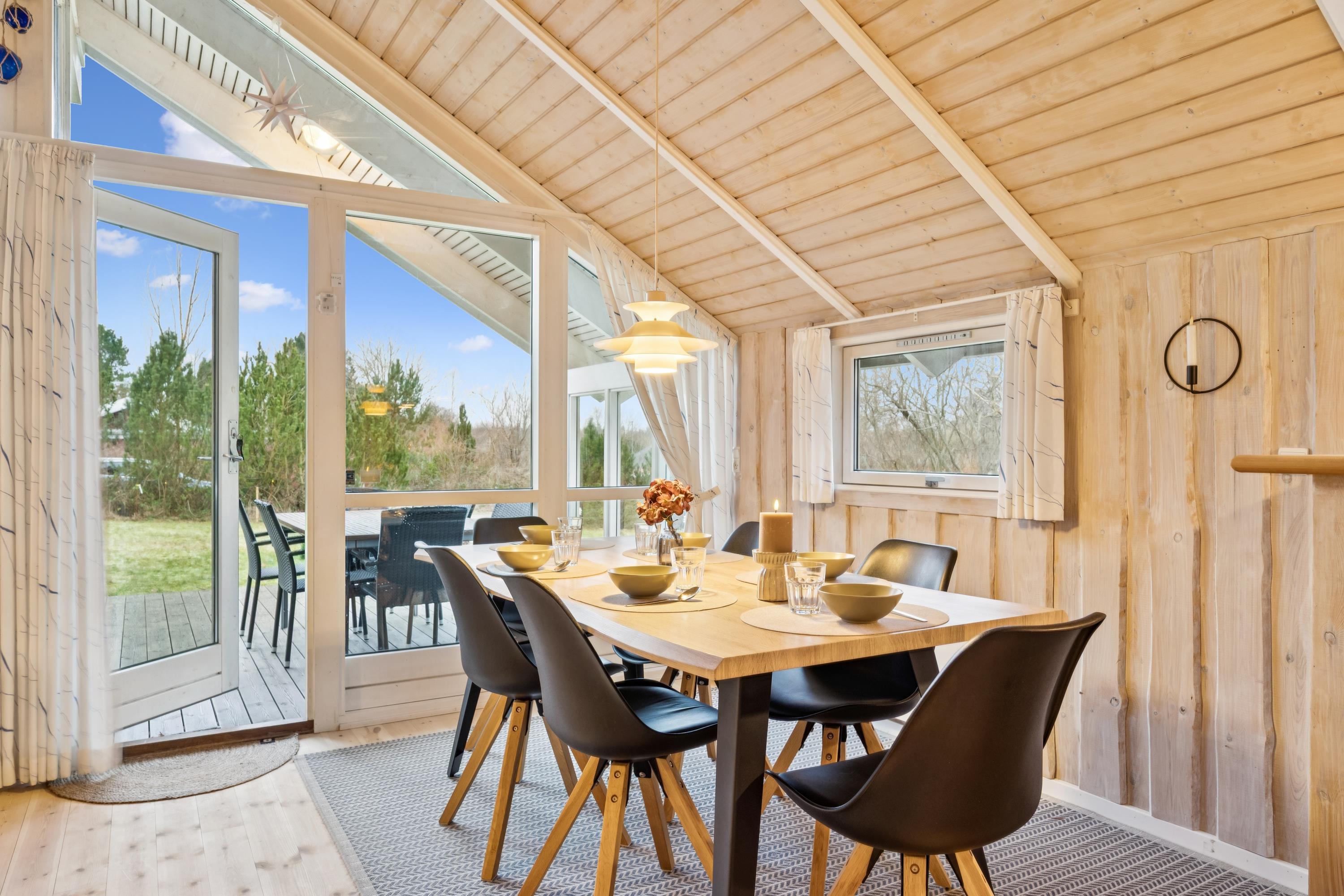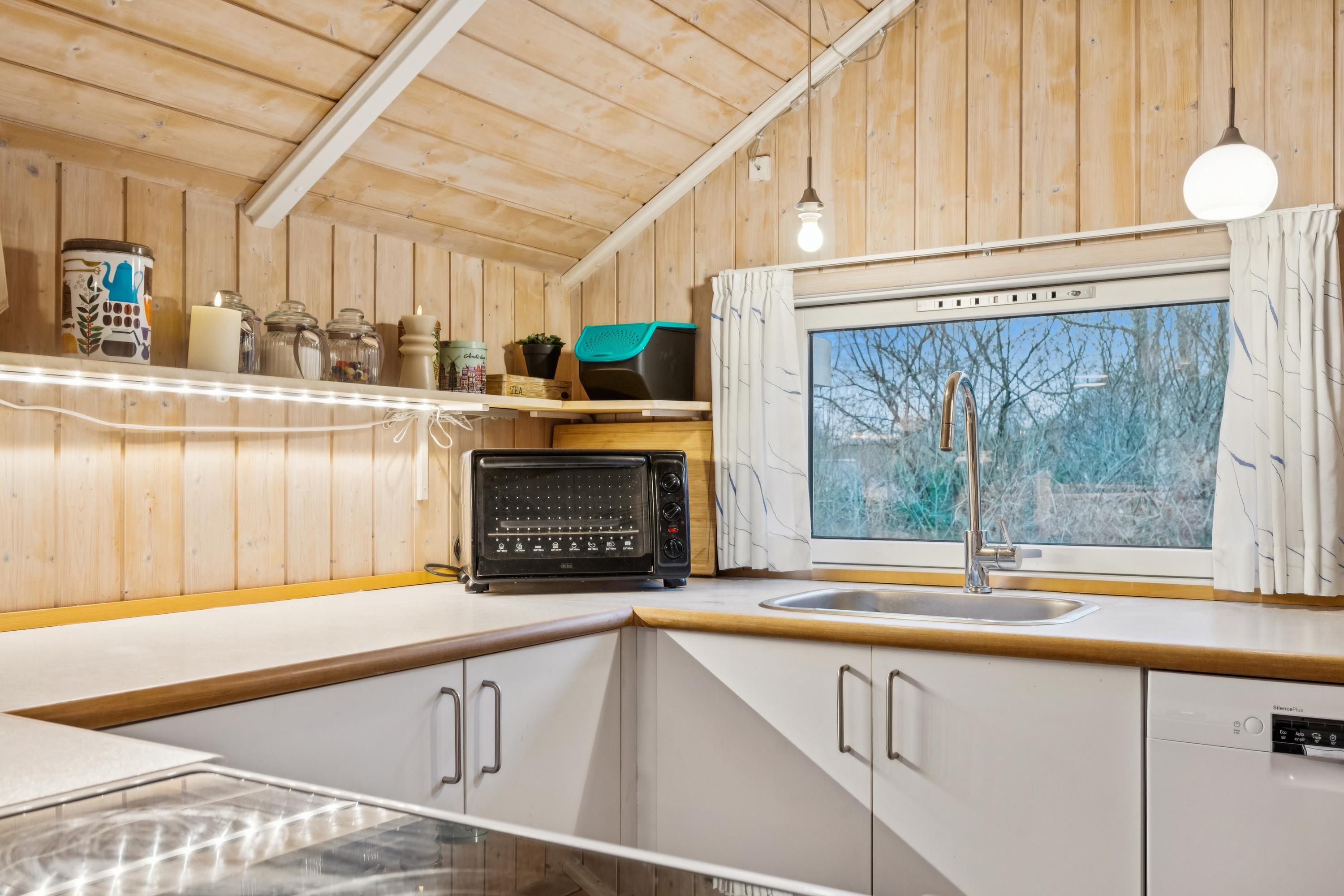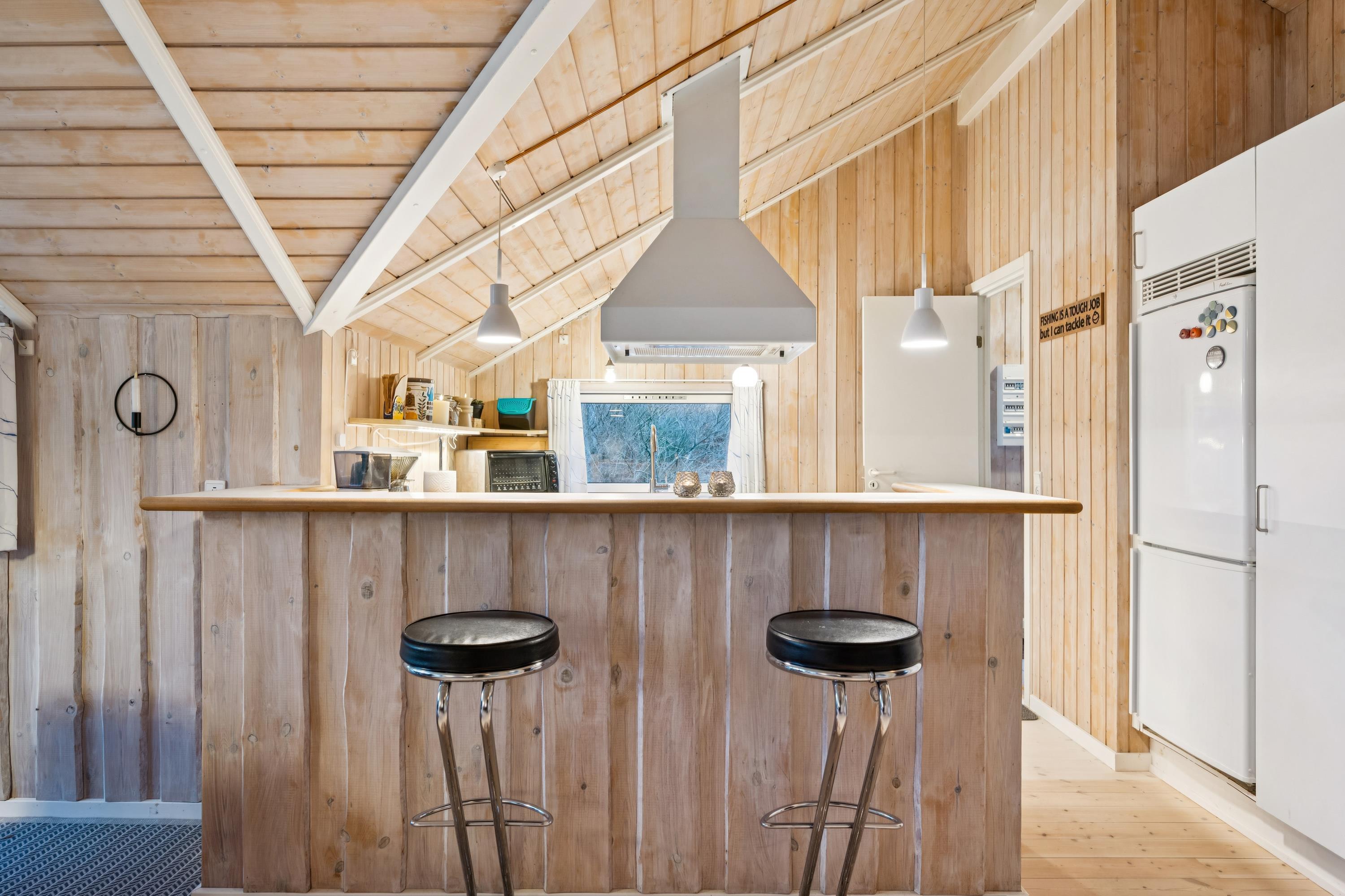 Willkommen in diesem besonders gemütlichen und sehr gepflegten Ferienhaus. Das Haus verfügt über ein geschmackvoll eingerichtetes und behagliches Wohnzimmer mit komfortablen Möbeln, Kaminofen und Wärmepumpe. Vom Wohnzimmer aus haben Sie Zugang zu einer schönen, überdachten Terrasse mit Gartenmöbeln. In Verbindung mit dem Wohnzimmer liegt die gemütliche Küche, die u. a. mit einem Geschirrspüler ausgestattet ist, sowie ein einladender Essbereich.