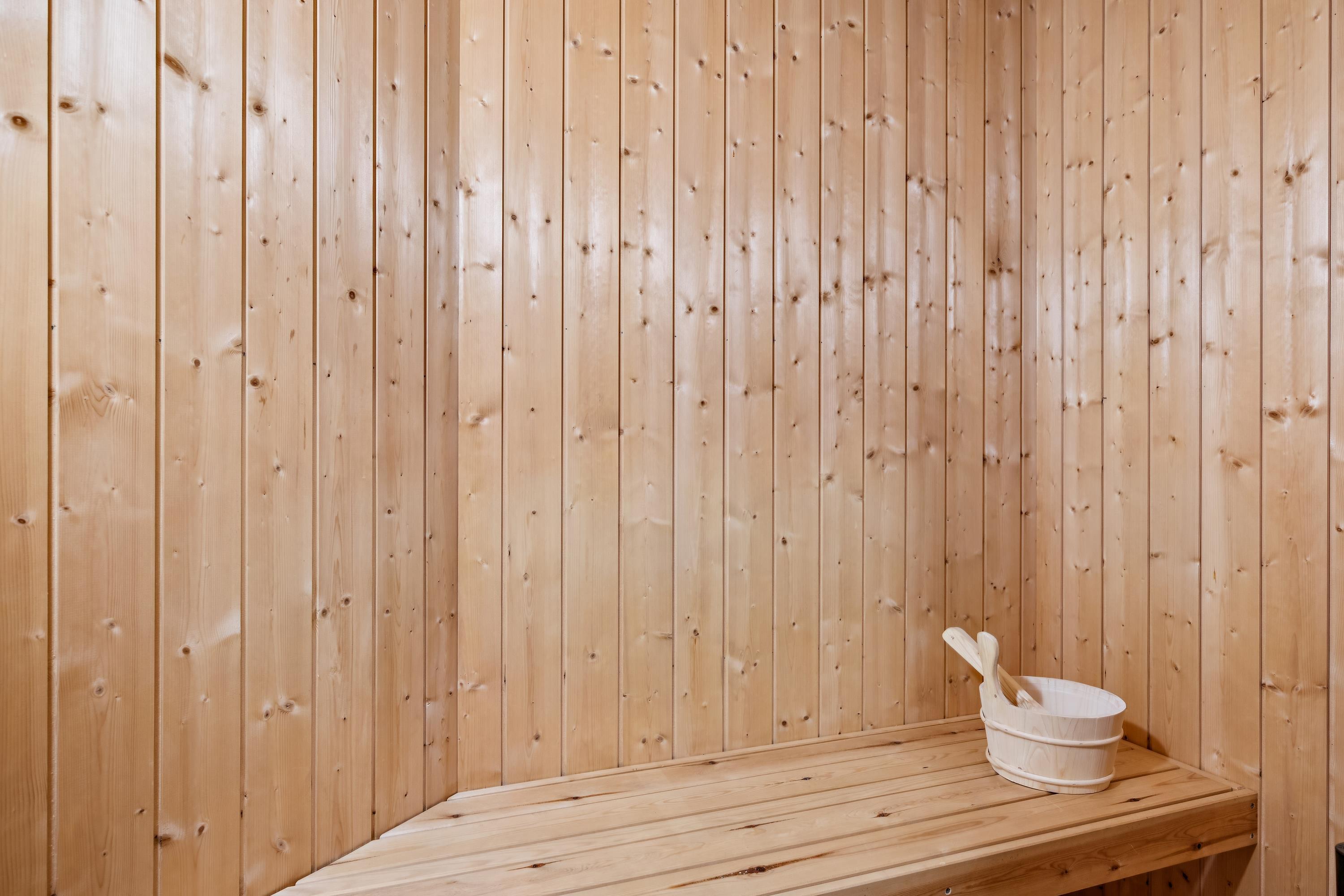 Die Schlafplätze des Hauses verteilen sich auf drei schöne Schlafzimmer: ein Zimmer mit einem Etagenbett und einem Einzelbett sowie zwei Zimmer mit Doppelbetten. Schönes Badezimmer mit Badewanne, Dusche und Zugang zur hauseigenen Sauna. Zusätzlich gibt es ein Gäste-WC mit Waschbecken.