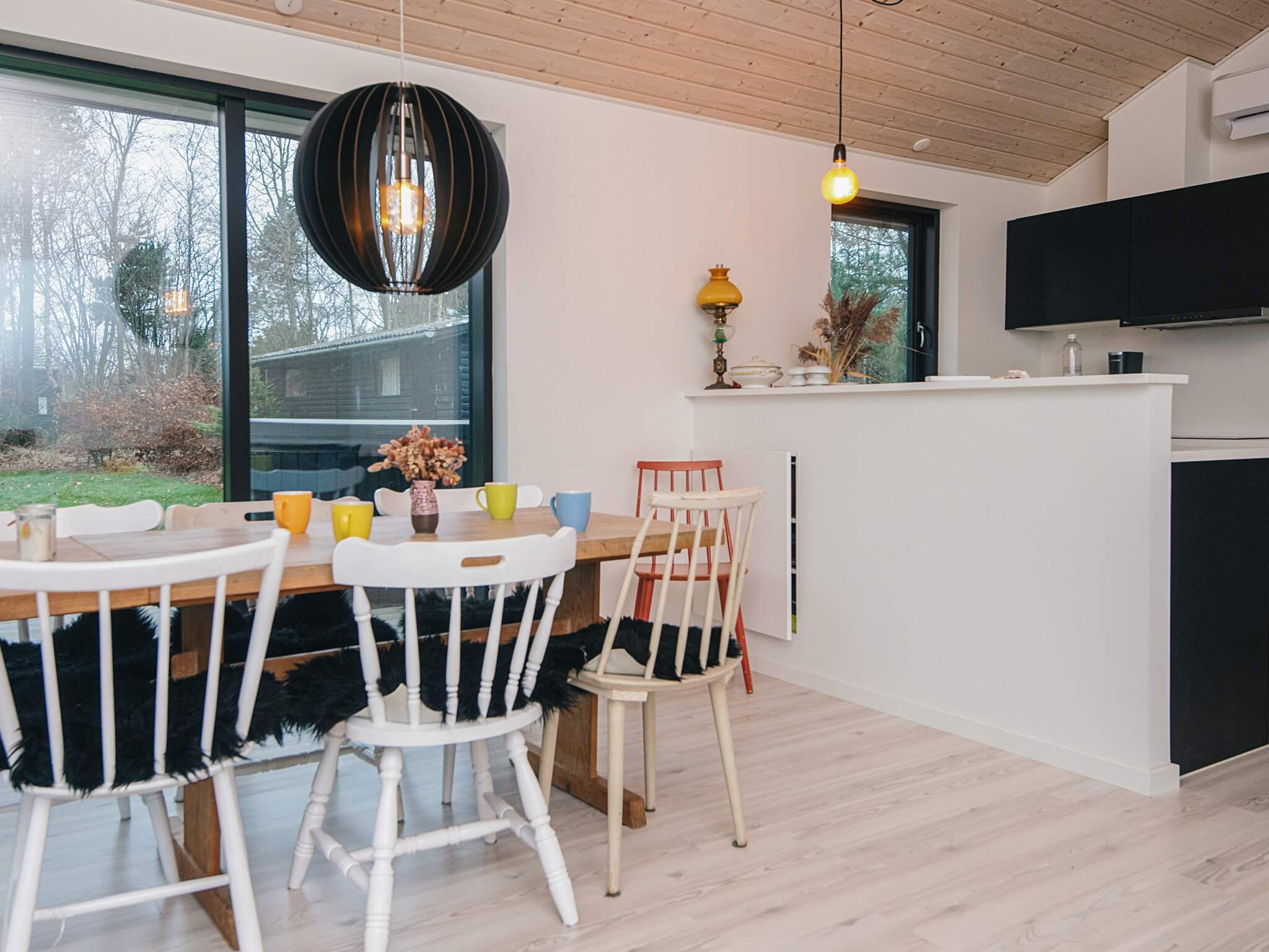 Huset byder på et åbent og veludstyret køkken med induktionskomfur, separat ovn, mikroovn, køle-/fryseskab og opvaskemaskine – perfekt til både hverdagsmad og feriemiddage.