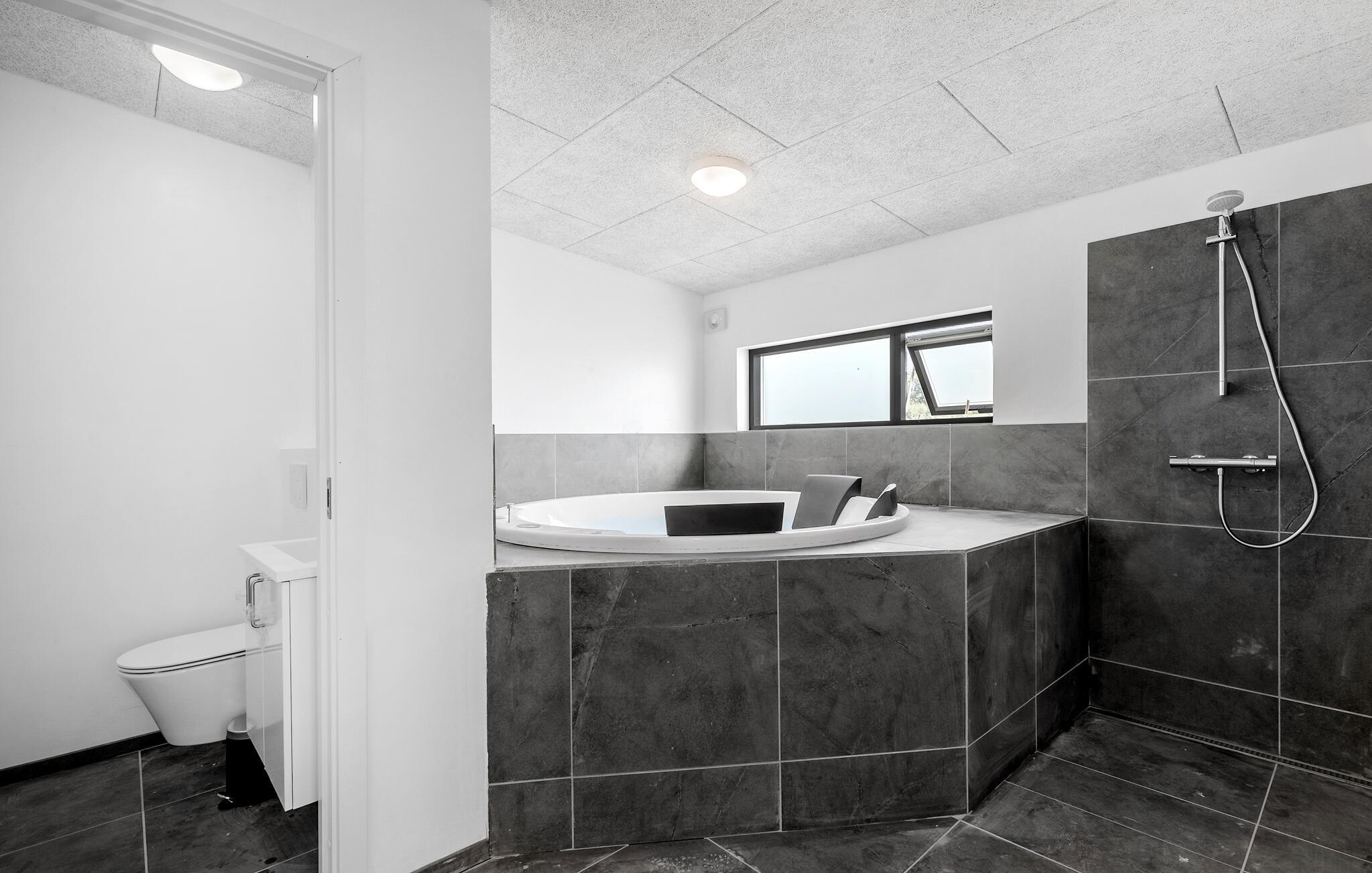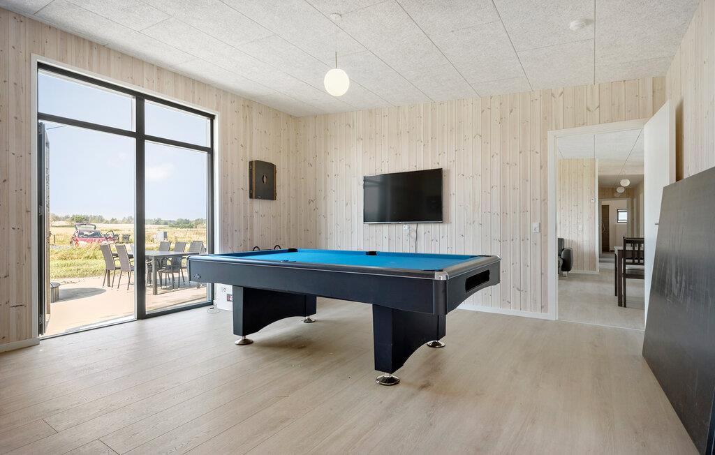 In Gjerrild, nur unweit vom nächsten Sandstrand entfernt, begrüßt Sie dieses moderne Ferienhaus, das Stil, Komfort und jede Menge Unterhaltungsmöglichkeiten vereint. In diesem Haus ist Platz für mehrere Familien oder ein größere Freundesgruppe. Beginnen Sie Ihren Tag mit einem entspannten Frühstück an dem großen Esstisch vor der offenen Küche, die mit allem ausgestattet ist, was Sie benötigen. Große Fensterfronten sorgen für viel Tageslicht und geben Ihnen das Gefühl, mitten in der Natur zu sein.
