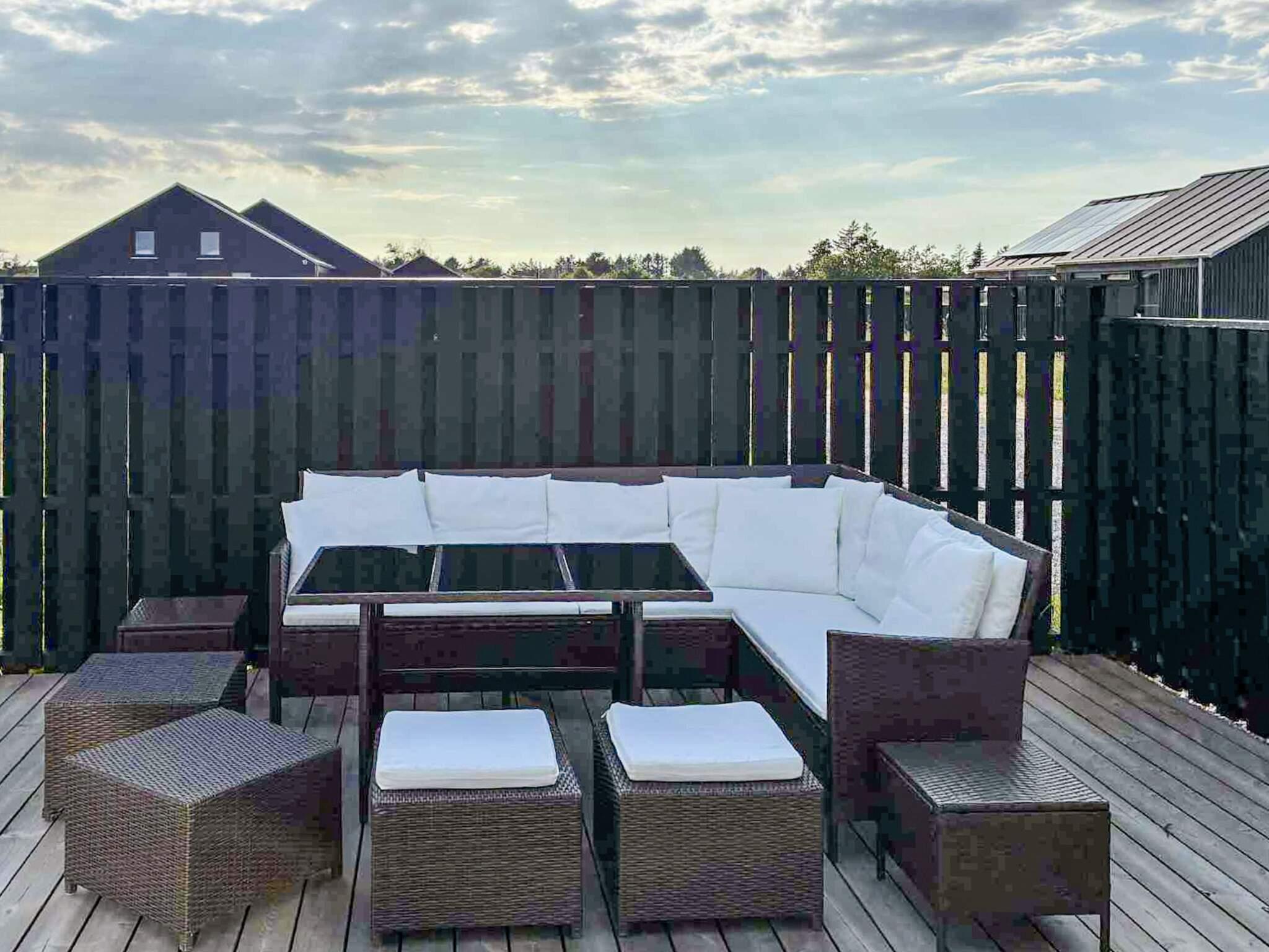 Neu gebautes und modernes Ferienhaus mit Whirlpool und Infrarotsauna auf einem Naturgrundstück in einem großen Ferienhausgebiet am Grønhøj Strand, einem der schönsten Strände Nordeuropas mit kilometerlangem, feinem weißen Sand und hohen Dünen. Das Ferienhaus wurde 2025 erbaut und ist hell und geräumig, gut isoliert und äußerst übersichtlich geschnitten. Es bietet Platz für die große Familie, die beim Kochen helfen möchte, oder für Einzelpersonen, die gerne selbst kochen, aber nicht auf die Aktivitäten ihrer Mitreisenden verzichten möchten. Ein echtes „Gesprächshaus“ mit der Küche in der Mitte des Hauses. Dennoch bietet es die Möglichkeit, sich bei Bedarf zurückzuziehen. Das Haus ist modern eingerichtet und dekoriert, und zwei Sofagruppen an jedem Ende des Wohnzimmers schaffen eine gemütliche Atmosphäre. Die großen Fenster, die Wärmepumpe und die hohe Isolierung sorgen für einen geringeren Energieverbrauch im Haus. Das Wohnzimmer ist zur gut ausgestatteten Küche hin offen. Es gibt ein Badezimmer mit Whirlpool für zwei Personen und Zugang zur Infrarotsauna sowie ein Gäste-WC mit Dusche. Es gibt drei Schlafzimmer mit Doppelbetten und Stauraum sowie einen großen Dachboden mit vier Betten. Auf der schönen Terrasse finden Sie immer Schutz, Sonne oder Schatten. Die große Terrasse ist eingezäunt, sodass die Kleinsten draußen spielen können, während die Erwachsenen entspannen. Oder Sie können sich in Ruhe hinlegen und ein Sonnenbad nehmen. Das Gelände ist eben und naturbelassen und eignet sich perfekt zum Spielen mit den Kindern und zum Grillen.