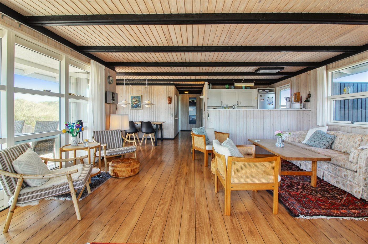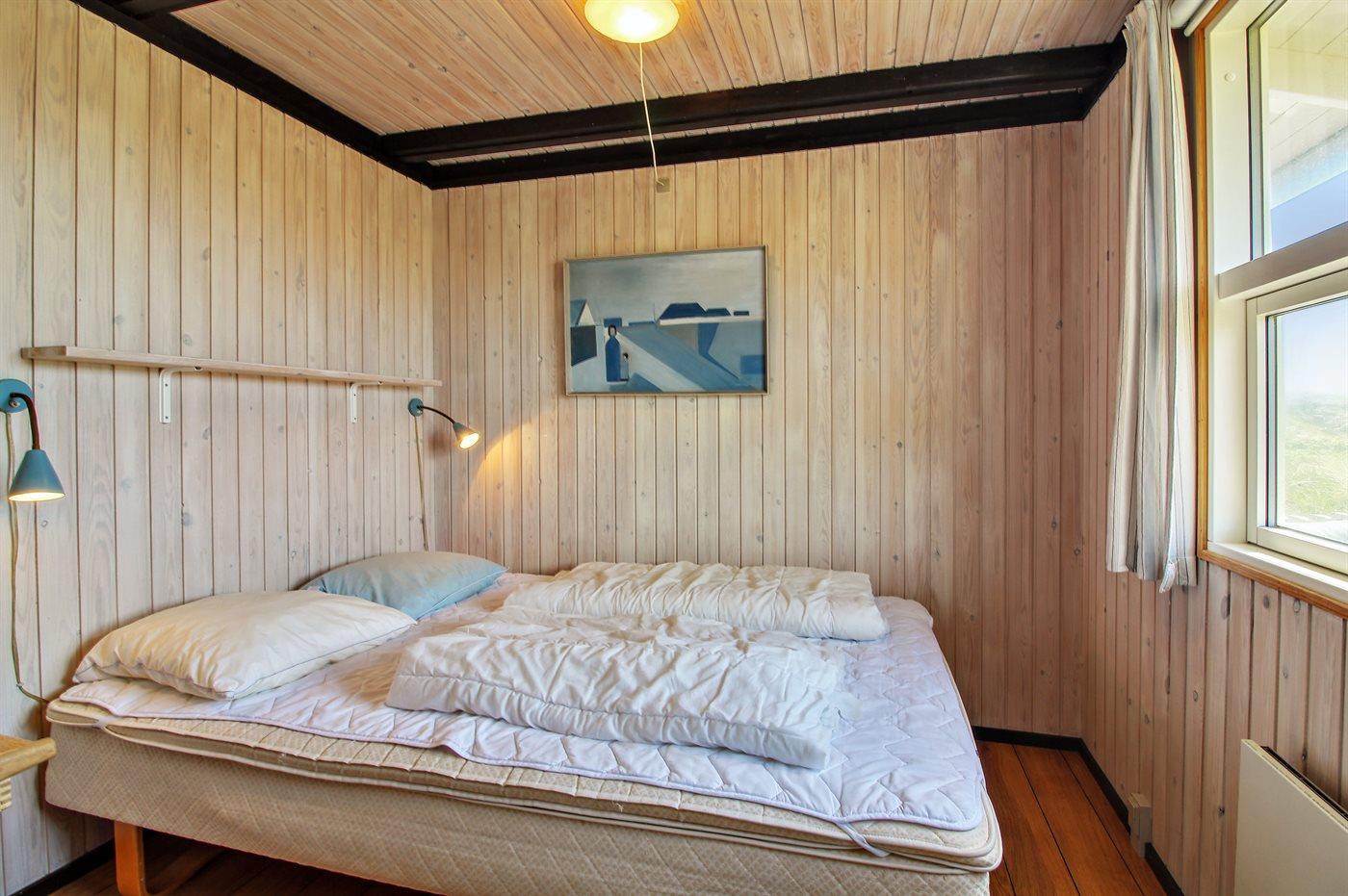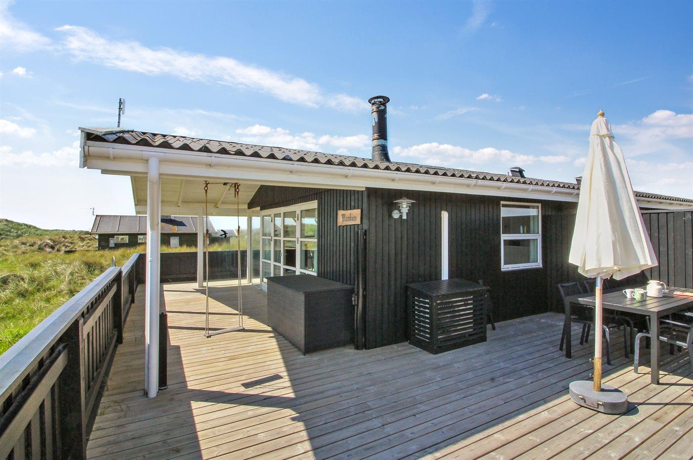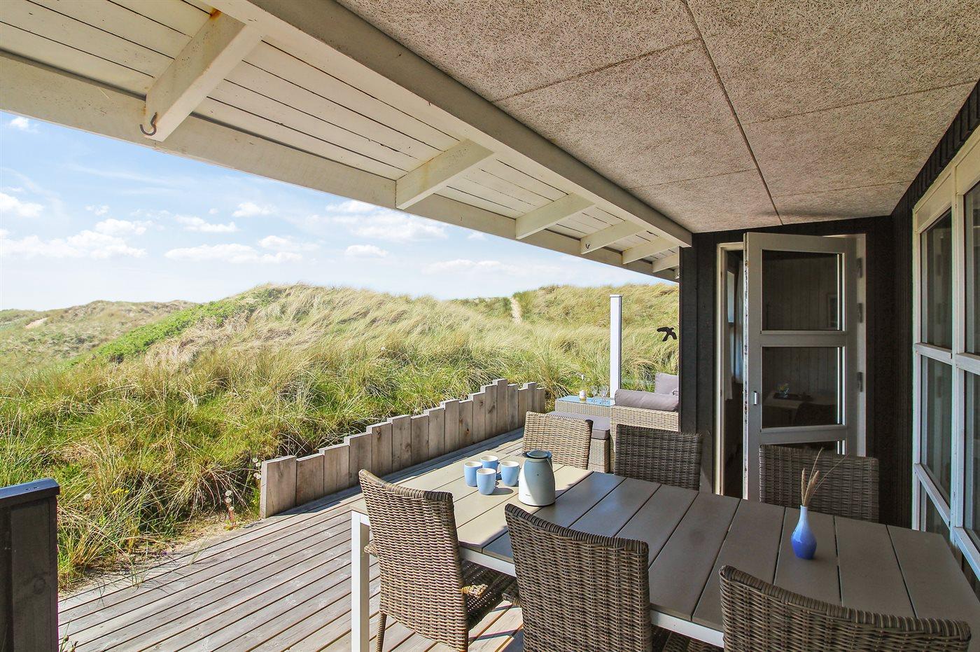 In der Dünenlandschaft südlich von Løkken finden Sie dieses Ferienhaus, laufend renoviert. Zwischen den Dünen gibt es einen Fußweg zum Wasser sowie einen Natursandkasten. Zum Haus gehört ein großer abgeschirmter nach Südosten gerichteter Sonnenhof und nach Südwesten gerichtete, überdachte Terrasse mit diversen Gartenmöbeln. Besonders vom Grundstück haben Sie eine schöne Aussicht über die Dünen, das Ferienhausgebiet und die umgebene Landschaft.