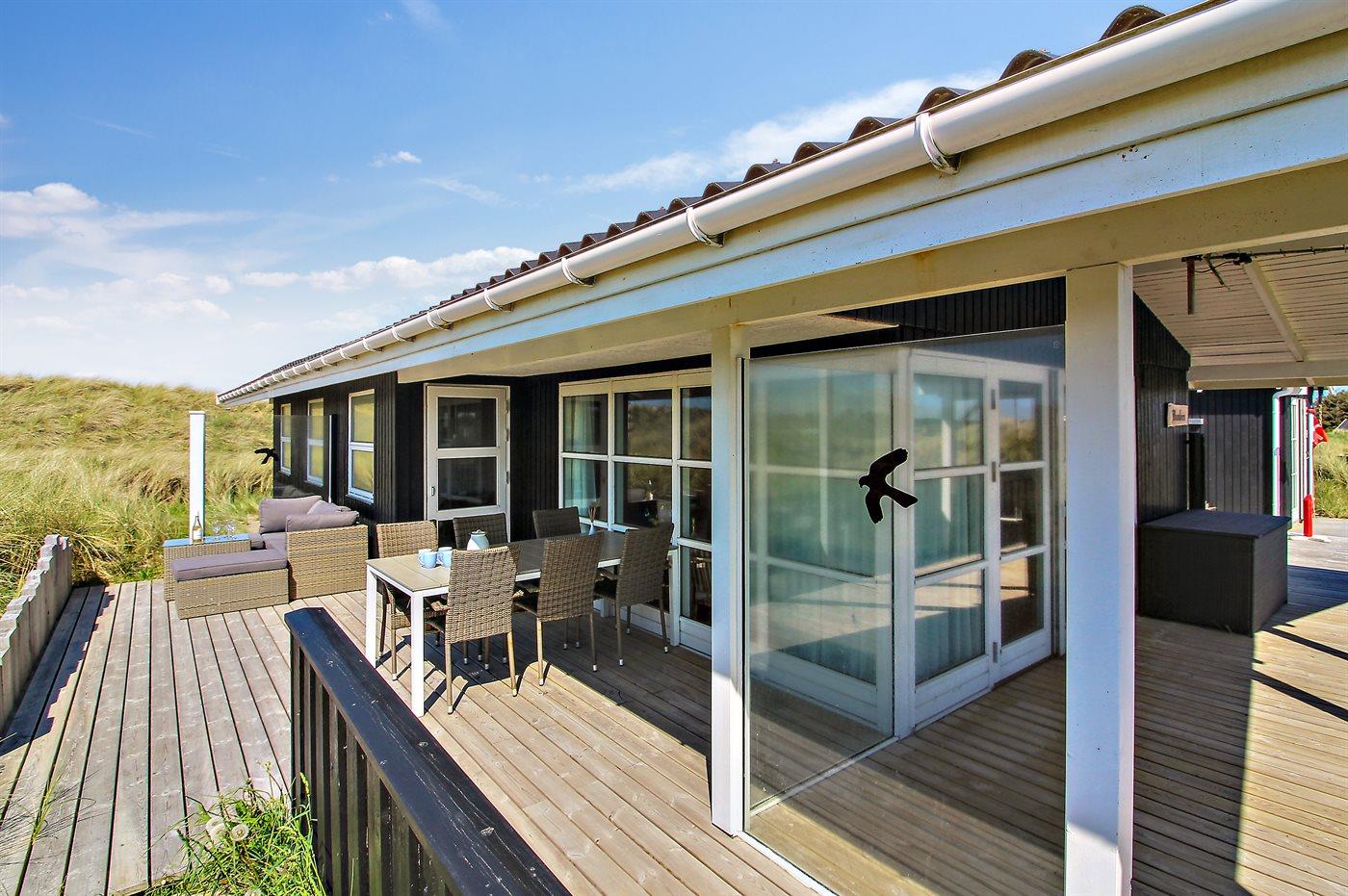 Die Ferienunterkunft liegt auf einem 1200 m² großen Dünengrundstück.Naturgrundstück. Die Entfernung zum Meer beträgt 140 m. Die nächste Einkaufsmöglichkeit liegt 1000 m entfernt. Es steht ein 50 m² Terrassenareal zur Verfügung. Außerdem gibt es 14 m² überdachte Terrasse. Geräteraum. Schaukel. Außendusche. Parkplatz auf dem Grundstück.