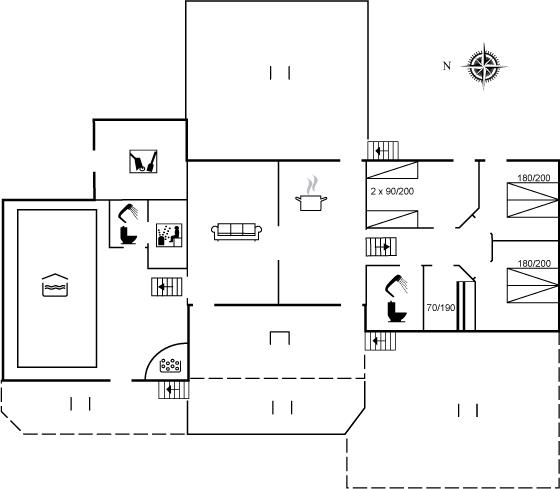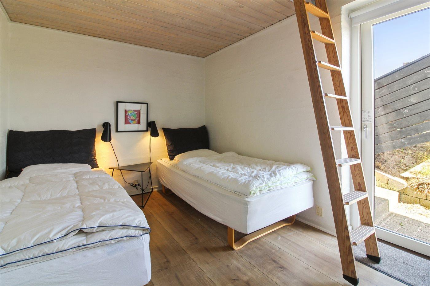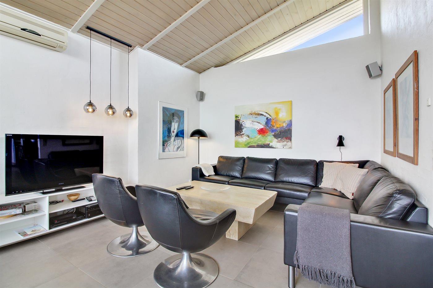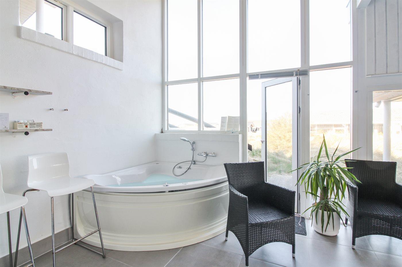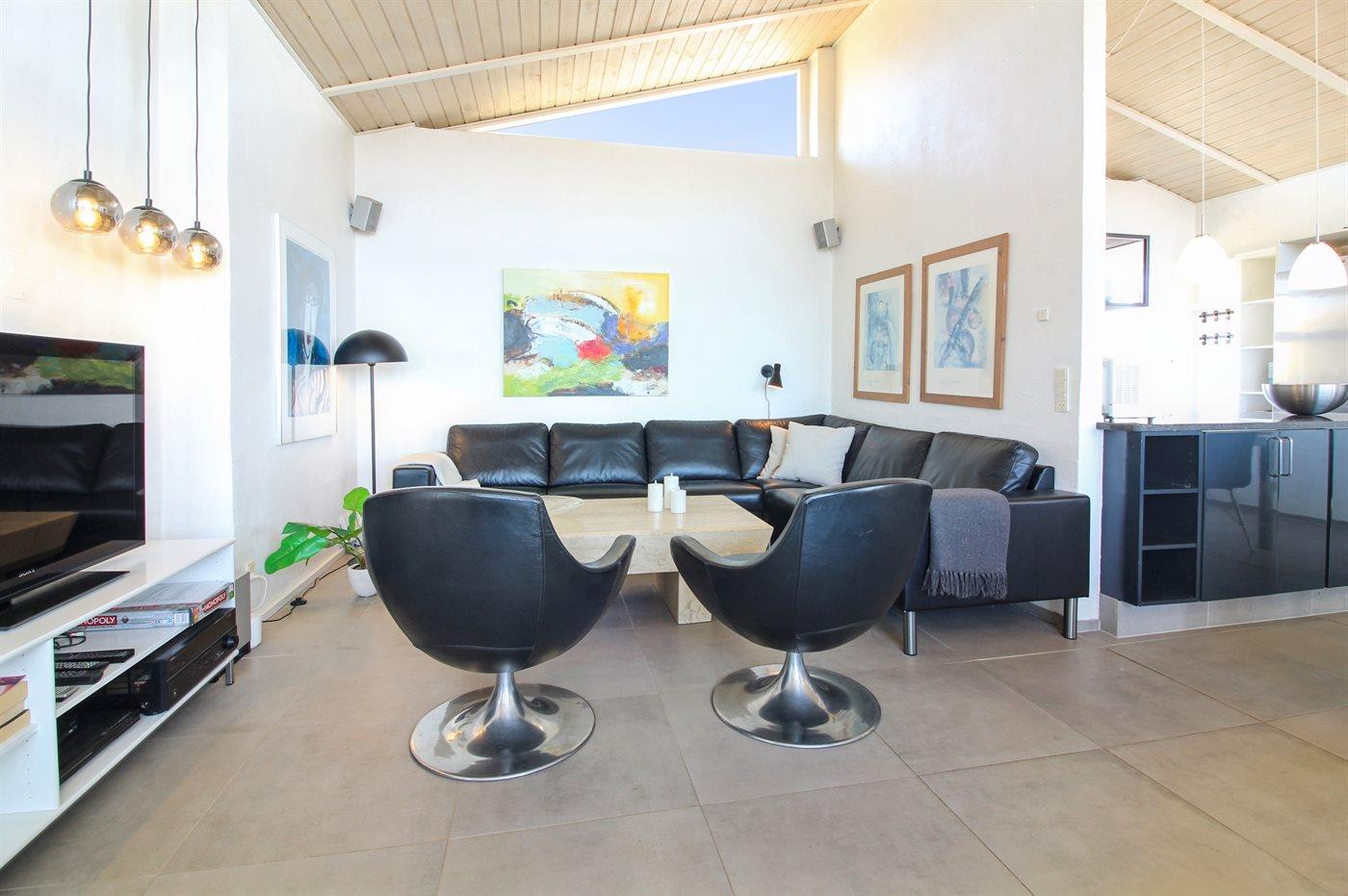 Auf einem großen, hügeligen Dünengrundstück liegt dieses von einem Architechten gezeichneten Ferienhaus hübsch im Grundstück angepasst, so dass die 2 Terrassen nach Osten mit natürlichem Schutz von dem Westenwind legen. Es gibt ferner 3 Terrassen nach Westen. Das Haus ist gut isoliert und mit energiegerechten Türen und Fenstern. Luft-zum-Wasser-Wärmepumpe, die Energie für Pool-Wasser und Nutzwasser sowie Heizung für Poolraum und Küche/Wohnzimmer produziert. Dieses bedeutet niedrige Energiekosten. Das Zugpflaster des Hauses ist die Poolabteilung mit Swimmingpool, Gegenstromanlage, Whirlpool und Bar. Es gibt direkten Zutritt zur Sauna und Badezimmer mit Waschmaschine und Wäschetrockner sowie Zutritt zu einer nach Westen gerichteten Terrasse. Die einzigartige Architektur in 3 versetzten Ebenen ist ein ganz besonderes Erlebnis. Die 2 Schlafplätze auf Matratzen finden Sie im offenen Obergeschoss. Überall im Haus sind erstklassige Materialien verwendet worden. Vom Wohnzimmer gibt es eine prachtvolle Aussicht über Dünen und Meer. Doppelcarport vorhanden. Auf dem Grundstück finden Sie die höchste Düne des Gebietes mit Treppe von der Terrasse zur Aussichtsbank mit einer 180 Grad Panoramaaussicht über die Nordsee.