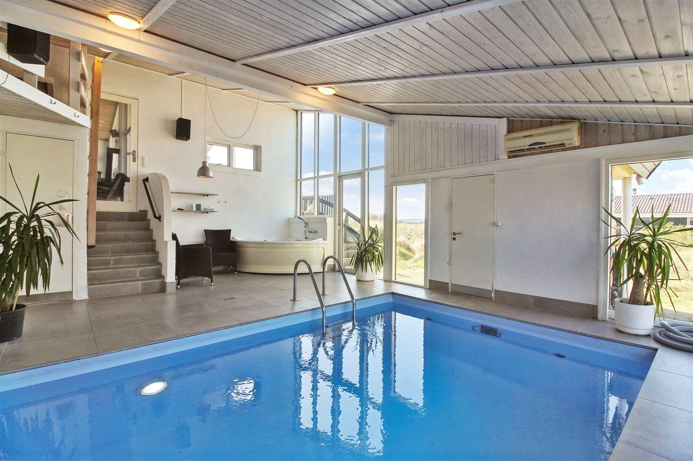 Modernes Ferienhaus mit Pool, Sauna und Meerblick in Løkken, ideal für Familien und erholsame Urlaubstage.