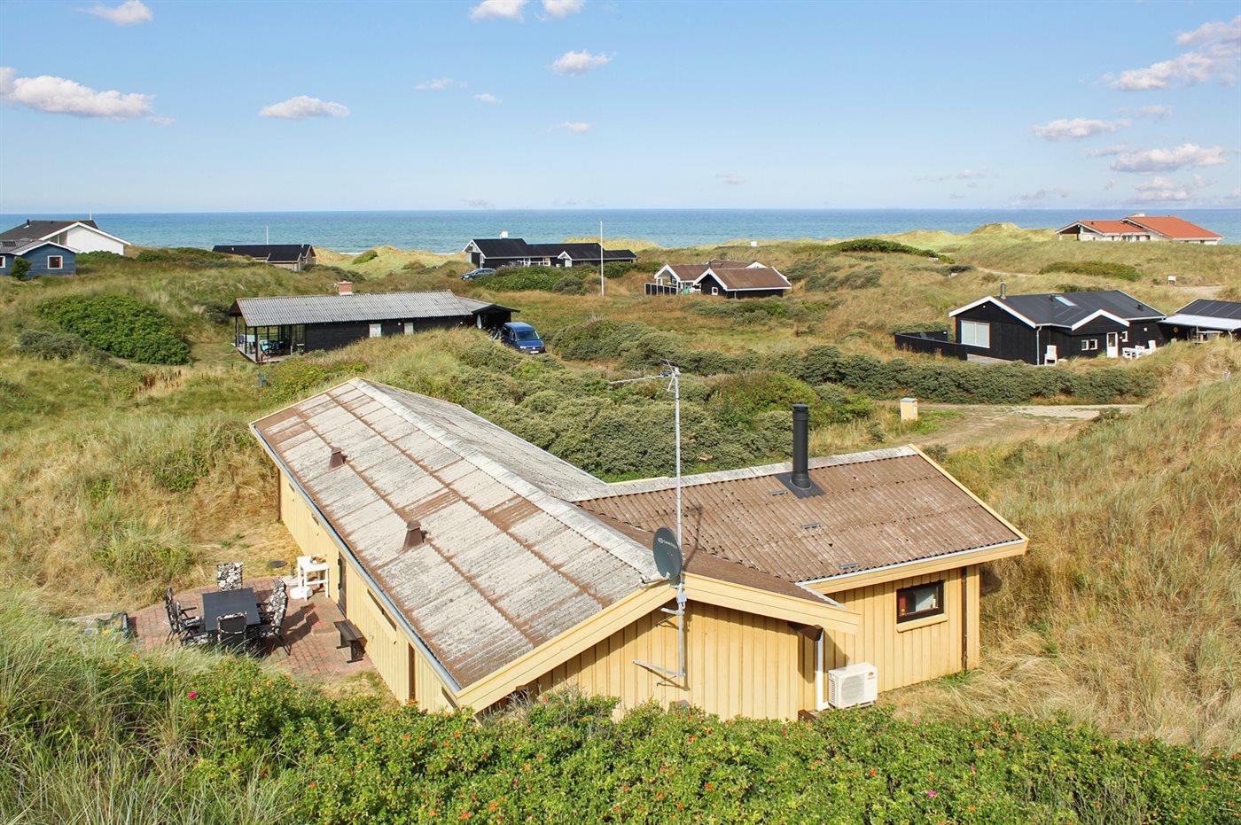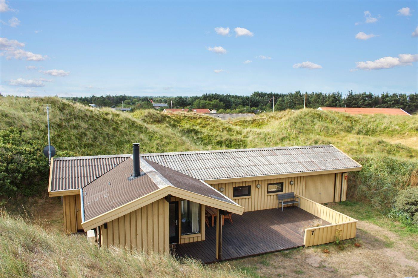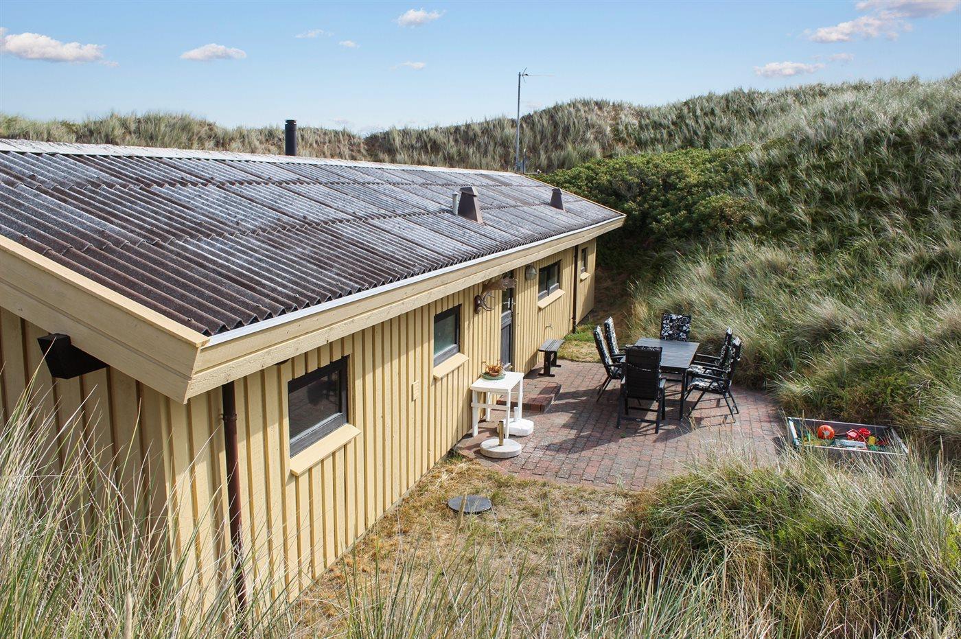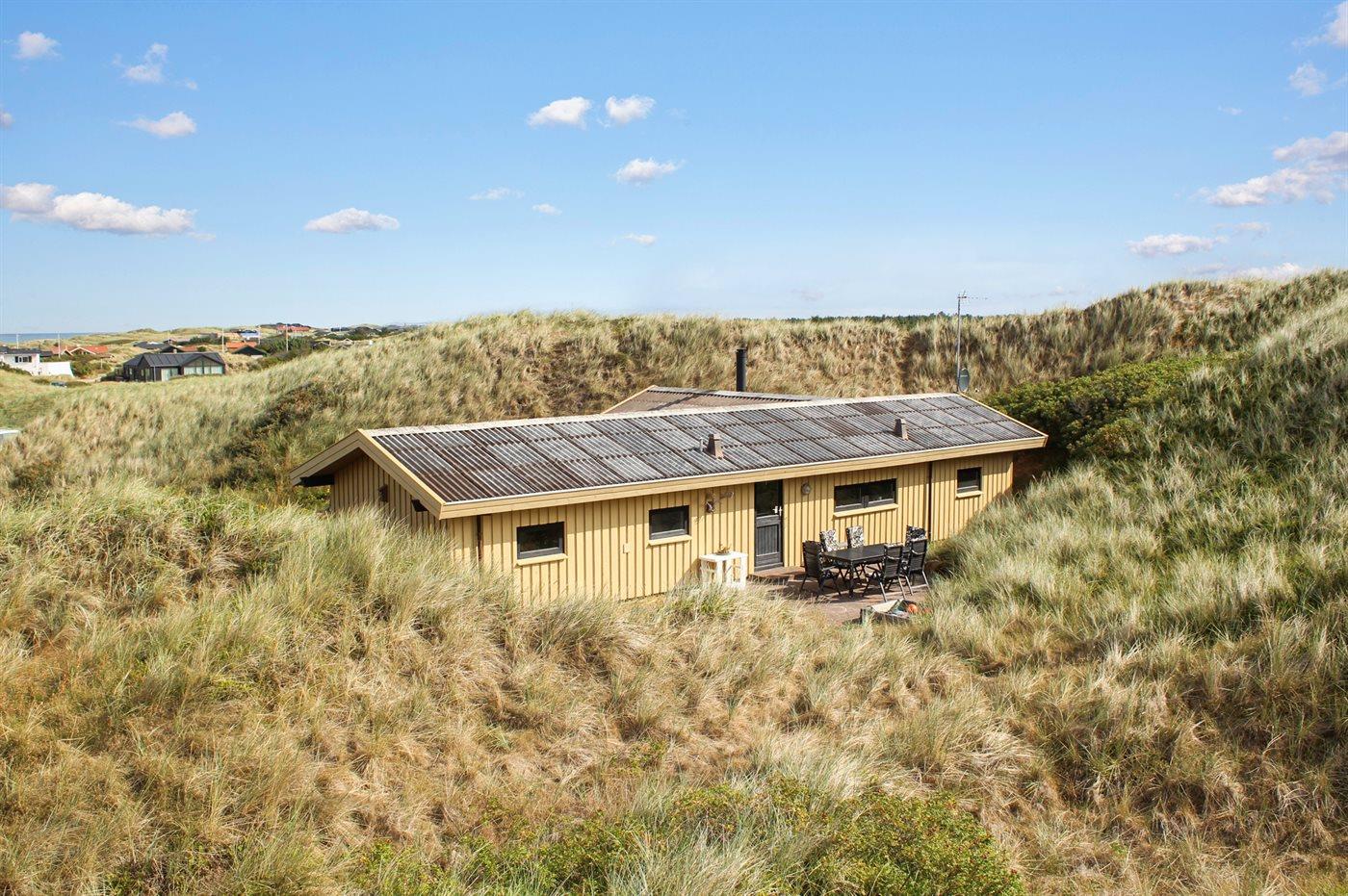 In der hügeligen Dünenlandschaft von Grönhöj liegt versteckt dieses ältere aber gut erhaltene Ferienhaus. Es liegt zurückgezogen auf einem großen Grundstück am Ende einer Sackgasse in einer ruhigen und naturschönen Ferienhaussiedlung nashe an Strand und Nordsee.