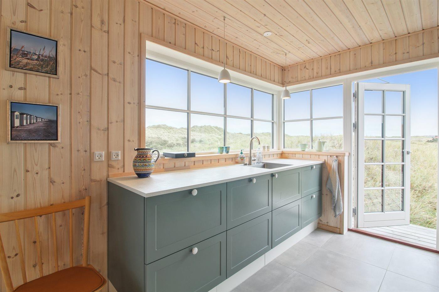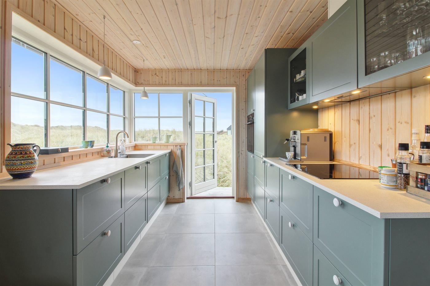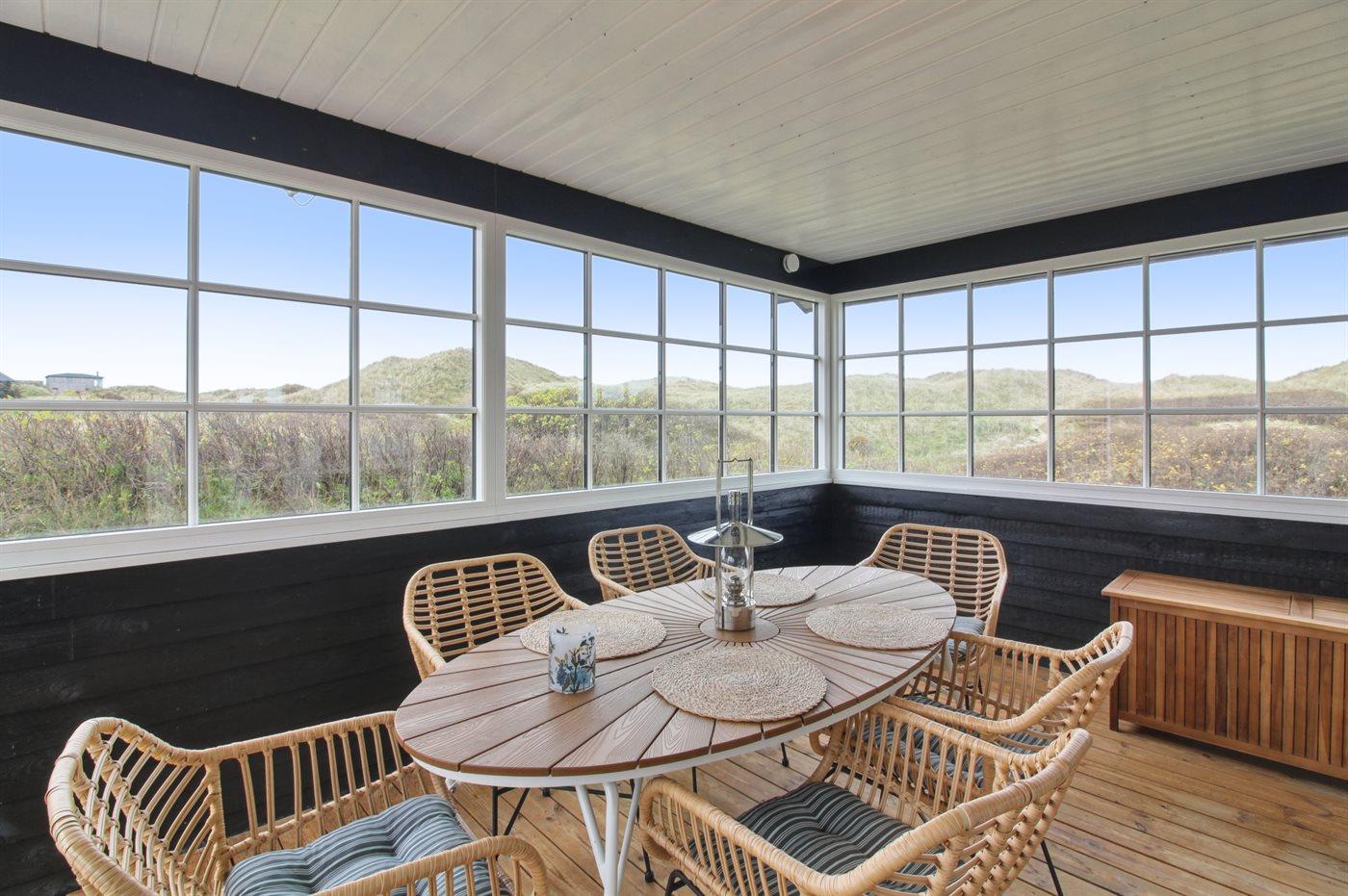 Das Ferienhaus verfügt über eine gut ausgestattete, offene Küche mit großen Fenstern, die für ein gutes Lichteinfall sorgen. Angrenzend zum Wohnzimmer befindet sich ein schöner Wintergarten. Darüber hinaus gibt es drei gute Schlafzimmer und ein großes Badezimmer mit Waschmaschine, Wäschetrockner und Fußbodenheizung. Das Ferienhaus liegt am Ende einer Sackgasse auf einem großen Dünengrundstück zwischen wogendem Strandhafer und Hagebuttensträuchern.