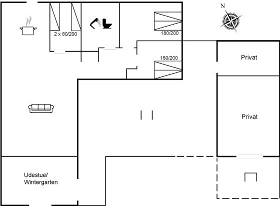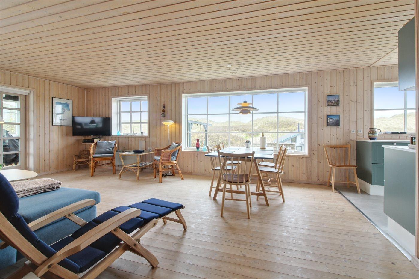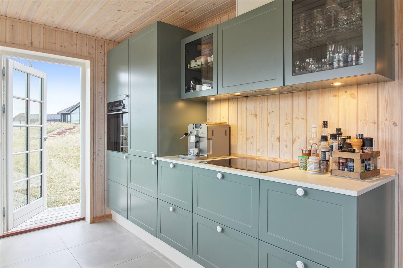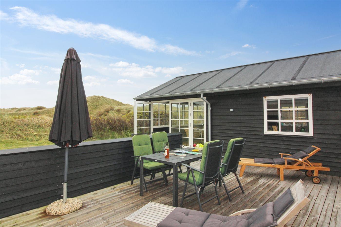 Das Ferienhaus verfügt über eine gut ausgestattete, offene Küche mit großen Fenstern, die für ein gutes Lichteinfall sorgen. Angrenzend zum Wohnzimmer befindet sich ein schöner Wintergarten. Darüber hinaus gibt es drei gute Schlafzimmer und ein großes Badezimmer mit Waschmaschine, Wäschetrockner und Fußbodenheizung. Das Ferienhaus liegt am Ende einer Sackgasse auf einem großen Dünengrundstück zwischen wogendem Strandhafer und Hagebuttensträuchern.