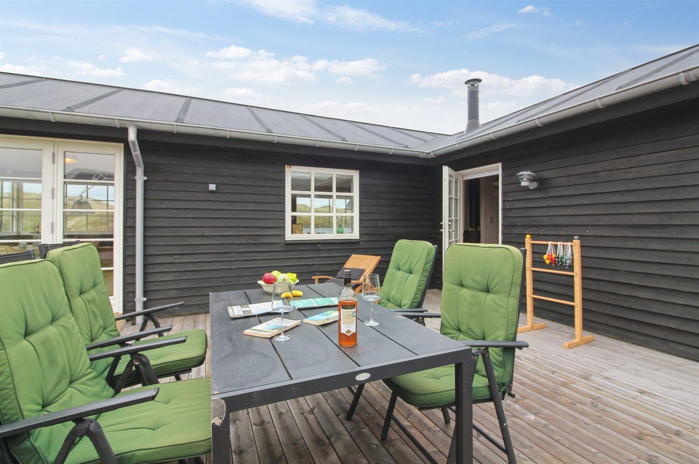Die Ferienunterkunft liegt auf einem 1391 m² großen Dünengrundstück. Die Entfernung zum Meer beträgt 150 m. Die nächste Einkaufsmöglichkeit liegt 5000 m entfernt. In einem Abstand von 5500 m gibt es einen Golfplatz. Es steht ein offenes Terrassenareal zur Verfügung. Außerdem gibt es überdachte Terrasse. Zutritt zu einem Wintergarten. Außendusche. Es steht ein Grill zur Verfügung. Es ist ein Ladestecker für Elektroautos installiert. Ladestecker Typ 2. Parkplatz auf dem Grundstück.