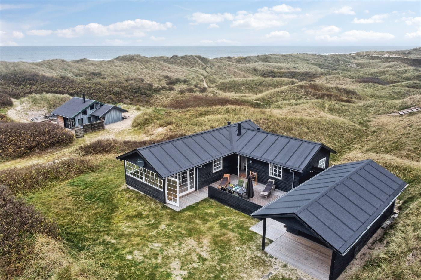 Modernes Ferienhaus in Dünenlandschaft bei Grønhøj, 150 m vom Meer, mit Wintergarten und Elektroauto-Ladestation.
