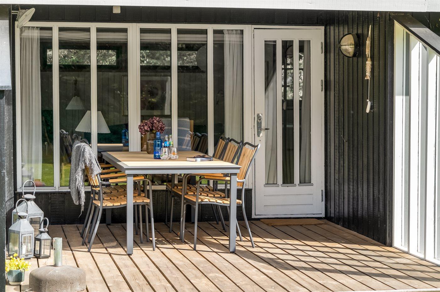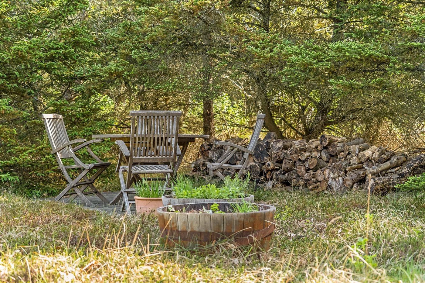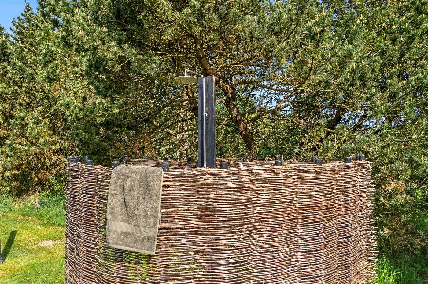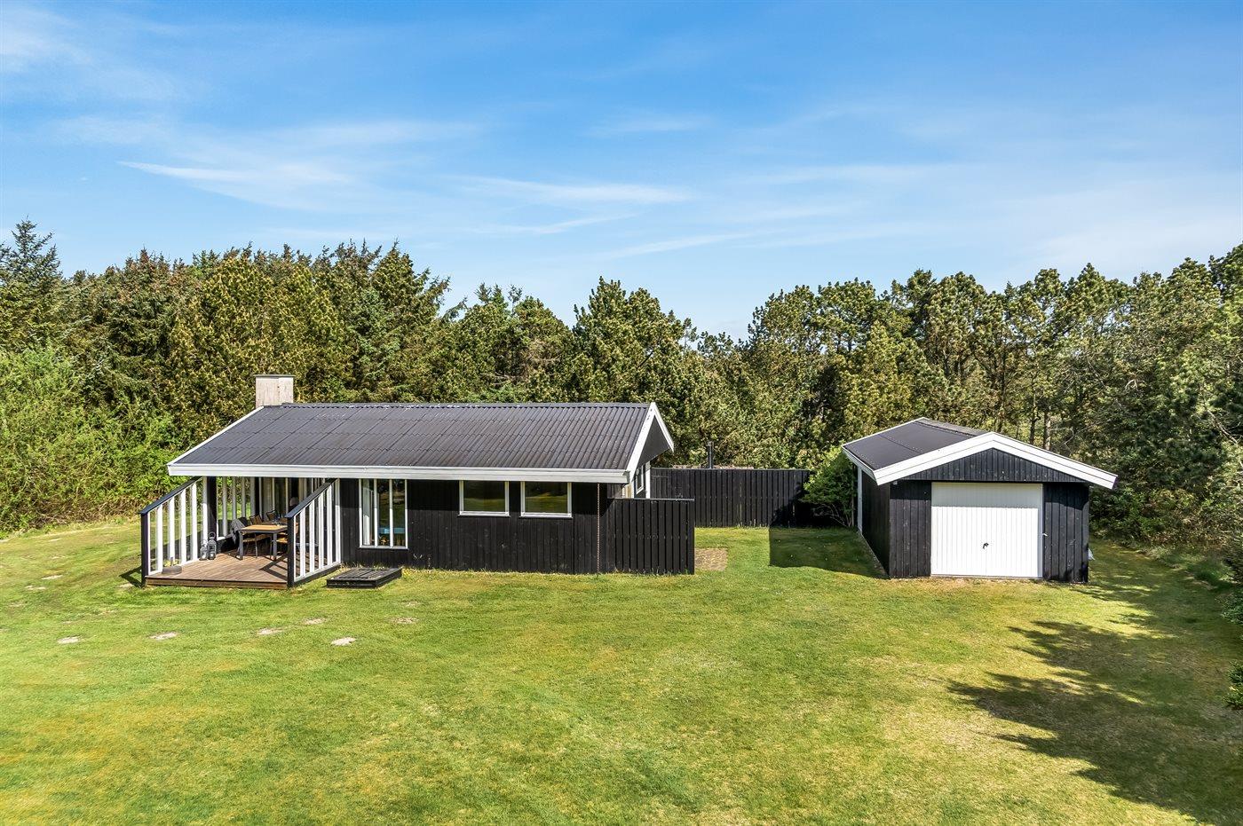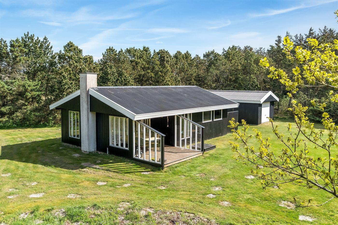 Ein gutes, solides Ferienhaus, das 1973 erbaut wurde und seitdem seinen Charme bewahrt hat. Auf dem Grundstück gibt es viele gemütliche Ecken, die nicht nur Schutz vor dem Westwind bieten, sondern auch die Möglichkeit, eine Dusche unter der Außendusche zu nehmen. Hier könnt ihr mit der Familie euren Ferienhausurlaub genießen.