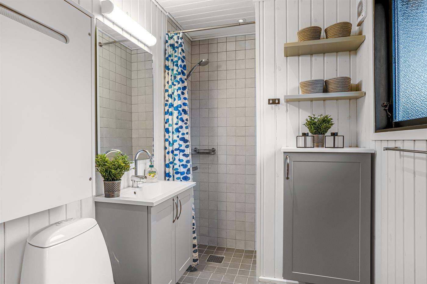 Es gibt 1 Badezimmer mit Dusche und 1 Toilette.