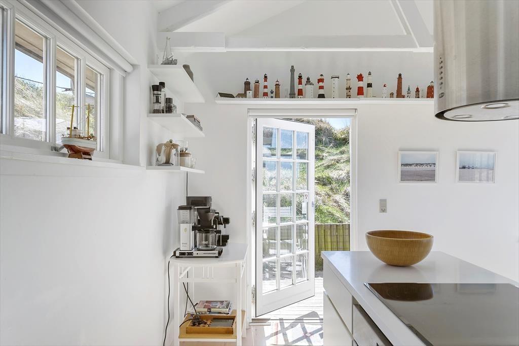 Vom Wohnzimmer tretet ihr hinaus auf die neue, große Holzterrasse mit Essplatz, Sonnenliegen und Hot Tub – eines der absoluten Highlights des Hauses. Hier vereinen sich Sonne, Meeresluft und der großartige Blick über die Dünen zu einer ganz besonderen Urlaubsstimmung. Wenn der Tag sich dem Ende neigt, könnt ihr den Sonnenuntergang direkt von der Terrasse oder dem Hot Tub aus erleben, während der windgeschützte Sonnenhof nach Süden und Osten morgens und mittags Sonne sowie Ruhe für ein gemütliches Mittagessen in der Wärme bietet. Hinweis: Die Terrasse wurde im Herbst 2025 angelegt – neue Fotos folgen im Frühjahr 2026. Vor dem Haus erstreckt sich eine geschützte Dünenlandschaft bis hinunter zum Strand, und oft kommen Rehe vorbei. Die Lage ist ruhig, ungestört und absolut einzigartig – nur 150 Meter von einem der schönsten Strände Dänemarks entfernt.