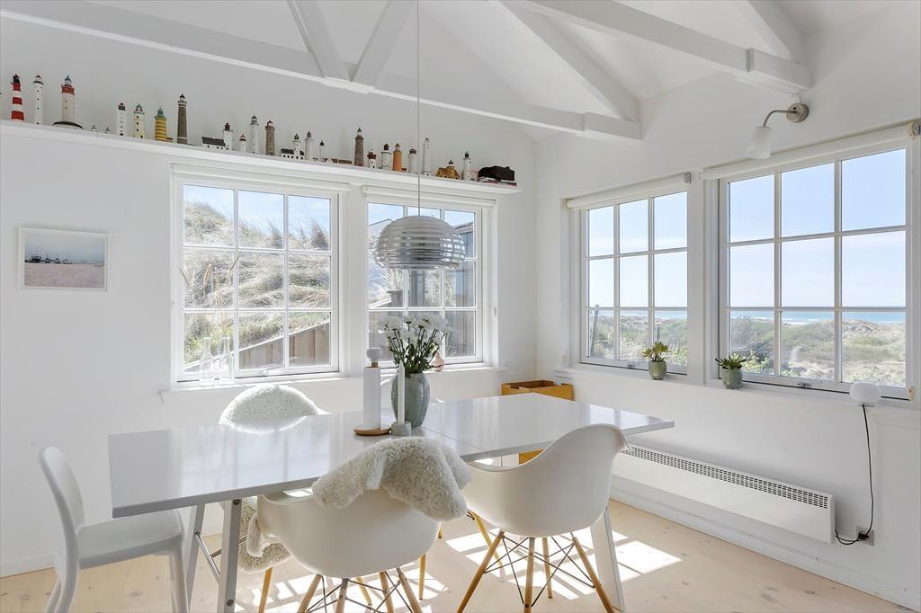 Das Herz des Hauses ist die helle Wohnküche von ca. 30 m², in der ihr kochen könnt, während ihr den Ausblick genießt und die Morgensonne auf den Wellen tanzen seht. Der Raum hat eine offene Dachkonstruktion, Sprossenfenster und eine ruhige Atmosphäre wie in einem Badehotel. Die beiden Hauptschlafzimmer verfügen über neue, hochwertige Betten und bieten direkten Meerblick vom Bett aus. Außerdem gibt es ein gemütliches Etagenzimmer und ein helles Badezimmer mit großer Duschkabine. Im Annex befindet sich ein helles Zimmer mit Meerblick, ein kleines WC und viel Schrankplatz – ideal für Teenager oder Gäste. Das Haus verfügt über vier Schlafzimmer und acht Schlafplätze, kann jedoch nur für sechs Gäste gemietet werden, um den Komfort zu bewahren.