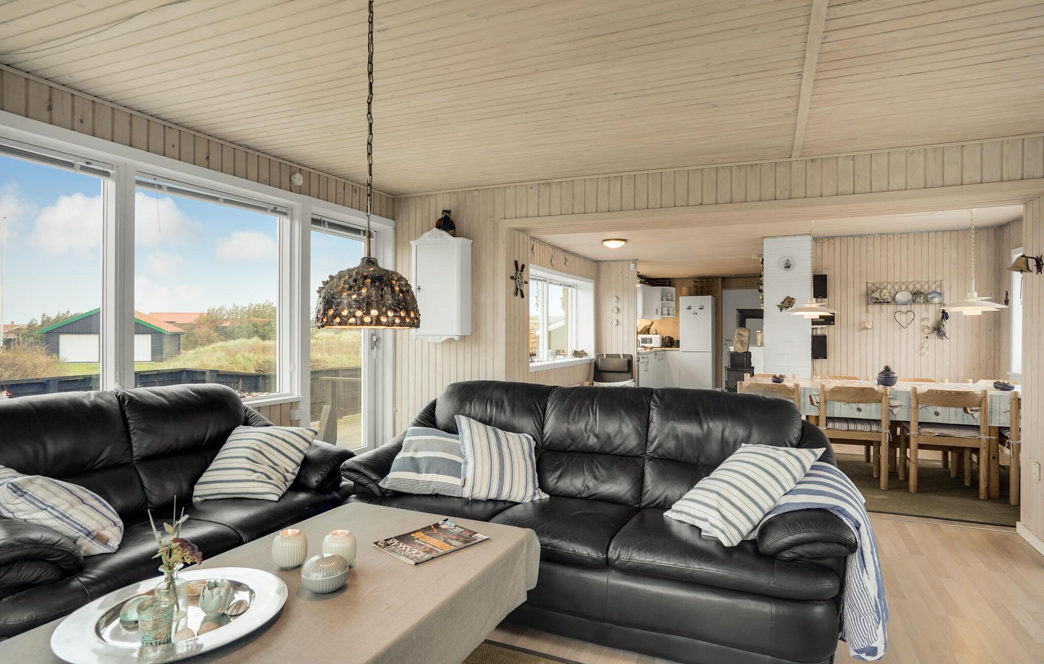 Entspannen Sie sich in Nordjütland in diesem schönen Ferienhaus, das mit allem ausgestattet ist, was Sie für einen erholsamen Urlaub an der dänischen Westküste brauchen. Abends können Sie sich vor dem Holzofen aufwärmen, während sich die Familie um einen guten Film oder eine Serie versammelt. Die offene Raumaufteilung ermöglicht es Ihnen, die Gesellschaft der anderen zu genießen, während die einen auf dem Sofa entspannen und die anderen in der voll ausgestatteten Küche den Spachtel schwingen. Die großen Fenster sorgen für viel natürliches Licht und lassen Sie den Blick auf die Natur draußen genießen. Auf den beiden Terrassen des Hauses können Sie die frische Seeluft genießen, und die Nähe zum Meer bereichert Sie mit dem beruhigenden Rauschen der Wellen. Direkt vor dem Haus haben Sie Ihre eigene private Düne, auf der Sie auf einer Bank sitzen und völlig ungestört den Blick auf das Meer genießen können. In der Nähe befindet sich auch die höchste Düne der Gegend.
