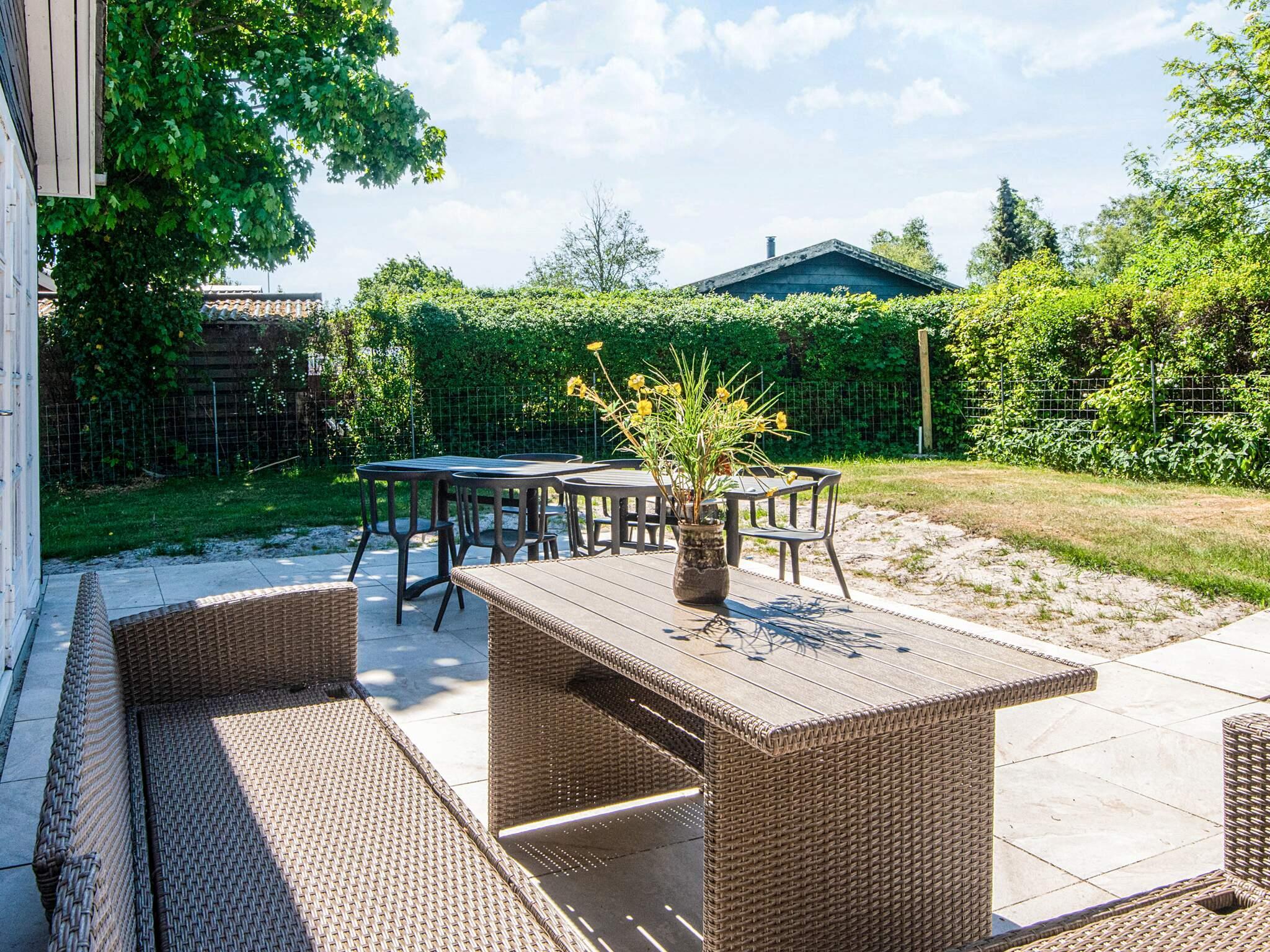 An der Vorderseite des Hauses befindet sich eine gemütliche, überdachte Terrassenfläche mit gutem Windschutz, während Sie auf der anderen Seite die Möglichkeit haben, im Schatten der überdachten Terrasse zu sitzen oder die Sonnenstrahlen unter freiem Himmel zu genießen, während die Kinder im Garten spielen. Ein guter Rahmen für Ihren nächsten Familienurlaub. Es gibt auch eine Ladesteckdose für Elektroautos.