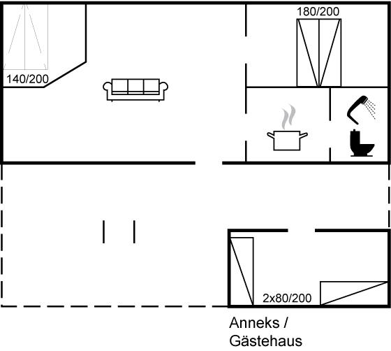 Das Haus ist mit zwei Schlafzimmern eingerichtet – eines davon mit einem Doppelbett, das andere und etwas kleinere mit einer Doppelschlafcouch. Außerdem gibt es ein Gästehaus mit zwei Einzelbetten. Im gemütlichen Wohnzimmer mit Möbeln von hoher Qualität kannst du dich nach einem erlebnisreichen Tag wunderbar entspannen. Eine gut ausgestattete Küche und ein schönes Badezimmer sind ebenfalls vorhanden.