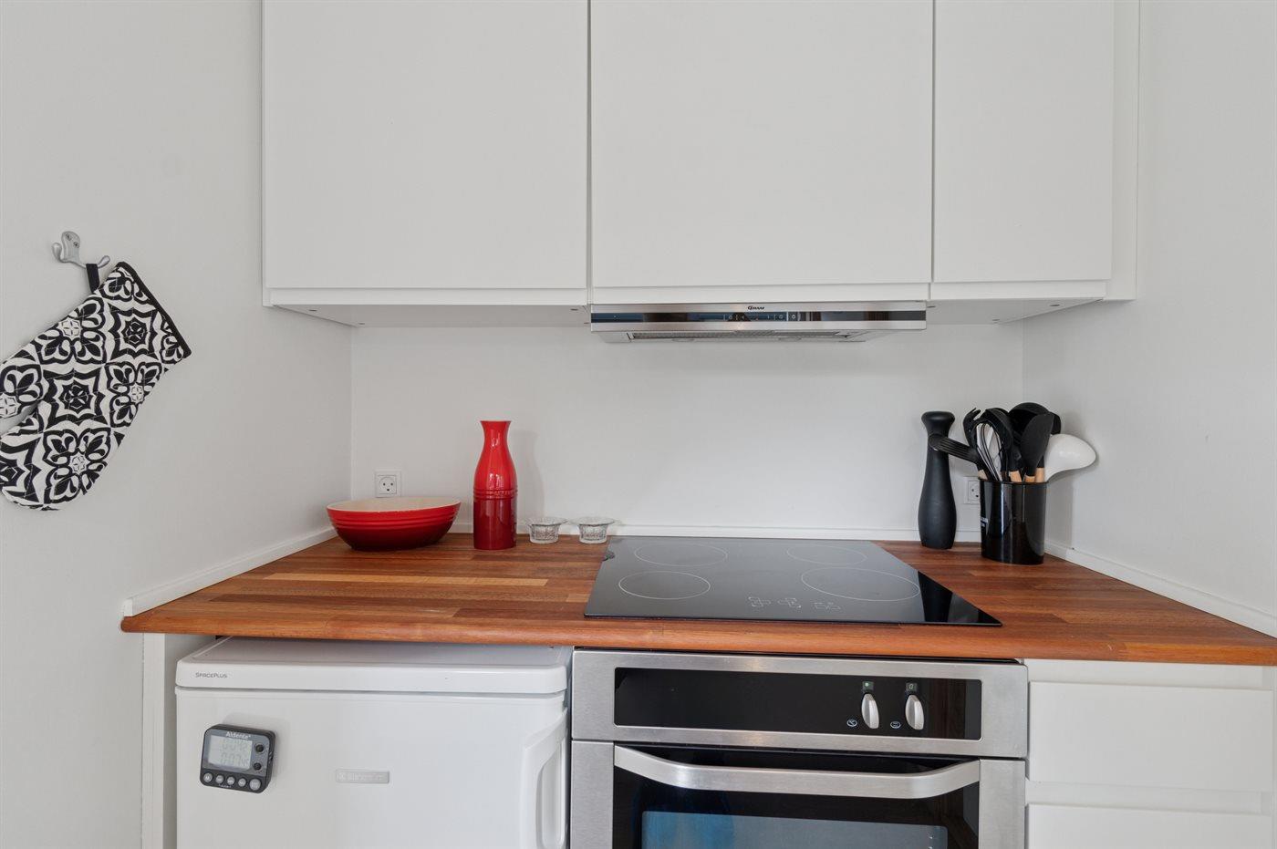 Die Küche ist mit Kühlschrank ausgestattet. Außerdem gibt es 4 Keramik-Kochfelder, Umluftofen sowie Geschirrspüler.