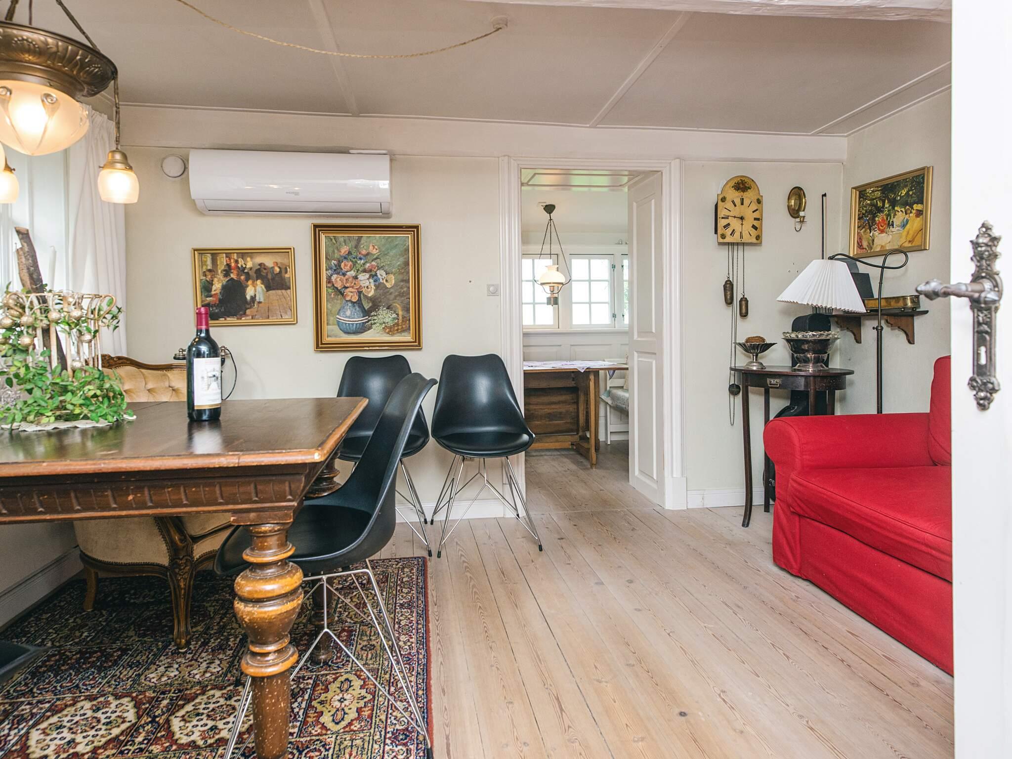 Im Haus gibt es ein kleineres, gemütliches Wohnzimmer mit kleinem TV, auch mit ein paar deutschen Sendern zur Auswahl. Außerdem Küche mit kleiner Essecke am Fenster und separates Esszimmer im Haus. Im Schlafzimmer steht ein 185 cm langes Doppelbett bereit (siehe Foto). Zudem befindet sich im Esszimmer eine große, doppelte Schlafcouch. Das helle Bad ist mit Dusche/WC ausgestattet.