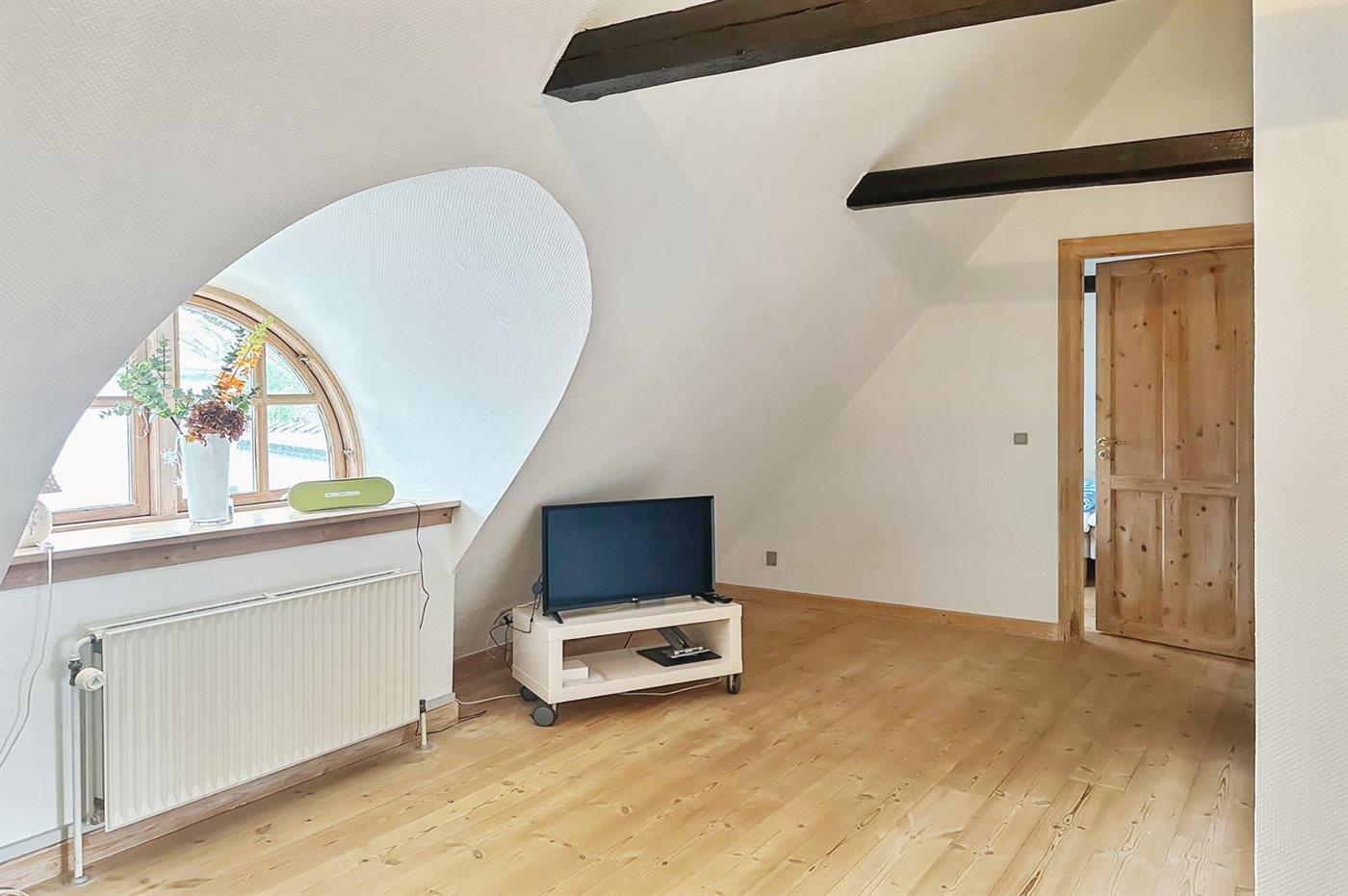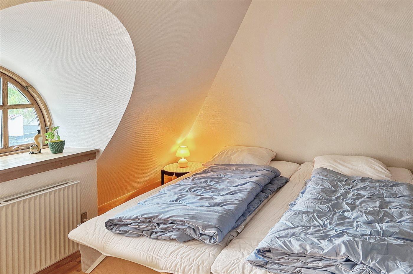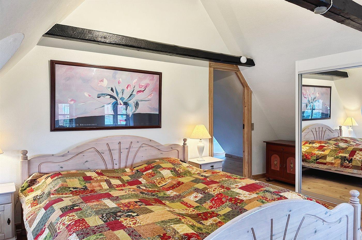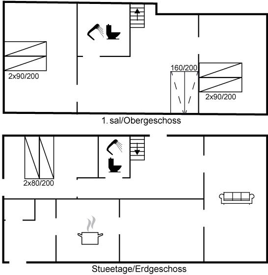 Das Obergeschoss verfügt über einen großen Vorraum mit einer Doppelschlafcouch mit Platz für zwei Personen, zwei Schlafzimmer mit jeweils einem Doppelbett und zwei Einzelbetten sowie dem zweiten Badezimmer des Hauses.