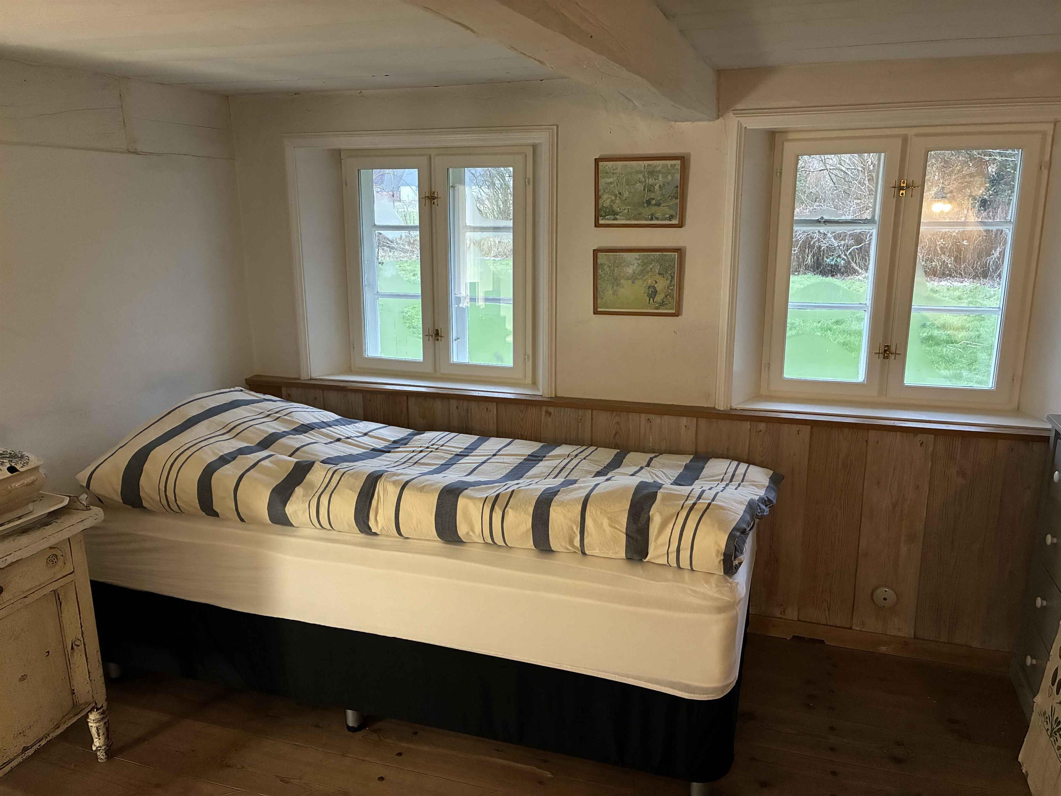 Dieses charmante Ferienhaus aus dem 19. Jahrhundert bietet eine besondere Atmosphäre für Gäste, die Ruhe, Nähe und authentische Umgebung suchen. Das Haus wurde kürzlich isoliert und mit neuen Thermofenstern ausgestattet, hat aber seinen ursprünglichen Charakter mit niedrigen Decken und vielen erhaltenen Details bewahrt. Das Haus verfügt über 2 Schlafzimmer mit insgesamt 4 Schlafplätzen. Es gibt ein kleines, älteres Badezimmer sowie eine Küche älteren Datums, die im Originalstil erhalten wurde. Die Einrichtung ist schlicht und funktional und unterstreicht den historischen Charakter. Das Wohnzimmer ist der natürliche Mittelpunkt des Hauses und verfügt über einen Kaminofen sowie eine Luft-Luft-Wärmepumpe für angenehme Temperaturen das ganze Jahr über. Es gibt ausreichend Platz für Entspannung und ruhige Abende, und Internet ist vorhanden. Draußen erwartet Sie ein schöner und sehr abgeschiedener Garten mit viel Platz rund um das Haus. Der Gartenpavillon bietet Schutz für Mahlzeiten und lange Abende im Freien. Der Garten lädt zu Ruhe und ungestörter Urlaubszeit ein. Die Umgebung ist geprägt von offenen Landschaften, weitem Horizont und großer Ruhe. Das Meer liegt 4 km entfernt und lädt zu Spaziergängen und Naturerlebnissen entlang der Küste ein. Einkaufsmöglichkeiten befinden sich in etwa 3 km Entfernung, während nahegelegene Orte Cafés und Ausflugsmöglichkeiten bieten. Die Nähe zu Deutschland und die etwa 30 km entfernte Insel Rømø mit ihren breiten Stränden machen die Lage besonders attraktiv. Dieses Ferienhaus eignet sich ideal für Gäste, die einen ruhigen Urlaub mit Natur, Geschichte und viel Platz suchen. Haustiere sind nicht erlaubt.