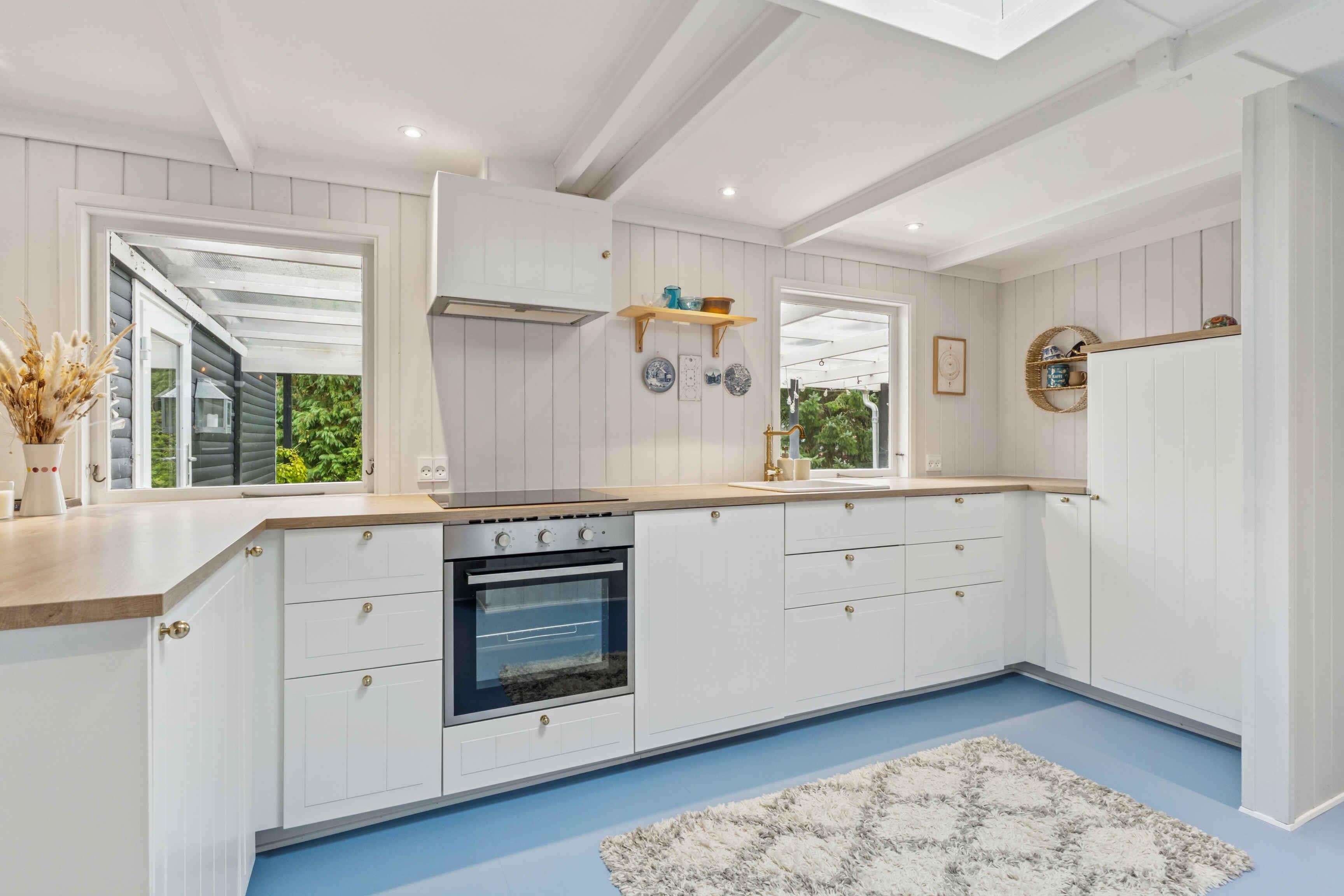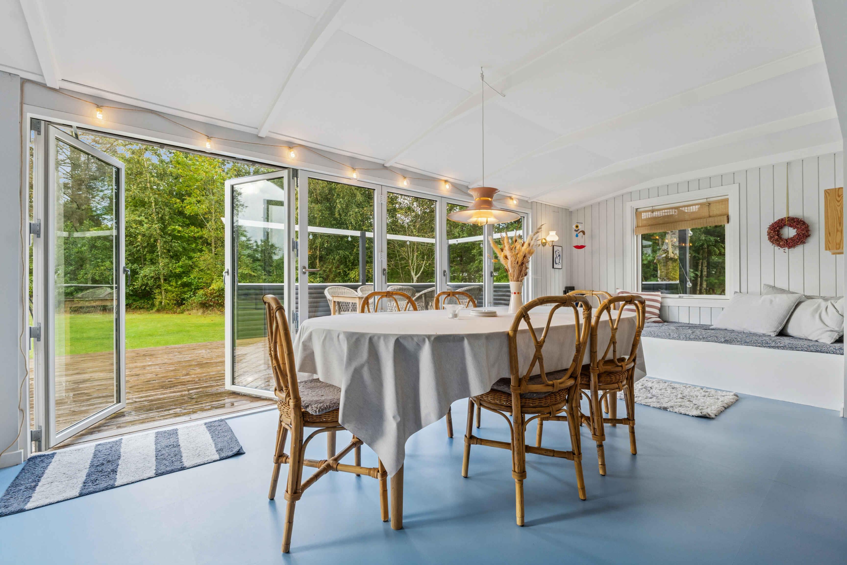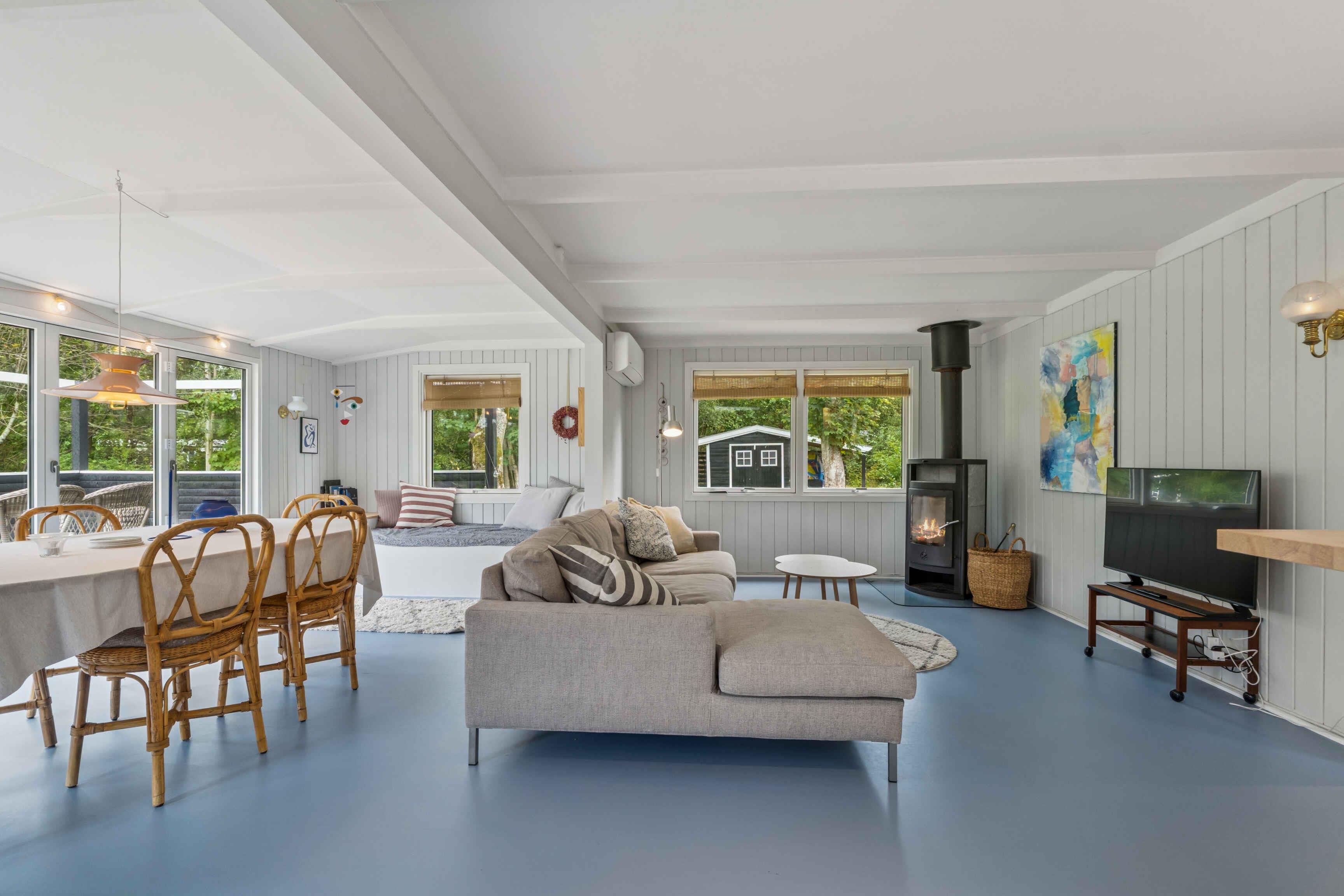 Das moderne, frisch renovierte Ferienhaus bietet 114 m² Wohnfläche mit Platz für 6 Personen in drei Schlafzimmern. Das helle, offene Wohnzimmer bildet das Herzstück des Hauses, wo große Fenster Garten und Natur ins Innere holen. Nur 100 Meter entfernt liegt das Wasser, das schnell zum Mittelpunkt des Urlaubs wird. Hier können Sie baden, angeln oder einfach den Ausblick genießen. Die kurze Entfernung macht es leicht, dass alle Generationen gemeinsam Aktivitäten am Wasser erleben. Draußen lädt ein großer Garten zum Spielen, Entspannen oder zu gemeinsamen Mahlzeiten ein. Auf der großzügigen Holzterrasse können Sie die Sonne genießen, im Freien essen oder gesellige Abende unter freiem Himmel verbringen. Die Umgebung bietet zahlreiche Möglichkeiten. Der Fjord ist bekannt für ruhiges Wasser, ideale Bedingungen zum Segeln und unmittelbare Naturerlebnisse. Malerische Wanderwege verlaufen entlang der Küste, und Fahrradrouten führen durch kleine Dörfer und offene Felder. Auch kulturell hat die Region mit Museen und Sehenswürdigkeiten viel zu bieten. Familien freuen sich über Spielplätze und kinderfreundliche Strände, während Naturliebhaber Vögel beobachten und beeindruckende Sonnenuntergänge über dem Wasser erleben können. Ein Ferienhaus, das modernen Komfort mit Natur und Aktivitäten verbindet – der ideale Rahmen für einen Urlaub voller Erholung und Erlebnisse.