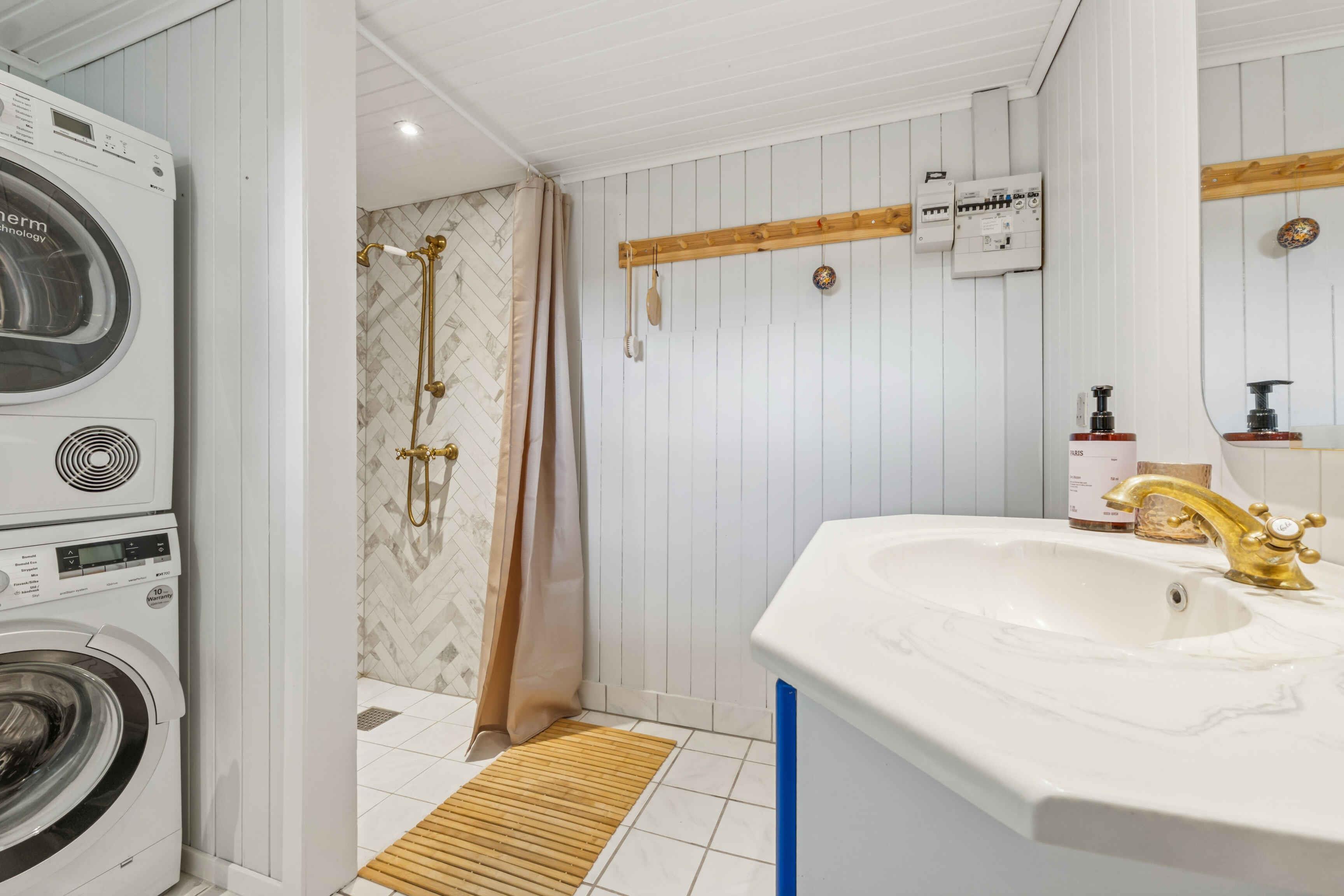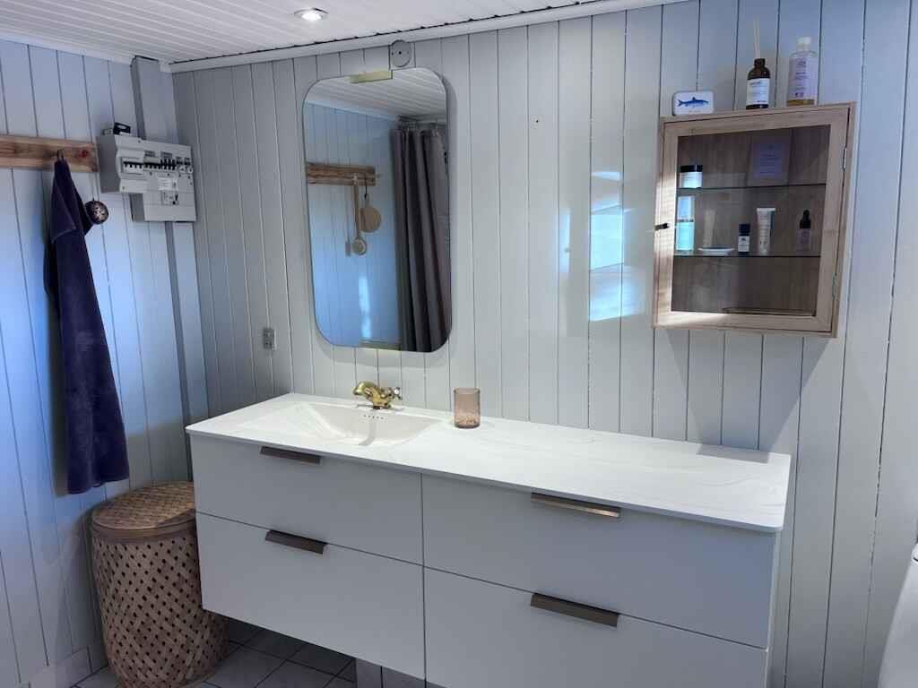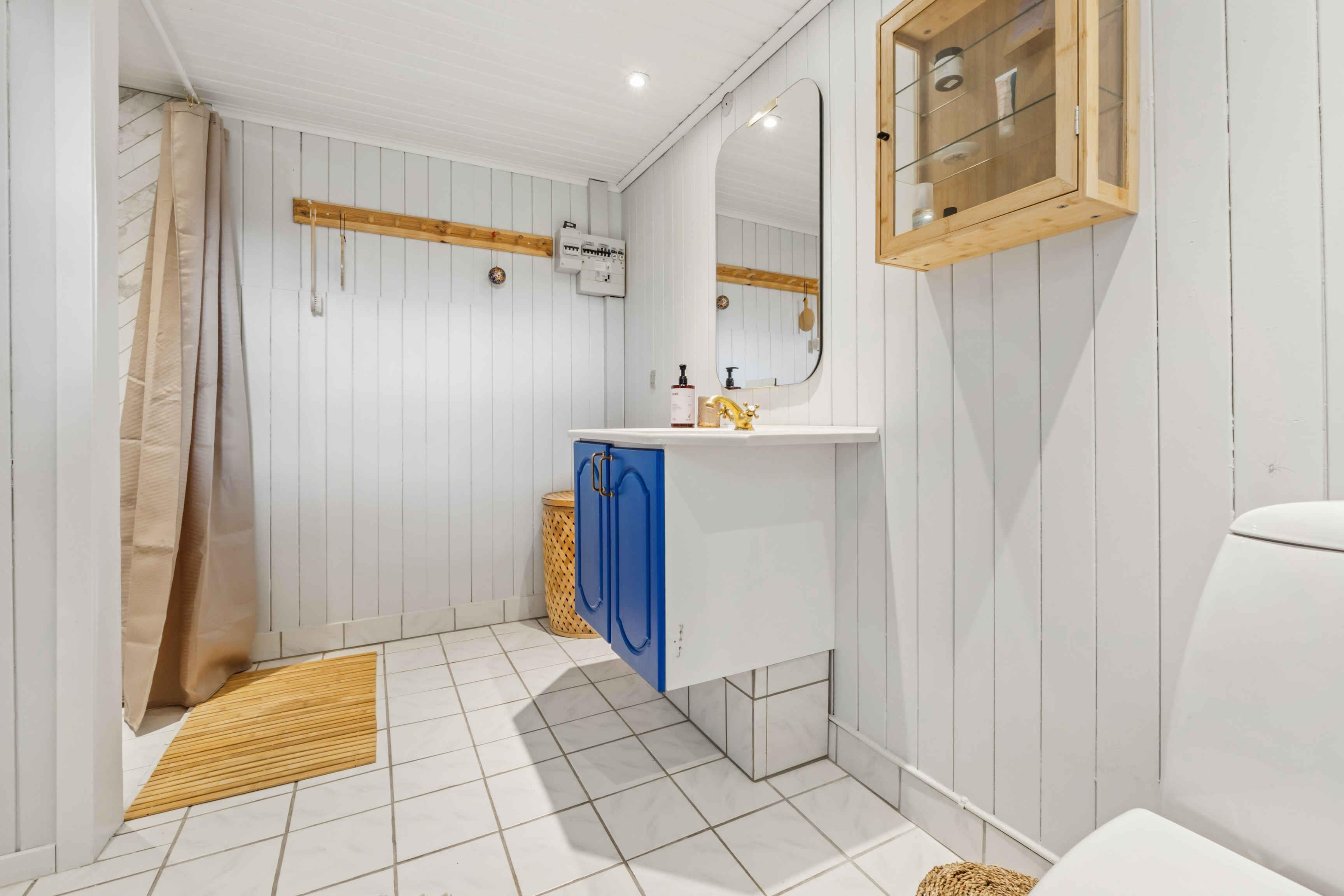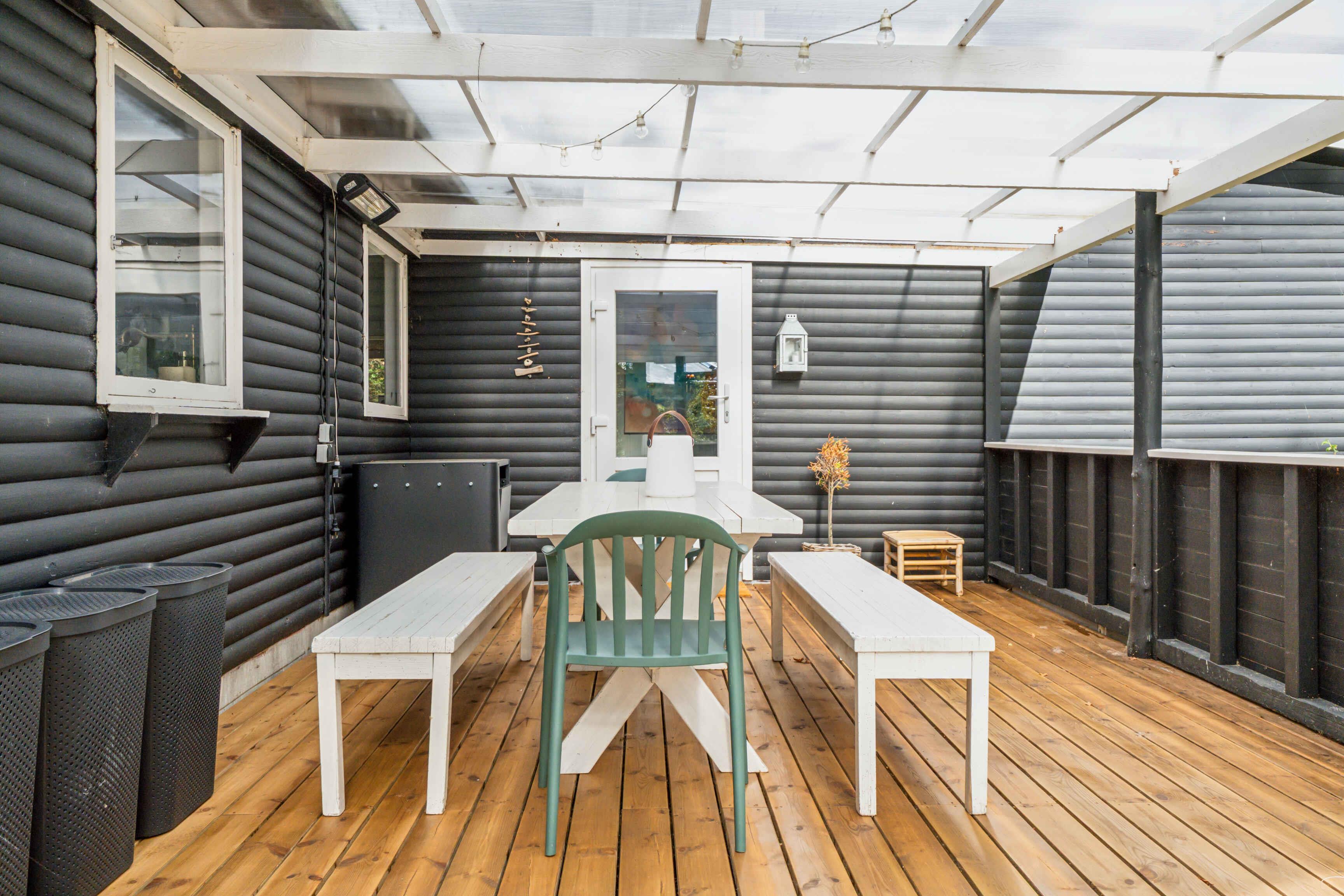 Das moderne, frisch renovierte Ferienhaus bietet 114 m² Wohnfläche mit Platz für 6 Personen in drei Schlafzimmern. Das helle, offene Wohnzimmer bildet das Herzstück des Hauses, wo große Fenster Garten und Natur ins Innere holen. Nur 100 Meter entfernt liegt das Wasser, das schnell zum Mittelpunkt des Urlaubs wird. Hier können Sie baden, angeln oder einfach den Ausblick genießen. Die kurze Entfernung macht es leicht, dass alle Generationen gemeinsam Aktivitäten am Wasser erleben. Draußen lädt ein großer Garten zum Spielen, Entspannen oder zu gemeinsamen Mahlzeiten ein. Auf der großzügigen Holzterrasse können Sie die Sonne genießen, im Freien essen oder gesellige Abende unter freiem Himmel verbringen. Die Umgebung bietet zahlreiche Möglichkeiten. Der Fjord ist bekannt für ruhiges Wasser, ideale Bedingungen zum Segeln und unmittelbare Naturerlebnisse. Malerische Wanderwege verlaufen entlang der Küste, und Fahrradrouten führen durch kleine Dörfer und offene Felder. Auch kulturell hat die Region mit Museen und Sehenswürdigkeiten viel zu bieten. Familien freuen sich über Spielplätze und kinderfreundliche Strände, während Naturliebhaber Vögel beobachten und beeindruckende Sonnenuntergänge über dem Wasser erleben können. Ein Ferienhaus, das modernen Komfort mit Natur und Aktivitäten verbindet – der ideale Rahmen für einen Urlaub voller Erholung und Erlebnisse.