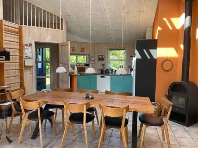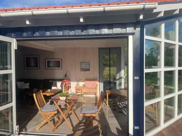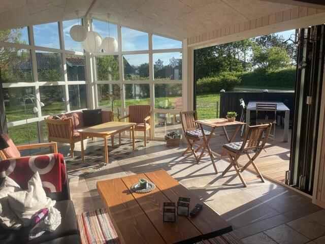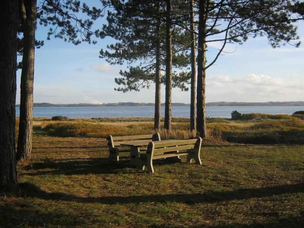 Supergut eingerichtetes und geräumiges Ferienhaus mit Whirlpool und nahe am Wasser mit großem Garten, viel Rasen und Spielmöglichkeiten. Internet. Für bis zu 8 Personen. Recht neues, modernes und angenehmes Ferienhaus nahe am Wasser des Limfjordes. Ein ideales Haus mit vielen Möglichkeiten für einen superguten Urlaub. Um es sich gemütlich zu machen und sich zu entspannen, gibt es auch einen Whirlpool mit Platz für 2 Personen. Die Fenster der Küche und Wohnstube sind, u.a. mit Oberlicht, so gestaltet, dass Winter wie Sommer ein angenehmes Licht einfällt, und für kühle Tage gibt es einen Holzofen, der für Wärme und ein gutes Klima sorgt. Die Küche ist gut eingerichtet, so dass es Spaß macht hier Essen zu zubereiten. Wenn Sie Lust haben zu grillen, gibt es dazu reichlich Möglichkeiten auf einer der zwei Terrassen oder an dem dazu eingerichteten Feuerplatz mit Sitzmöglichkeiten in der Runde. Im Jahr 2017 wurde ein Shelter gebaut - es wird sicherlich Freude für Jung und Alt bringen. Da Haus liegt auf einer Landzunge, was bedeutet, dass es zu zwei Seiten hin von Wasser umgeben ist. Bis zum Strand im Westen sind es nur 100 m, und bis zum Strand im Osten 400 m. Das Gebiet des Limfjordes bietet einzigartige Naturerlebnisse in einer leicht hügeligen Landschaft mit Plantagen, Feldern und vielen Aussichtspunkten über den Fjord.