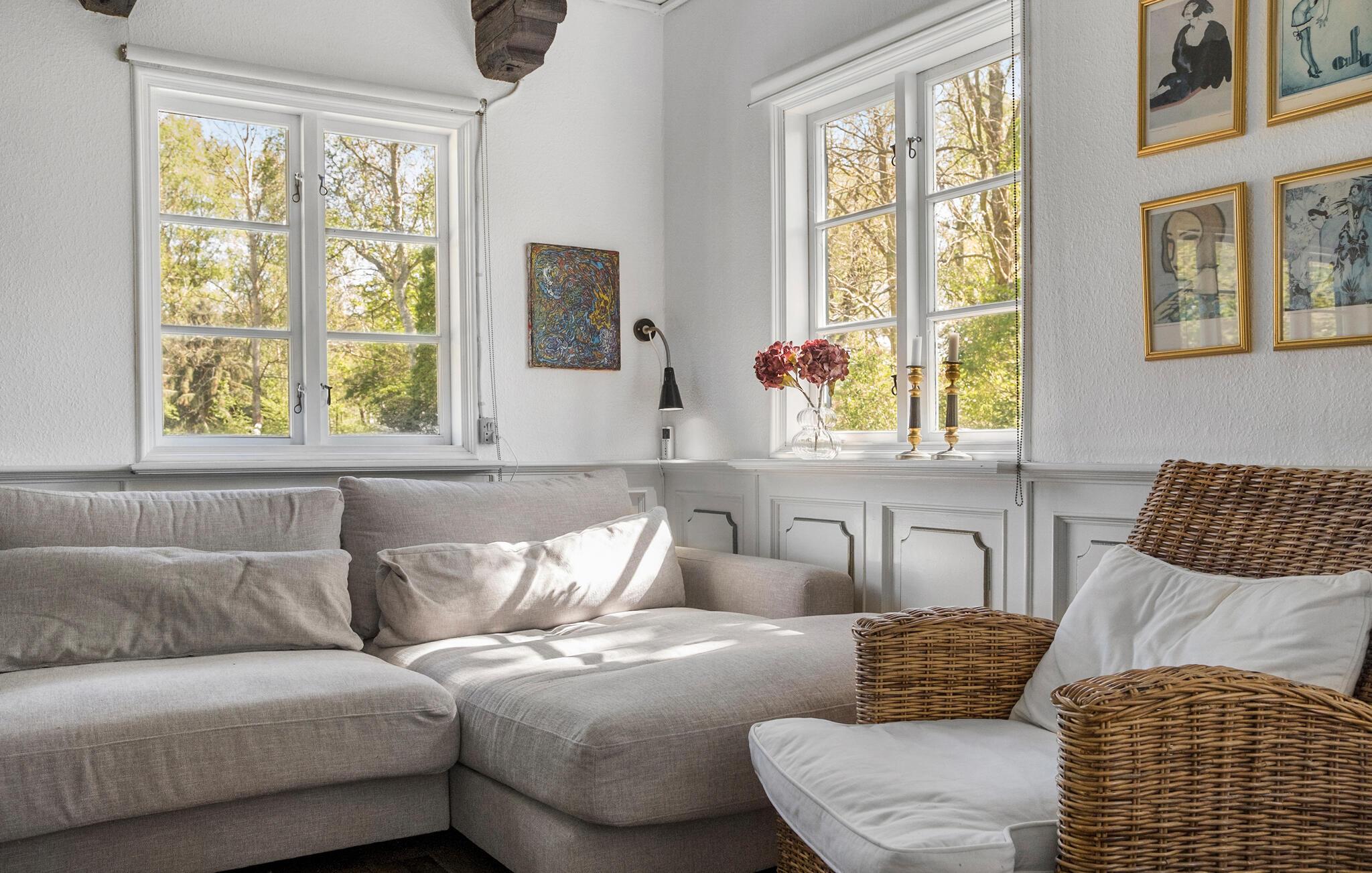 Reisen Sie an und treten Sie in dieses gemütliche Fachwerkhaus ein. Der Zauber und Reiz des Hauses zeichnen sich nicht nur durch die Bauweise, Einrichtung und Verzierungen aus, sondern auch durch die Geschichte. Denn ursprünglich wurde das Haus in den 1800er Jahren gebaut, aber 1966 an diesem neuen Standort in Ellinge Lyng verlegt. Das Haus wurde Stein für Stein wiederaufgebaut, was in einer dänischen Immobilienfernsehsendung wurde das Reetdachhaus berichtete wurde. Genießen Sie die beiden Etagen, die über gemütliche Schlafzimmer verfügen und mit einem offenen Kamin sowie Holzofen an kühleren Tagen für Wärme im ganzen Haus sorgen. Entspannen Sie auf dem Sofa, kochen in der Küche und speisen am Esstisch mit blick in den Garten.