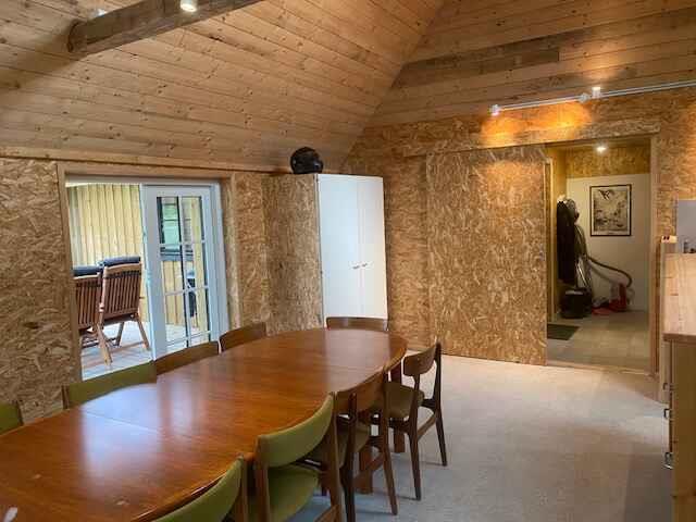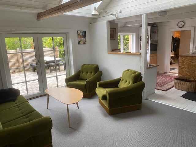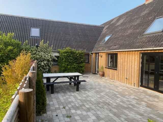 Wunderschön gelegenes ehemaliges Landgut zur Miete als Ferienhaus. Das Anwesen befindet sich auf einem circa 90.000?m² großen, naturschönen Gelände mit Feldern und Wald. Der Strand ist ebenfalls fußläufig erreichbar (ca.?12?Min.). Stellen Sie sich vor, Sie wachen mit Vogelgezwitscher auf und blicken über das weitläufige private Naturgrundstück – ein grünes Abenteuerland, in dem Kinder frei zwischen Bäumen laufen, im Wald Verstecken spielen und unter dem Blätterdach Hütten bauen können. Erwachsene können die Ruhe und den Ausblick über die sanfte Hügellandschaft genießen. Die ganze Familie kann auf Entdeckungstour gehen – kleinen Pfaden durch wildes Gras folgen, Tierspuren entdecken, in der Dämmerung den Eulen lauschen oder unter den Sternen ein Lagerfeuer entzünden. Es gibt Raum für Spiel, Vertiefung und Zusammensein. Und das Beste? All das findet direkt vor der Tür statt – in eurer eigenen Natur-Oase. Das Anwesen verfügt über 5 Schlafzimmer, darunter eines mit Etagenbett. Außerdem gibt es einen großzügigen Flur, eine große Wohnküche, 2 Bäder (eines davon nur mit Außendusche), eine ältere Küche sowie ein gemütliches Wohnzimmer. Eine nach Norden ausgerichtete Terrasse lädt besonders morgens und abends im gesamten Sommer ein. Zusätzlich gibt es eine überdachte Westterrasse, auf der man grillen und selbst kühle Sommerabende genießen kann. Ebenfalls vorhanden ist eine gemütliche, eingezäunte Hofterrasse nach Süd-Südwest. Das Haus ist ideal für eine große Familie oder zwei Familien. Beachten Sie, dass sich beispielsweise zwei Geschirrspüler in der Wohnküche befinden. Für Kinder gibt es viele Aktivitäten, darunter ein Fußballfeld, Trampolin, Gartenspiele und eine Rutsche im Freien. Wenn das Wetter einmal nicht mitspielt, bietet die Unterkunft Brettspiele, Dart, einen Tischtennistisch oder man geht in die Scheune, wo eine Werkbank, Werkzeuge und Materialien bereitstehen, um einen Drachen, ein Vogelhaus oder ein Insektenhotel zu basteln. Es ist zu beachten, dass der Hof nach dem Prinzip „wild mit Absicht“ gepflegt wird. Es gibt viele Vögel und Insekten, und die Natur (also das Unkraut) wächst frei – außer auf dem Fußballfeld und den Terrassenflächen. Aus diesem Grund sind Katzen leider nicht willkommen. Hunde sind willkommen, solange sie das Haus und Inventar nicht beschädigen. In der Umgebung gibt es viele schöne Erlebnisse, besonders für Kinder und Naturliebhaber. Zum Beispiel Lille Vildmose und die gemütliche Urlaubsstimmung in Øster Hurup, wo man am Hafen unter anderem Kescher ausleihen kann.