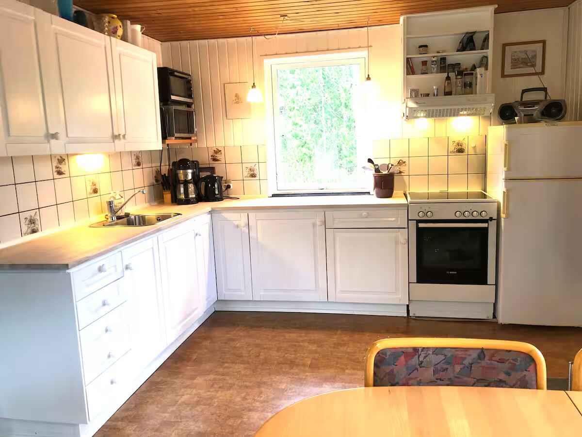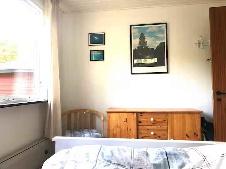 Genießen Sie Natur und Ruhe in diesem gemütlichen und charmanten Ferienhaus, 800 m vom Kattegat entfernt. Das Haus liegt auf einem großen Naturgrundstück mit vielen Bäumen und Vögeln. Vor dem Haus befindet sich eine große Rasenfläche für Spiele und Aktivitäten. Auf der überdachten Terrasse mit Waldblick können Sie Ihren Morgenkaffee, das Mittagessen oder ein kühles Getränk genießen. Es gibt einen Holzofen sowie eine offene Küche mit Wohnbereich. Vier Fahrräder stehen im Schuppen zur Verfügung. Zwei Spielplätze befinden sich in der Nähe, und Øster Hurup ist nur 15 Minuten mit dem Auto entfernt. Dies ist unser privates Haus, bitte gehen Sie sorgsam damit um. Allergikerfreundlich, rauchfrei und keine Haustiere erlaubt. Die Unterkunft Es gibt fünf Schlafplätze sowie ein Sofa im Wohnzimmer. Direkt an die Terrasse angeschlossen befindet sich ein Hauswirtschaftsraum mit zwei zusätzlichen Etagenbetten. Dort finden Sie auch Reparatursets, eine Pumpe und Inbusschlüssel für die Fahrräder sowie einen Staubsauger und Reinigungsutensilien. Küche, Essbereich und Wohnzimmer mit Fernseher sind in einem Raum kombiniert und bieten eine gute Grundlage für gemeinsames Beisammensein. Es gibt KEIN Kinderbett, keinen Wickelplatz und keine Sicherung am Holzofen. Daher ist das Haus nur für Familien mit etwas älteren Kindern geeignet. Für die Nutzung des Holzofens kontaktieren Sie mich bitte. Achtung: Wird nicht für gewerbliche Nutzung vermietet.