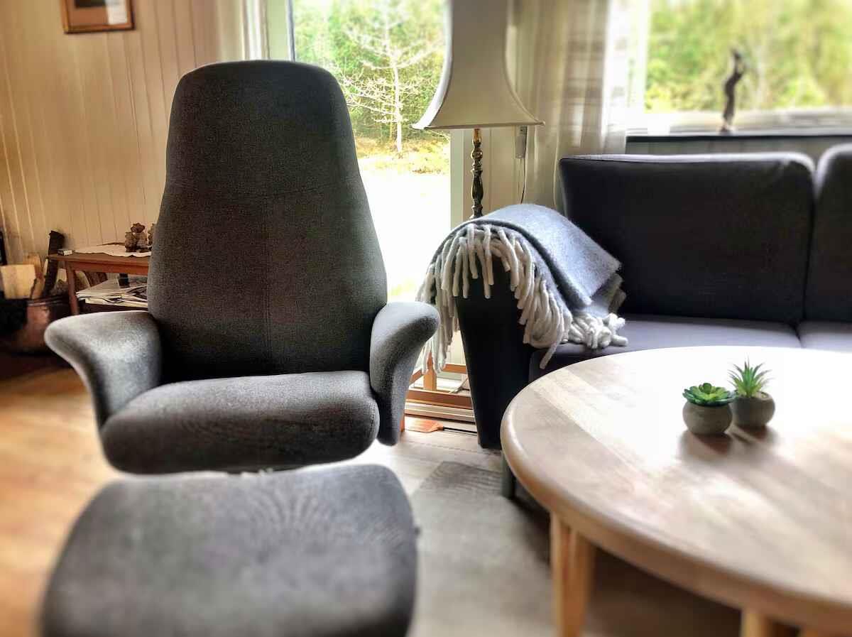 Gemütliches Ferienhaus nahe Kattegat mit Terrasse, Holzofen und Fahrrädern auf großem Naturgrundstück.