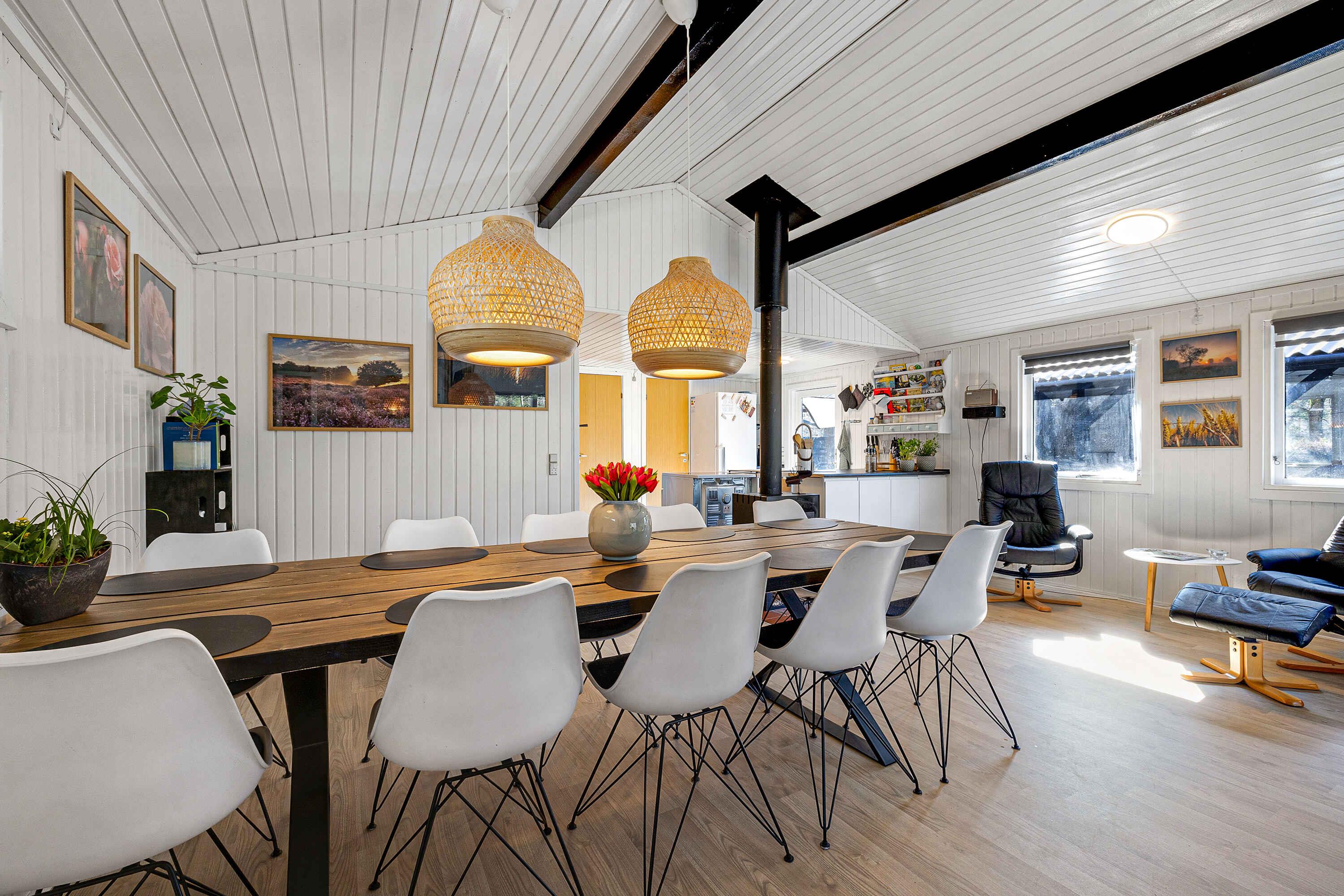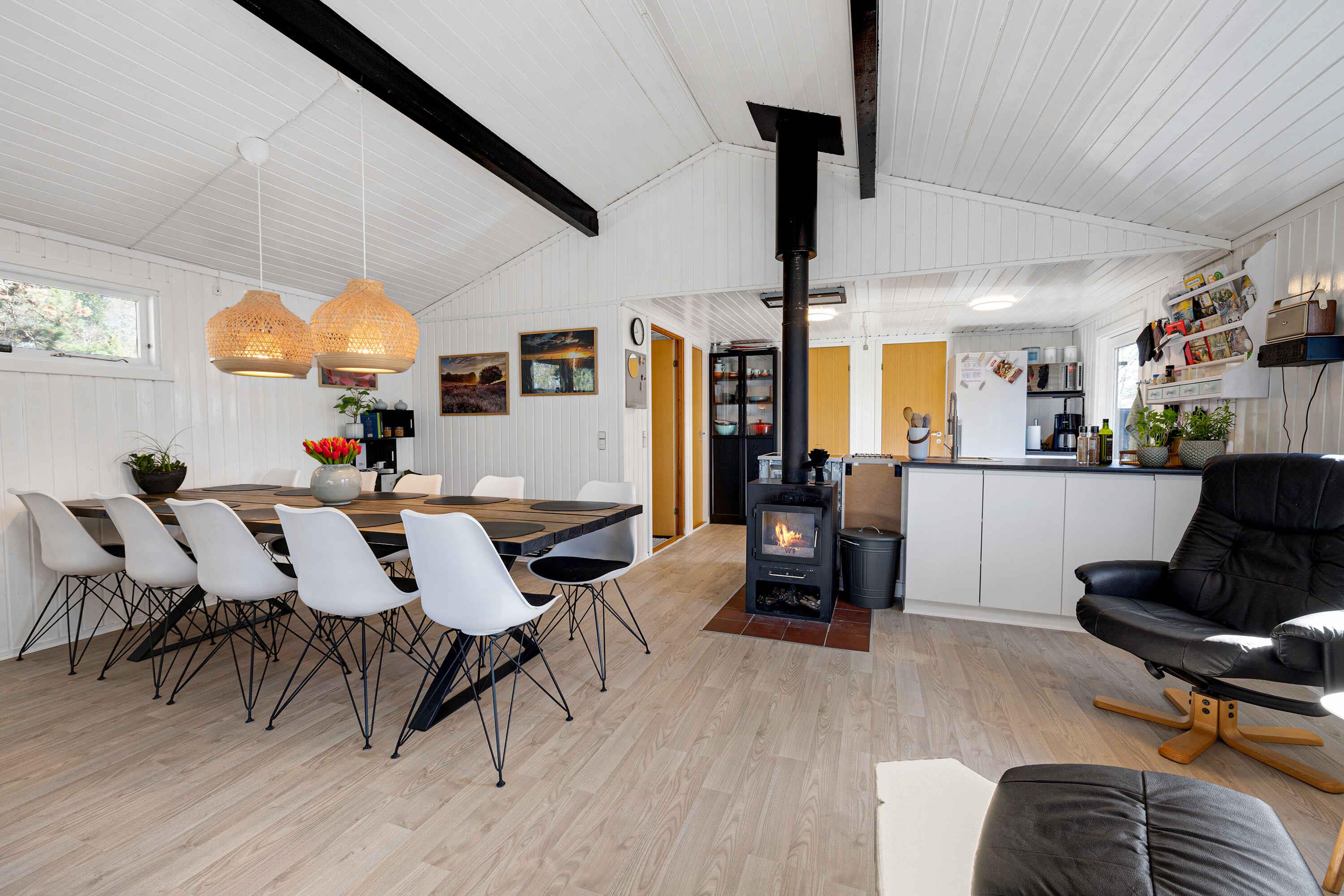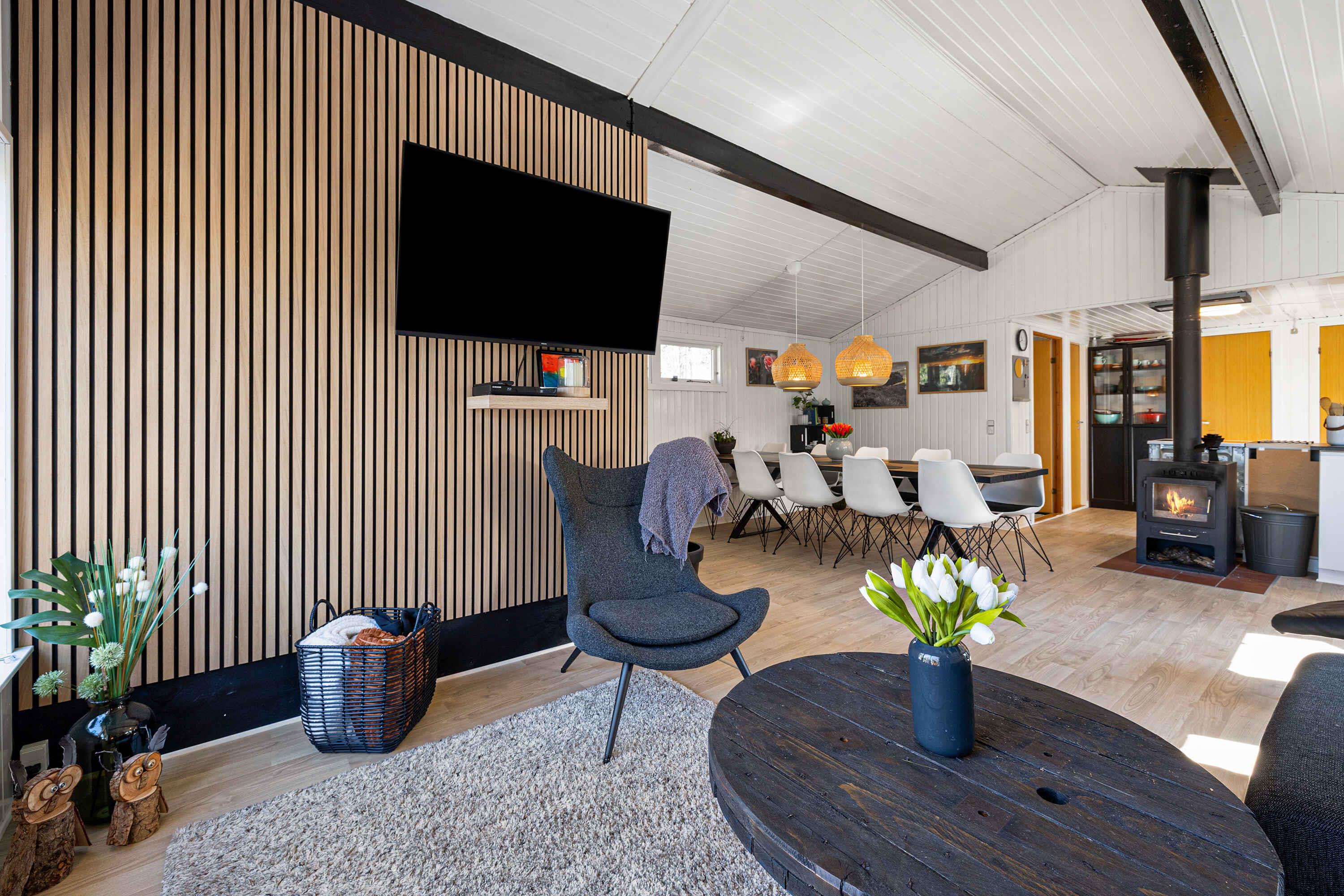 In einer ruhigen Sackgasse gelegen, finden Sie dieses einladende Ferienhaus, umgeben von einem privaten Naturgrundstück. Hier herrschen Frieden, Ruhe und eine reiche Tierwelt. Das Haus präsentiert sich hell mit weiß gestrichenen Holzwänden. Große Fensterfronten im Wohnzimmer laden die Natur ein. Eine voll ausgestattete Küche öffnet sich zu einer Terrasse und einer überdachten Terrasse, beide mit Essbereichen. Grillabende? Kein Problem, ein großer Grill steht bereit. Innen garantieren 3 Schlafzimmer mit 8 Qualitätsbetten erholsamen Schlaf. Die Schlafzimmer, das Nebengebäude und das Wohnzimmer sind mit Flachbildfernsehern ausgestattet, alle mit Chromecast. Der Garten bietet Aktivitäten für jeden. Vom Trampolin bis zum Corn-Hole-Spiel. Wenn Sie Essen über einem Feuer mögen, dann ist die Feuerstelle bereit! Nicht weit entfernt von der Sandbank "Hawaii" des Kattegat mit herrlichem Badewasser. Øster Hurup, nur 6 km entfernt, bietet einen kinderfreundlichen Strand und ein Hallenbad. Erleben Sie Rehe, Fasane und Eichhörnchen früh am Morgen. Angler haben auch mehrere Optionen in der Nähe. Geschäfte, charmante Stadtmilieus, Sommermusik und eine Auswahl an Restaurants erwarten Sie im nahegelegenen Øster Hurup. Eine idyllische Lage, perfekt für einen entspannenden Urlaub.