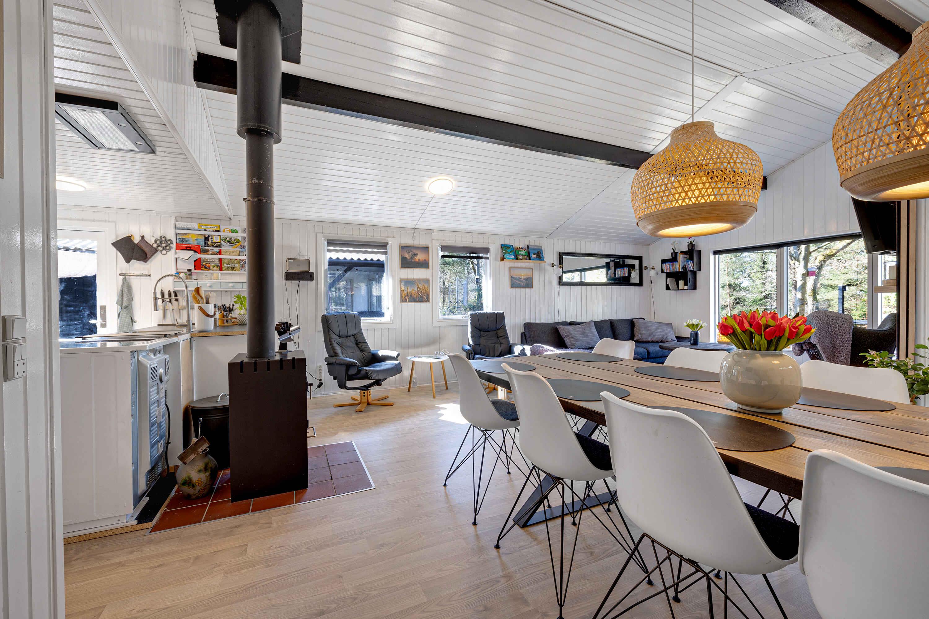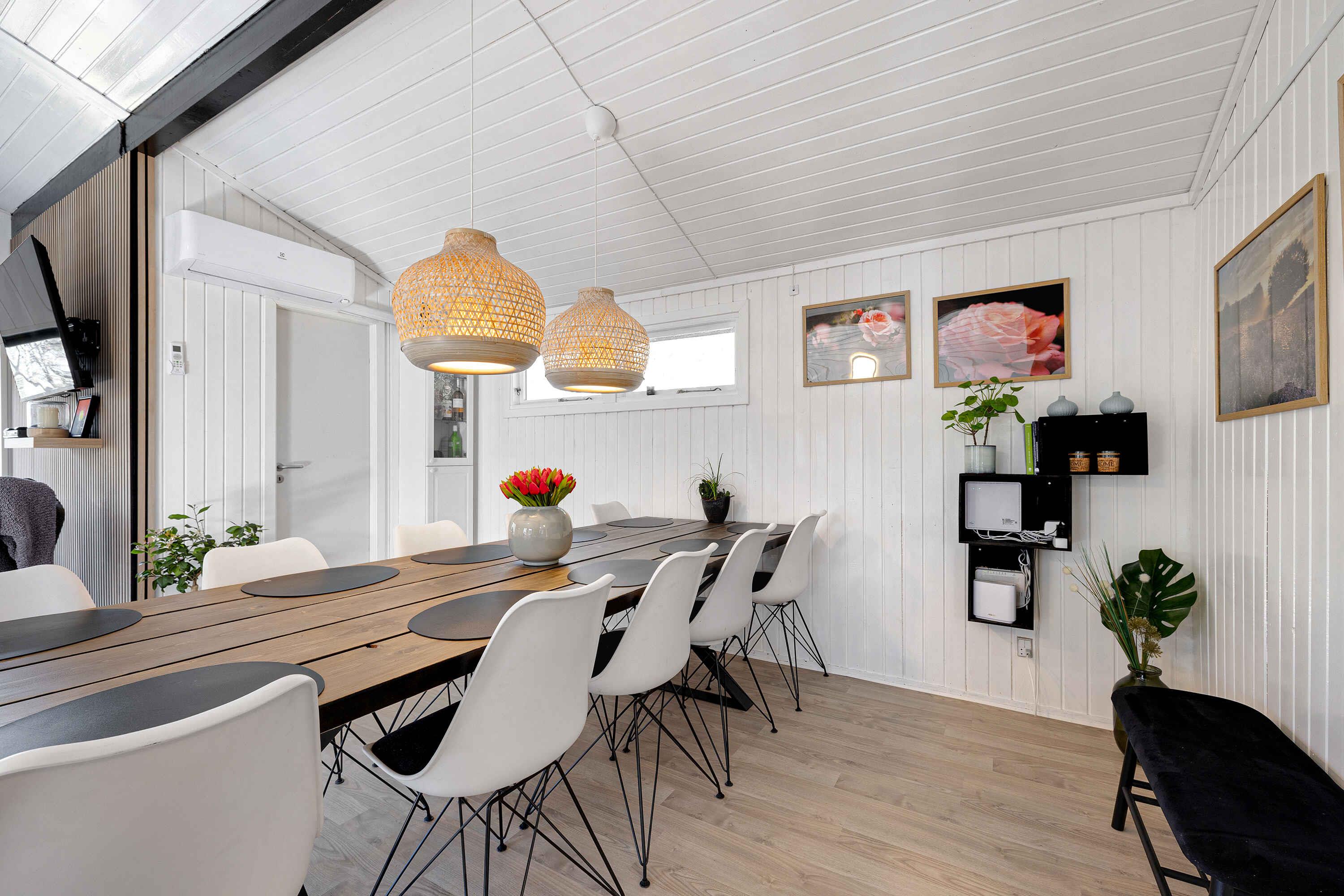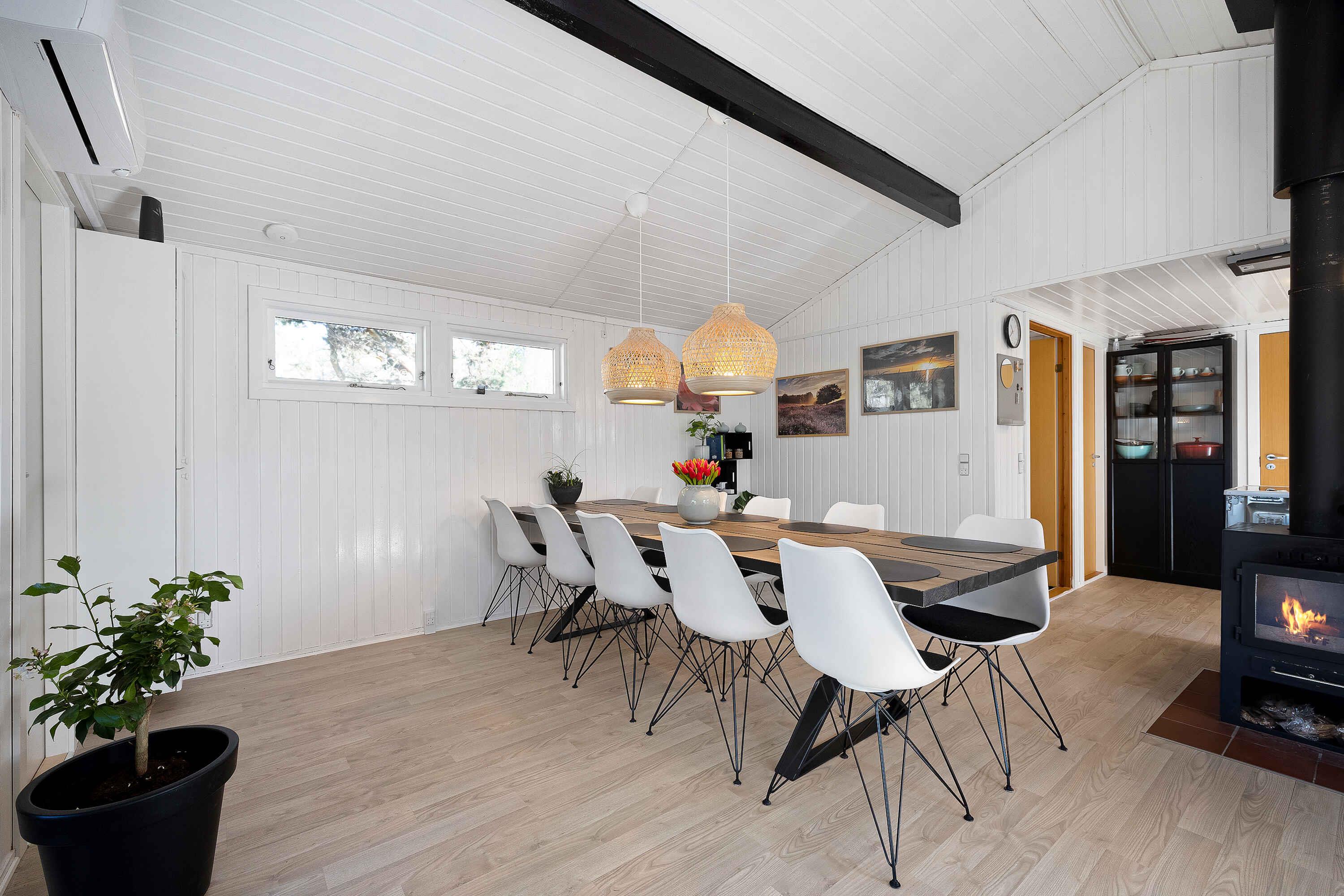 In einer ruhigen Sackgasse gelegen, finden Sie dieses einladende Ferienhaus, umgeben von einem privaten Naturgrundstück. Hier herrschen Frieden, Ruhe und eine reiche Tierwelt. Das Haus präsentiert sich hell mit weiß gestrichenen Holzwänden. Große Fensterfronten im Wohnzimmer laden die Natur ein. Eine voll ausgestattete Küche öffnet sich zu einer Terrasse und einer überdachten Terrasse, beide mit Essbereichen. Grillabende? Kein Problem, ein großer Grill steht bereit. Innen garantieren 3 Schlafzimmer mit 8 Qualitätsbetten erholsamen Schlaf. Die Schlafzimmer, das Nebengebäude und das Wohnzimmer sind mit Flachbildfernsehern ausgestattet, alle mit Chromecast. Der Garten bietet Aktivitäten für jeden. Vom Trampolin bis zum Corn-Hole-Spiel. Wenn Sie Essen über einem Feuer mögen, dann ist die Feuerstelle bereit! Nicht weit entfernt von der Sandbank "Hawaii" des Kattegat mit herrlichem Badewasser. Øster Hurup, nur 6 km entfernt, bietet einen kinderfreundlichen Strand und ein Hallenbad. Erleben Sie Rehe, Fasane und Eichhörnchen früh am Morgen. Angler haben auch mehrere Optionen in der Nähe. Geschäfte, charmante Stadtmilieus, Sommermusik und eine Auswahl an Restaurants erwarten Sie im nahegelegenen Øster Hurup. Eine idyllische Lage, perfekt für einen entspannenden Urlaub.
