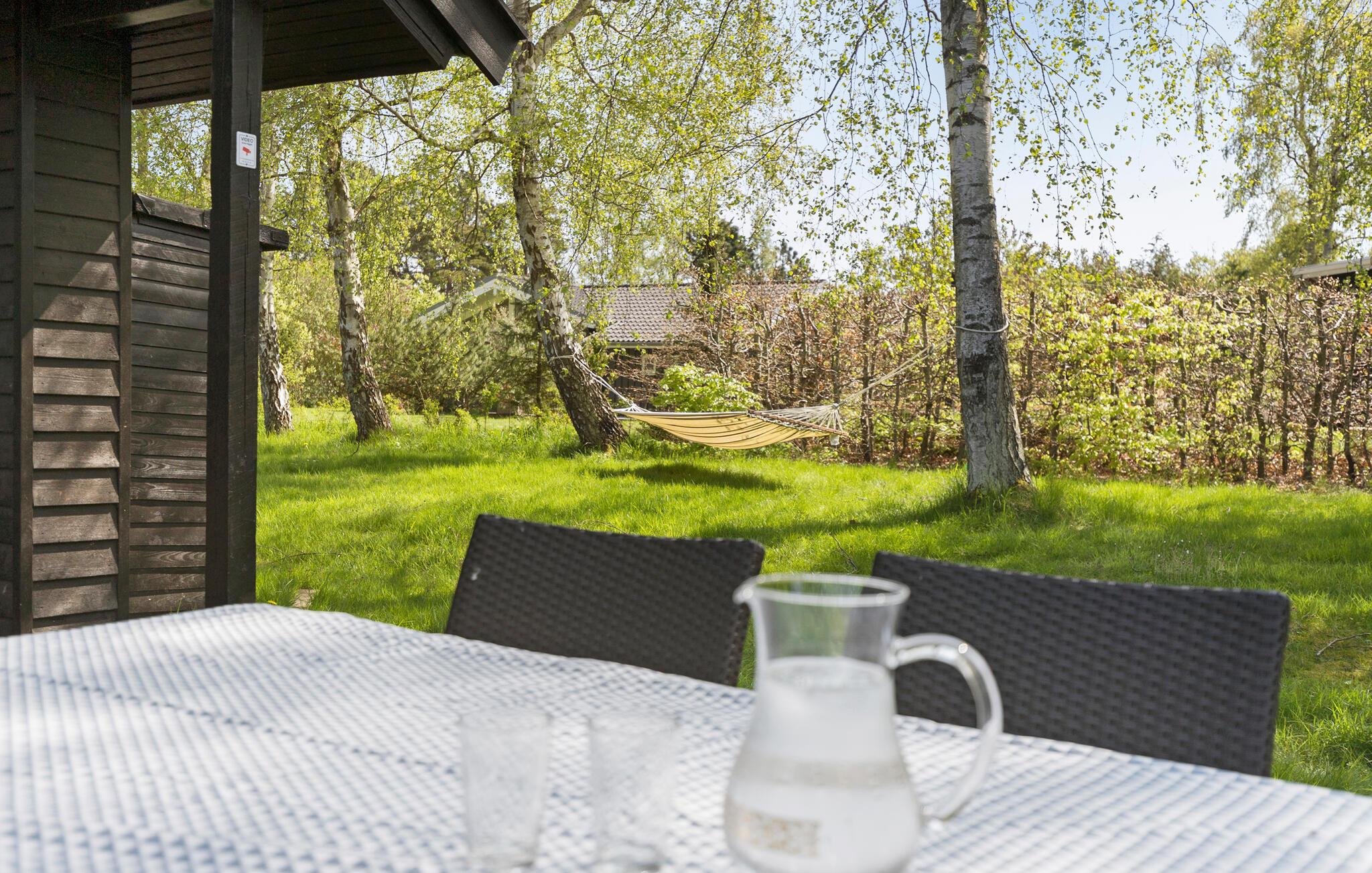 Die große Holzterrasse sowie der Garten laden zum Verweilen in der Sonne oder im Schatten der Bäume ein. Faulenzen Sie in der Hängematte und kommen zur Ruhe.