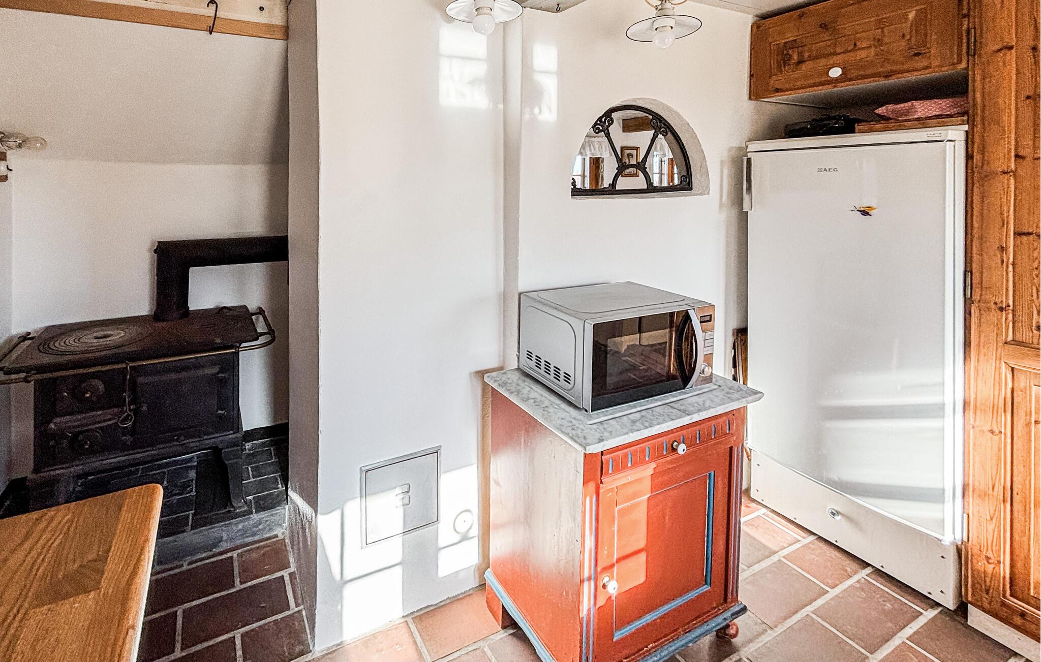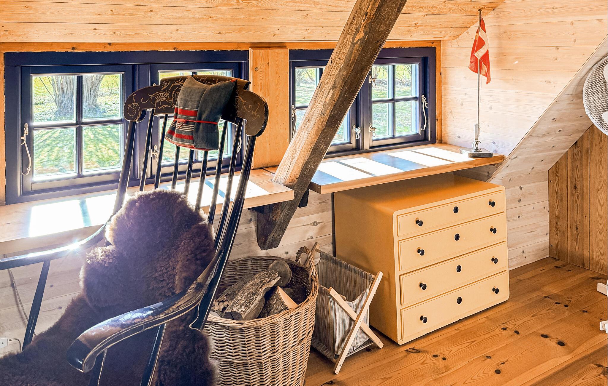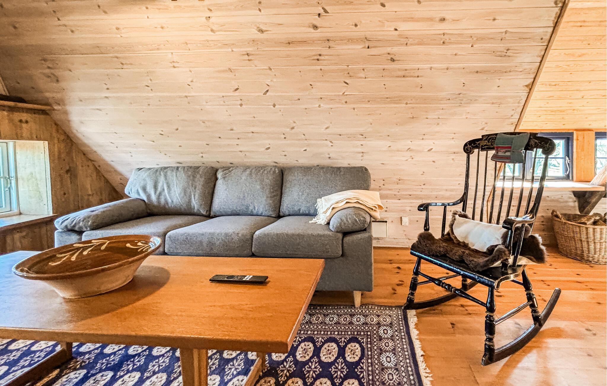 Betreten Sie das Haus und lassen Sie sich von der gemütlichen, rustikalen Einrichtung empfangen. Holzelemente, sichtbare Balken und der Kaminofen schaffen eine behagliche Atmosphäre. Machen Sie es sich in den bequemen Sesseln gemütlich oder verbringen Sie entspannte Stunden im oberen Wohnbereich unter dem Dach. Nutzen Sie den großzügigen Esstisch für gemeinsame Mahlzeiten oder gesellige Abende. Die Küche ist funktional gestaltet und bietet alles, was Sie für die Zubereitung Ihrer Speisen benötigen. Ziehen Sie sich zwischendurch zurück und genießen Sie ruhige Momente in den liebevoll eingerichteten Räumen.