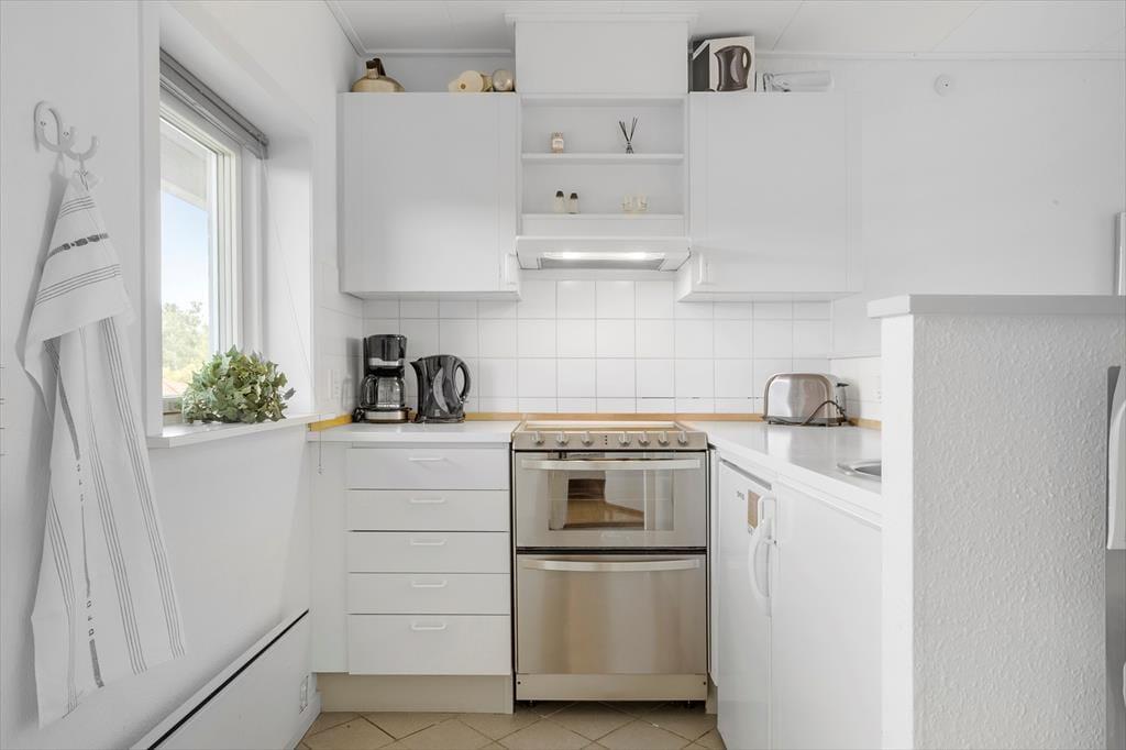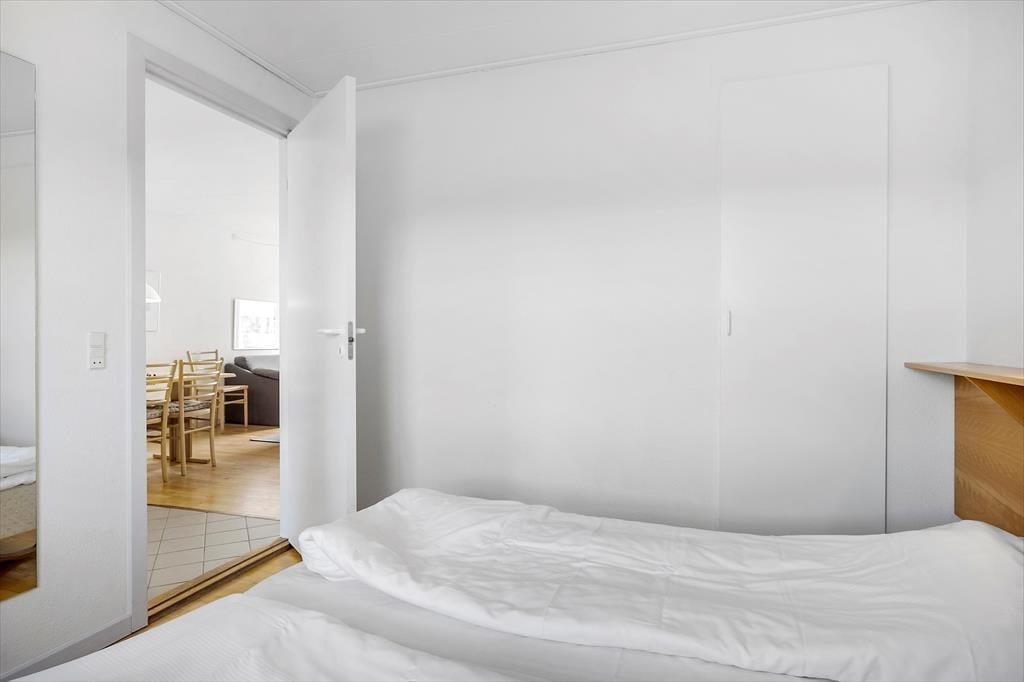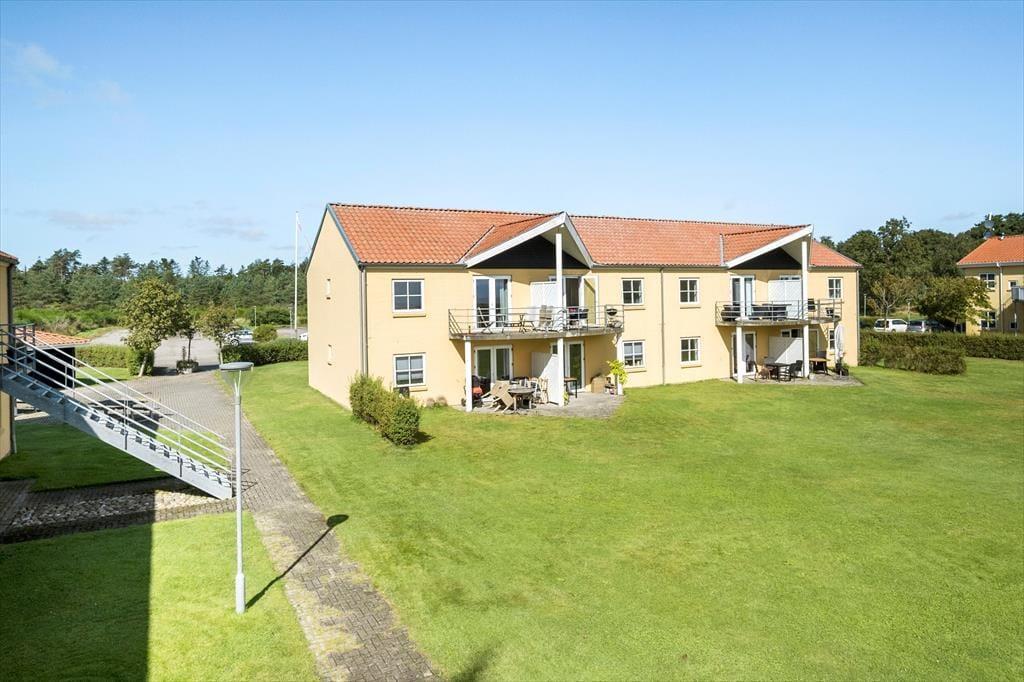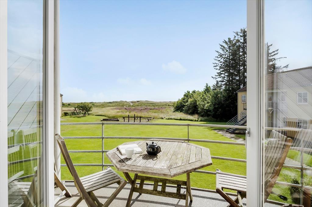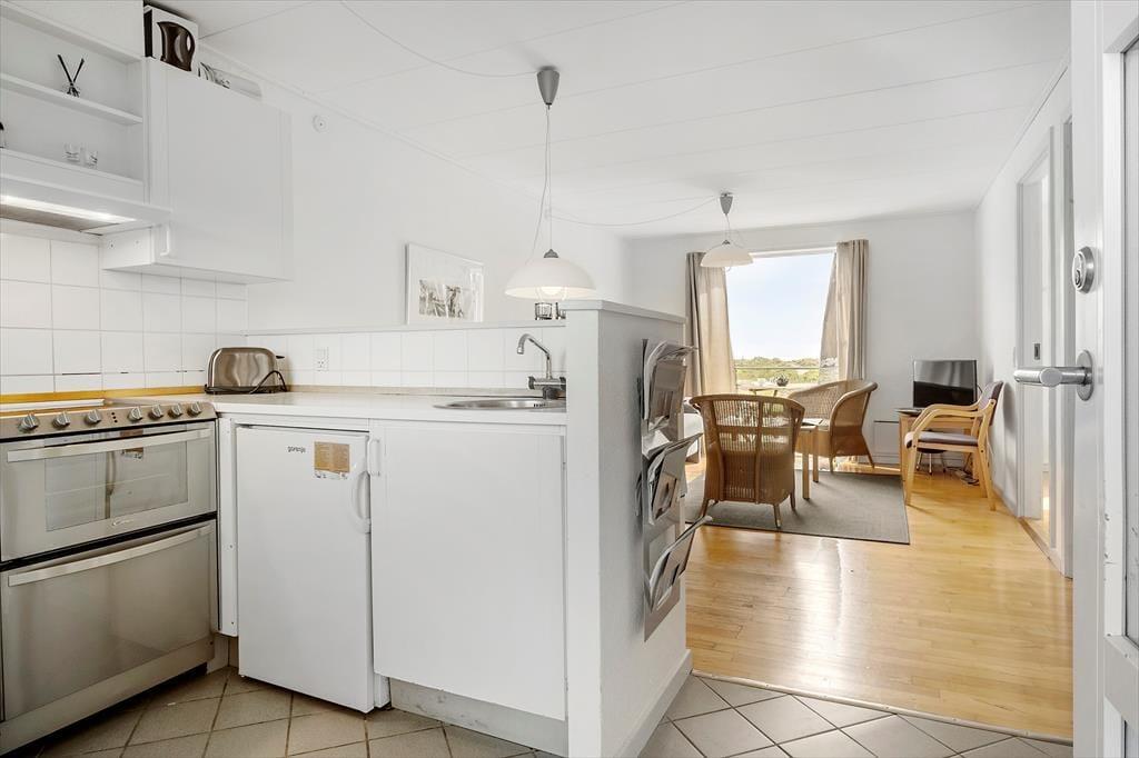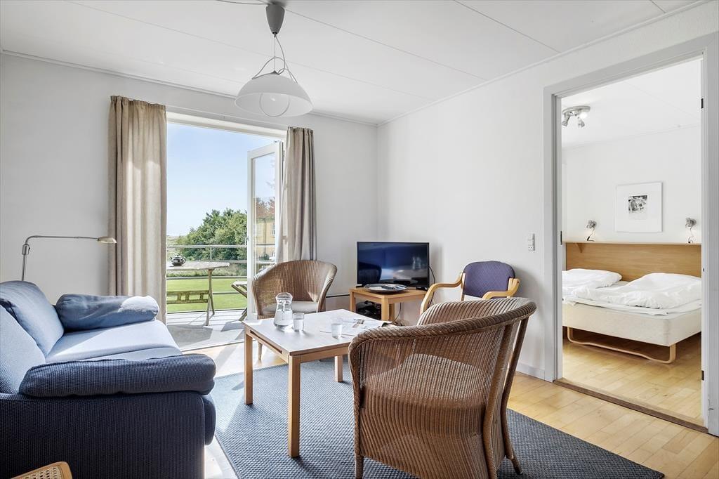 Hier im Obergeschoss, in dem diese Ferienwohnung liegt, wird Sie die beeindruckende Aussicht in den Bann ziehen. Vom Balkon, vom Wohnraum und von einem der Schlafräume blicken Sie über das Kattegat, die wunderschöne Küstenlinie und die Gemeinschaftsanlagen des Wohnkomplexes.
