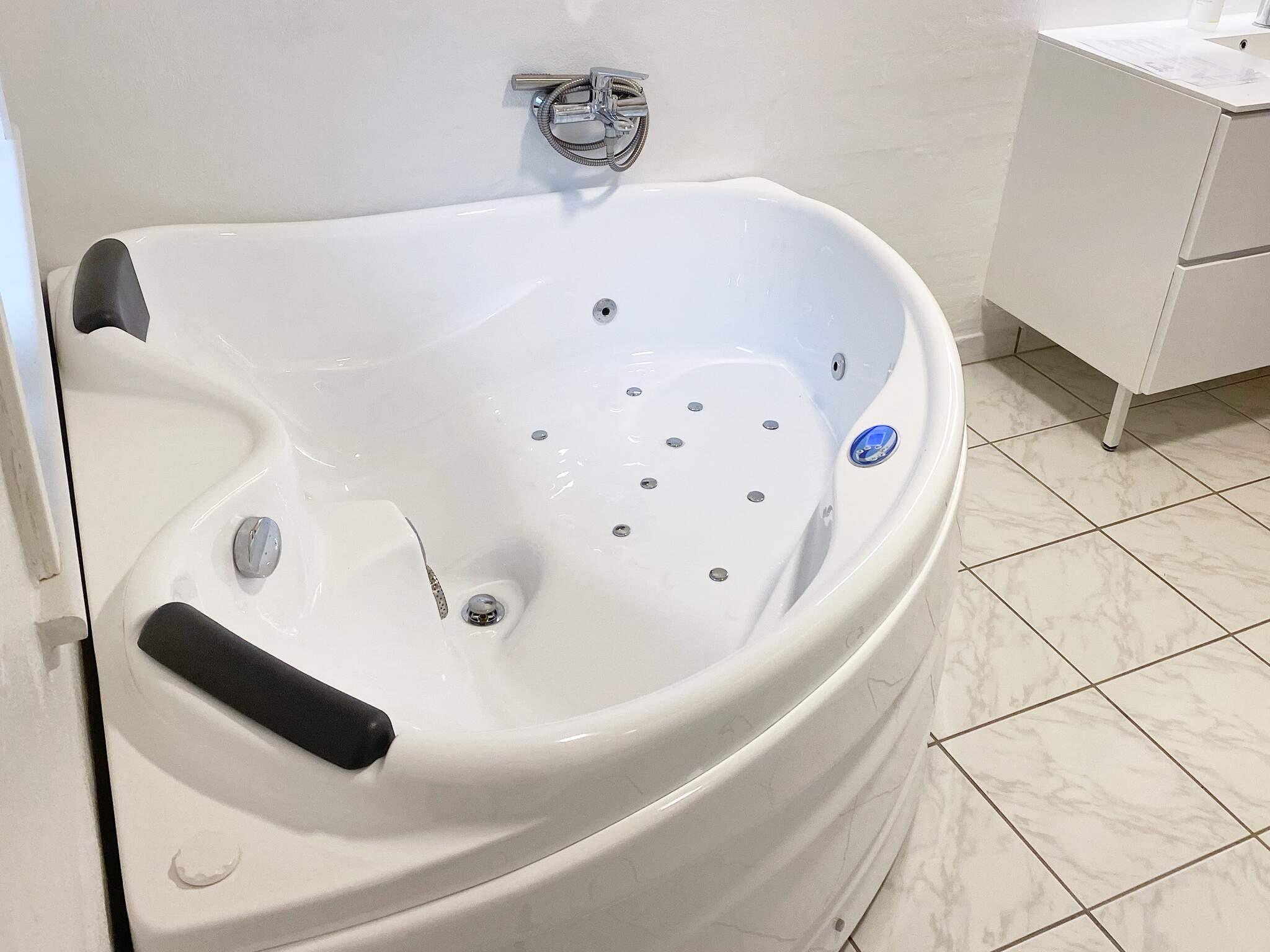 Das Badezimmer ist mit einer entspannenden Whirlpool-Badewanne ausgestattet, und im Hauswirtschaftsraum steht eine Waschmaschine zur Verfügung. Im Außenbereich erwartet die Gäste eine geflieste Ostterrasse, ideal für ein Frühstück in der Morgensonne, sowie eine zweite Südterrasse, ideal zum Genießen der Nachmittagswärme. Familien mit Kindern werden den Sandkasten und die Schaukel im Garten zu schätzen wissen, die den jüngsten Gästen Unterhaltung bieten.