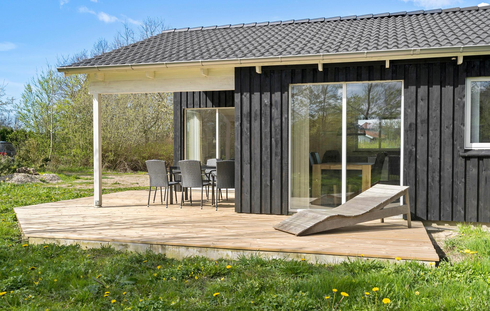 Modernes Holzferienhaus nahe Limfjordstrand mit Terrasse und vielfältigen Aktivitäten.