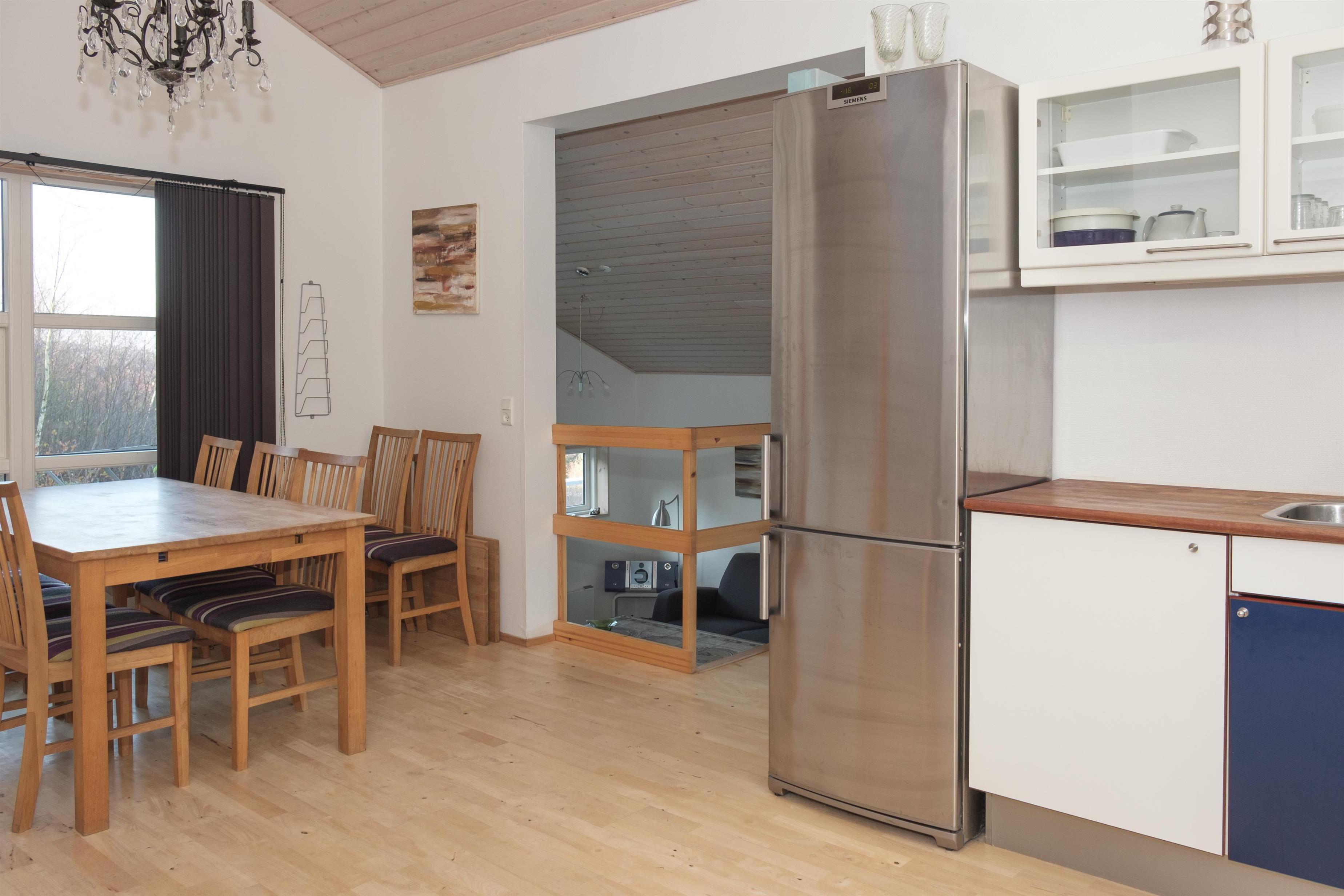 Dieses schöne und geräumige Haus in versetzten Ebenen liegt hoch auf einem abschüssigen Naturgrundstück mit schöner Aussicht auf das hügelige Gebiet Handrup Bakker. Das von den Jahren gezeichnete Haus zeigt deutliche Gebrauchsspuren, was sich auch im Preis widerspiegelt. Auf der großen Holzterrasse lässt sich die Natur in vollen Zügen genießen. Ein Ferienhaus für Naturfreunde, die nicht so viel Wert auf modernsten Komfort und Luxus legen.