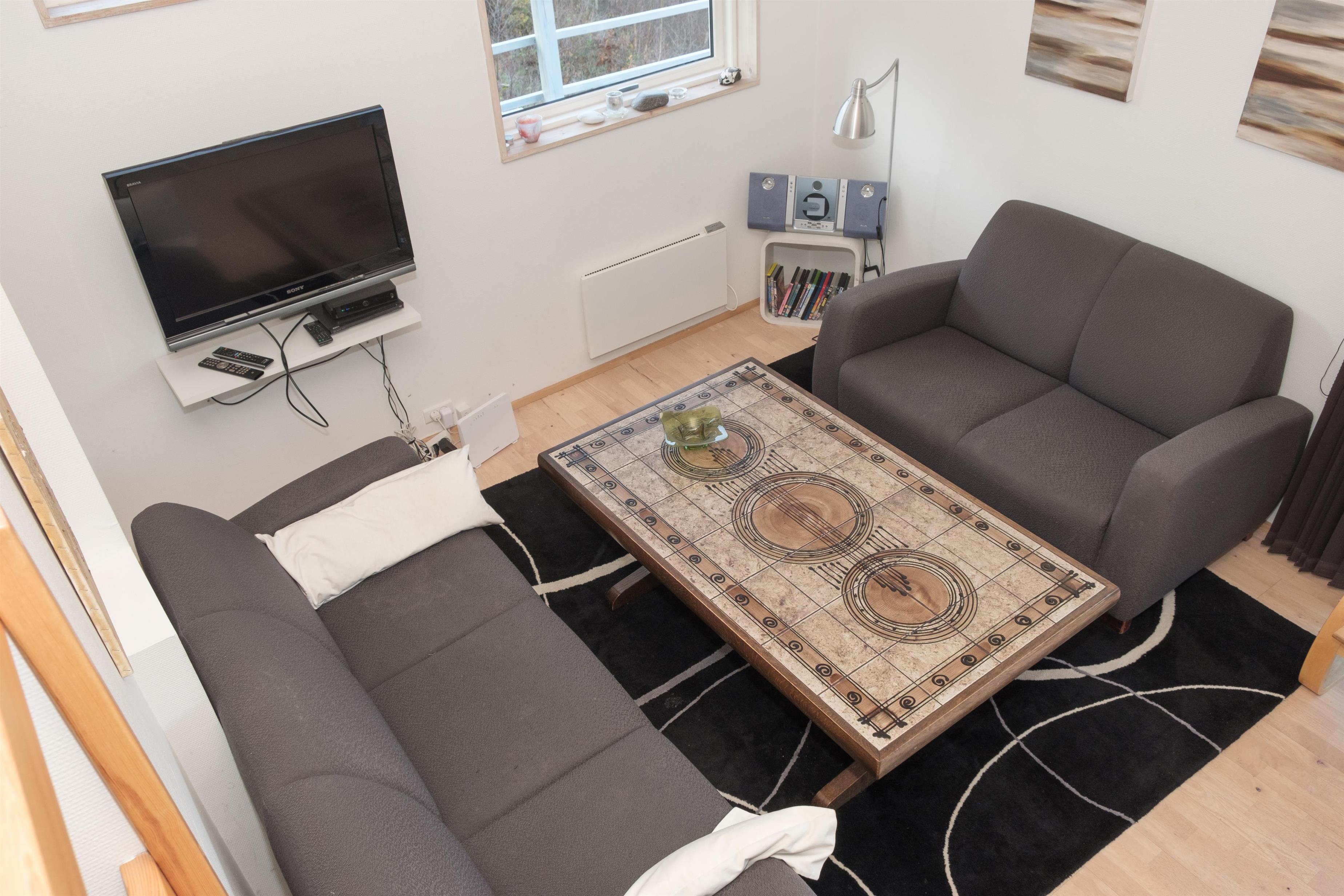 Das Haus präsentiert sich hell und freundlich mit rustikalem Charakter. Gemütliches Wohnzimmer mit behaglicher Sofaecke, Kaminofen, Fernseher zum Anziehen sowie Radio. Ein paar Stufen führen hinauf zum geräumigen Essbereich für acht Personen in offener Verbindung zur schönen, großen Küche mit Kühl-/Gefrierkombination, Glaskeramikherd, Einbaubackofen, Geschirrspüler und Mikrowelle. Vom Essbereich führt eine Treppe zu einer Galerie mit Zugang zum großen Badezimmer mit Fußbodenheizung und Sauna, einem weiteren WC/Bad, Waschmaschine und Trockner sowie zwei der insgesamt vier Schlafzimmer. Die acht Schlafplätze verteilen sich auf zwei Schlafzimmer mit Doppelbett und zwei Zimmer im ersten Stock mit einem französischen Bett bzw. zwei Einzelbetten. Internetzugang.