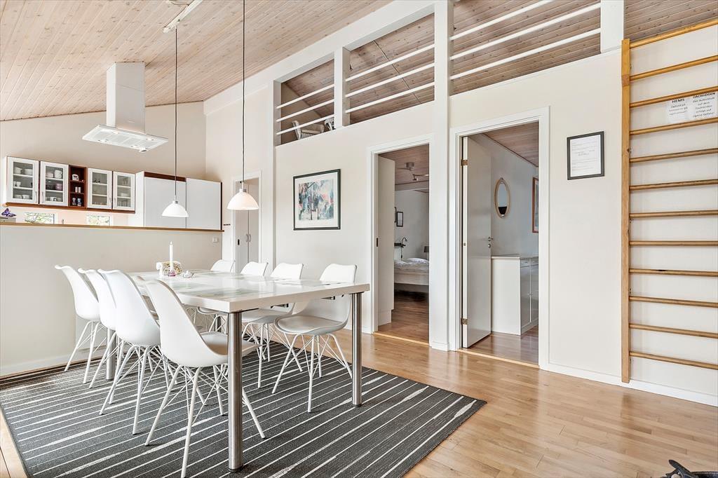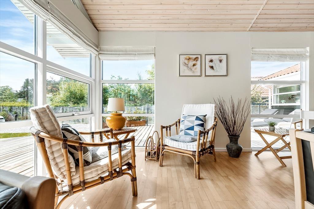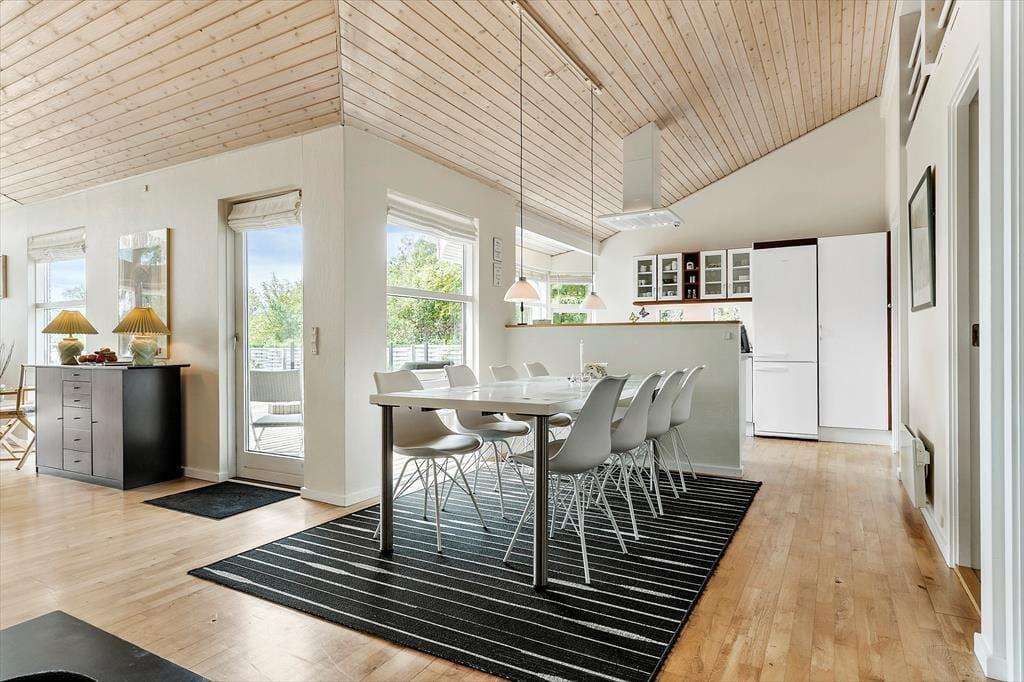 Du verbringst deine Urlaubstage im beschaulichen, beliebten Ferienhausgebiet Lyngsbæk Strand, das mit seinem schönen Sandstrand an der Ebeltoft Vig einen perfekten Rahmen für einen gelungenen Badeurlaub bietet. Binnen kurzer Zeit erreichst du den Nationalpark Mols Bjerge, in dem schöne Wander- und Fahrradwege zu einzigartigen Erlebnissen in der Natur einladen. Die alte Stadt Ebeltoft liegt rund 5 Kilometer abseits deines Hauses. Sie verzaubert mit ihren schmalen kopfsteingepflasterten Gassen und hübschen, von Stockrosen gesäumten Häusern. Historische Sehenswürdigkeiten, wie das alte Rathaus, in dem sich jedes Jahr unzählige Paare das Ja-Wort geben, sind auf jeden Fall einen Besuch wert. Das Glasmuseum in Ebeltofts Hafen besticht mit schönster Glaskunst. Im Hafen freuen sich zudem gemütliche Restaurants auf euren Besuch. Wenn du mit Kindern anreist, empfehlen wir euch einen Ausflug in den Safaripark Ree Park, in das Kattegatcentret in Grenaa und in das Djurs Sommerland. All diese tollen Attraktionen erreicht ihr per Pkw innerhalb von einer halben Stunde.