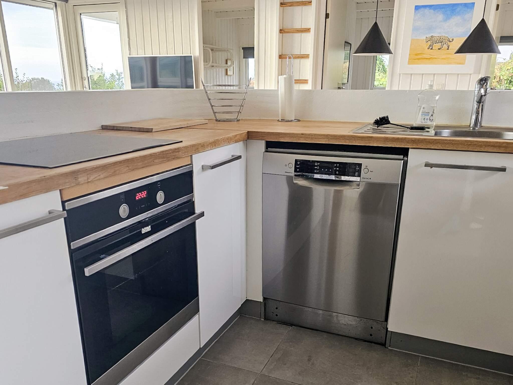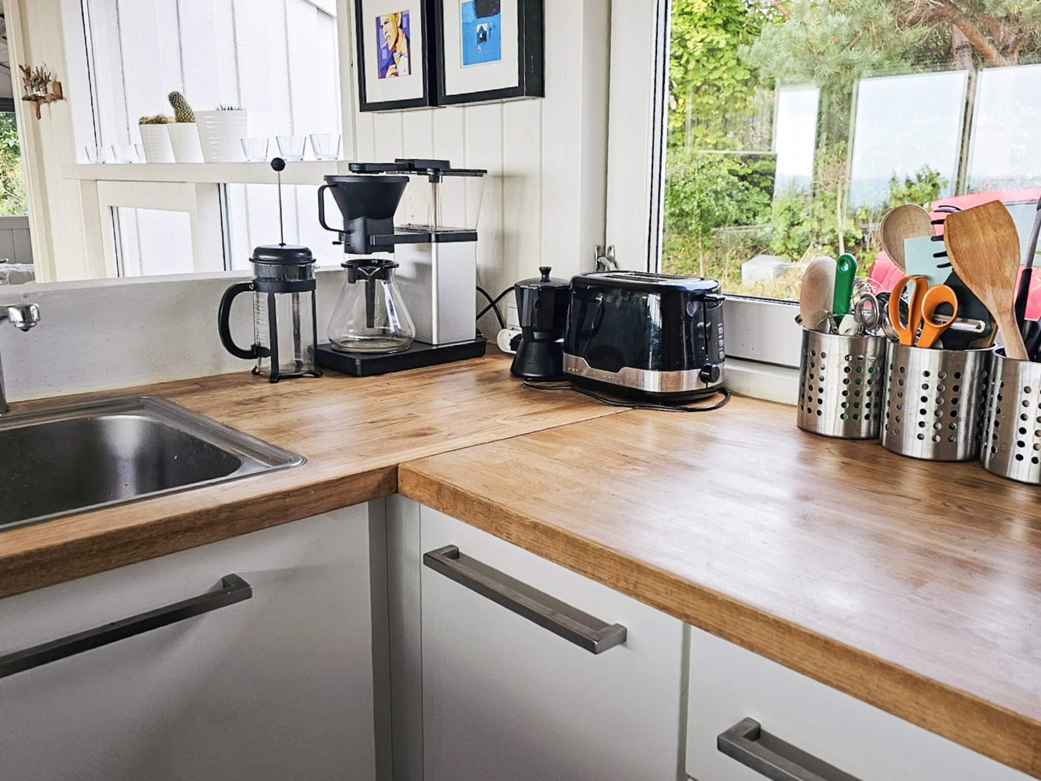 Das Haus ist sehr funktionell eingerichtet, u.a. mit einem großen Küchen-/Aufenthaltsbereich, der mit dem Wohnzimmer offen kombiniert ist, wo es u.a. einen Fernseher gibt. Die Küchenausstattung ist umfassend. Es gibt außerdem vier Schlafzimmer und zwei Bäder mit Dusche im Haus.