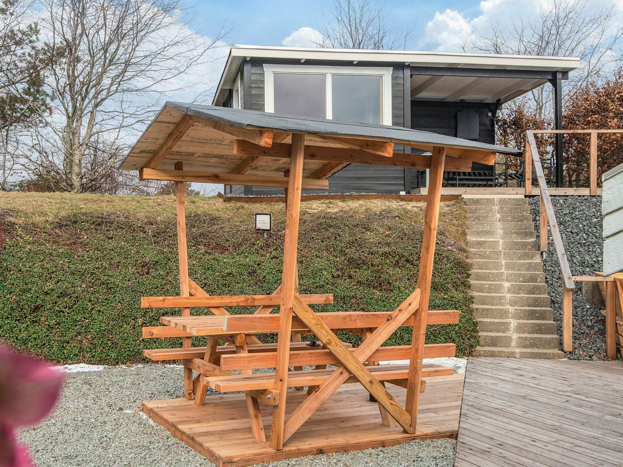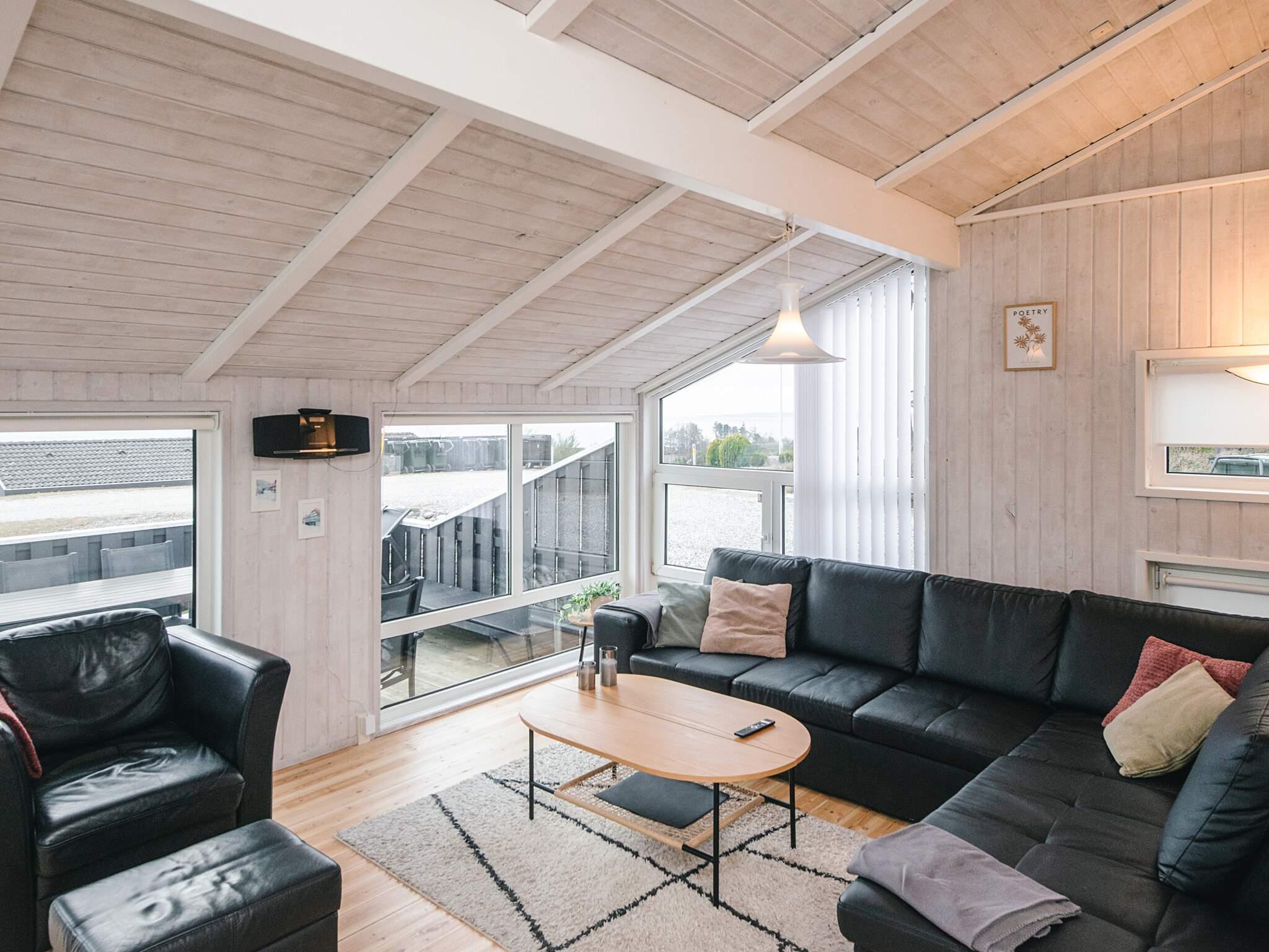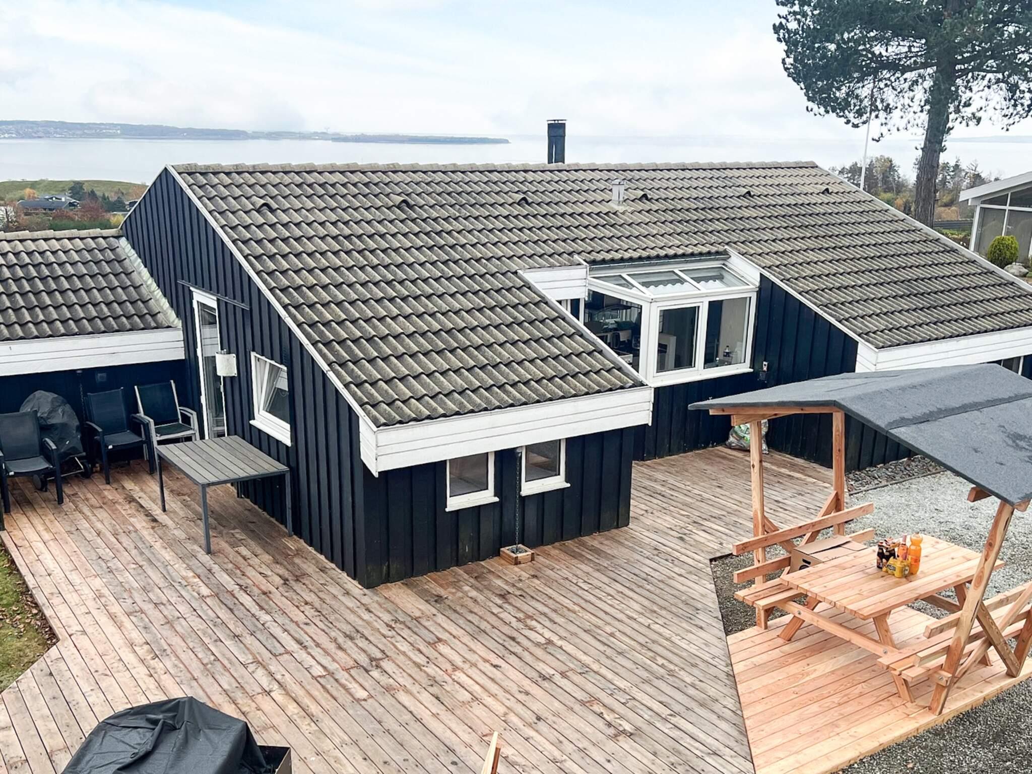 Gut gelegenes Ferienhaus mit Innenpool, Sauna und Panoramablick bei Handrup Bakker Dieses geräumige und gepflegte Ferienhaus befindet sich in der attraktiven Gegend Handrup Bakker, nahe Ebeltoft. Das Haus bietet Platz für bis zu 8 Personen und eignet sich sowohl für Familienurlaube als auch für Aufenthalte mit Freunden. Das Ferienhaus ist hell und modern eingerichtet, mit offen verbundenem Wohnzimmer und Küche. Vom Wohnzimmer aus genießen Sie einen herrlichen Panoramablick über die Bucht, die Küstenlinie und die Stadt Ebeltoft, und bei klarem Wetter ist Samsø am Horizont zu sehen. Das Haus ist mit energieeffizienten Lösungen ausgestattet, darunter eine Wärmepumpe und Klimaanlage, die das ganze Jahr über für ein angenehmes Raumklima sorgen. Eine Luft-Wasser-Wärmepumpe wird zur Beheizung des Pools genutzt, was die niedrigstmöglichen Kosten für die Poolheizung gewährleistet. Es gibt 4 Schlafzimmer und 2 Badezimmer mit Fußbodenheizung. Der hauseigene Innenpool und die Sauna bieten zu jeder Jahreszeit Entspannung. Im Außenbereich befindet sich ein 1.270 m² großes, angelegtes Grundstück mit schönen Terrassen nach Norden und Süden, Gartenmöbeln, Liegestühlen und Grill. Hier gibt es viel Platz zum Entspannen und Spielen, und außerdem eine gemütliche Feuerstelle, die zu Stockbrot und gemeinsamen Stunden an warmen Sommerabenden einlädt. Für die jüngsten Familienmitglieder gibt es einen Aktivitätsraum mit Platz zum Spielen und Verweilen – und gleichzeitig eine herrliche Aussicht, sodass sowohl Kinder als auch Erwachsene die Umgebung genießen können. Kostenlose Parkplätze sind auf dem Grundstück vorhanden, und ein Hund ist erlaubt. Die Umgebung bietet schöne Badestrände, malerische Wander- und Radwege sowie Restaurants in der Nähe. Ebeltoft liegt etwa 6 km vom Haus entfernt und bietet charmante Gassen, Einkaufsmöglichkeiten und Sehenswürdigkeiten. Das Ferienhaus ist außerdem ein idealer Ausgangspunkt für Ausflüge in Djursland und den restlichen Teil Ostjütlands. Ein gut ausgestattetes Ferienhaus in naturschöner Umgebung mit Fokus auf Komfort, Aussicht und Entspannung.