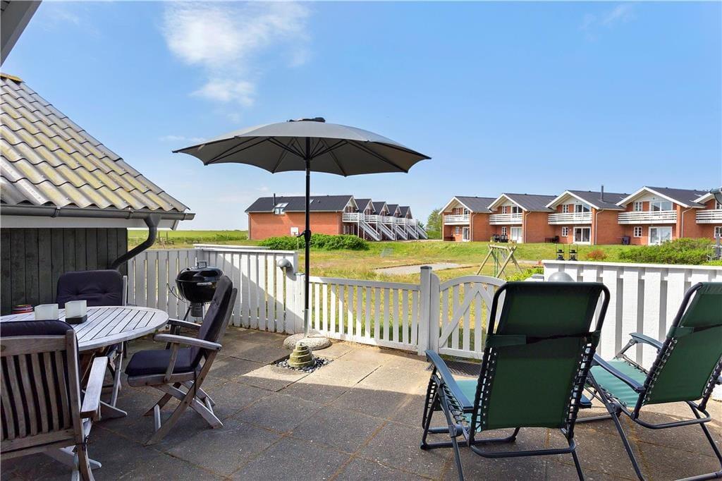 An jedem Ende des Hauses befindet sich eine private Terrasse, sodass du dein Urlaubsleben leicht nach draußen verlegen kannst, sobald die Sonne scheint. Eine Terrasse ist nach Osten ausgerichtet und eignet sich daher gut als Morgenterrasse, während die nach Westen ausgerichtete Terrasse größer ist und daher zu anderen Tageszeiten eine naheliegende Wahl darstellt. Von der Westterrasse aus kannst du auf die flache Küstenlandschaft blicken und beobachten, wie die Fähre langsam auf dem Wattenmeer vorbeifährt. Du hast auch einen guten Überblick auf den Spielplatz, der sich in der Nähe des Hauses befindet – so können die Kinder auf dem Spielplatz spielen, während du in den Gartenmöbeln sitzt.