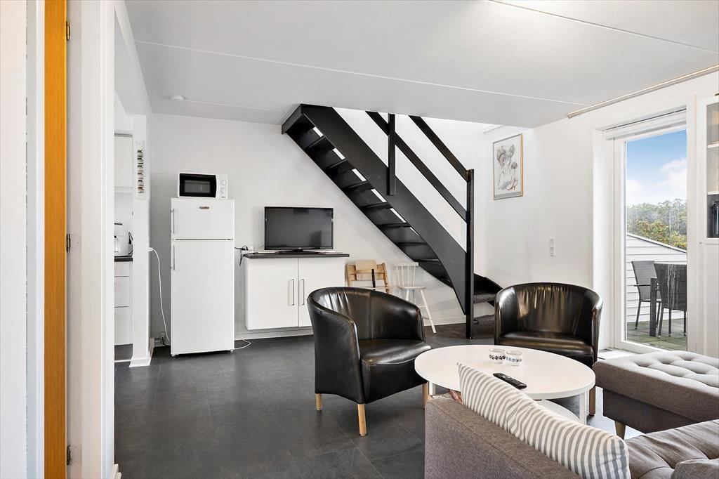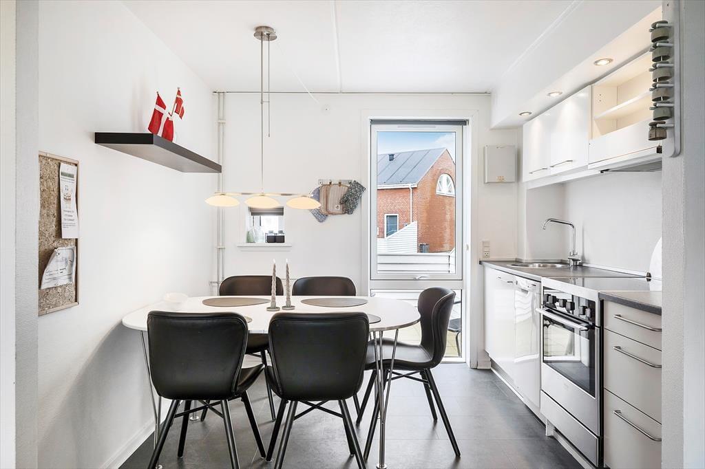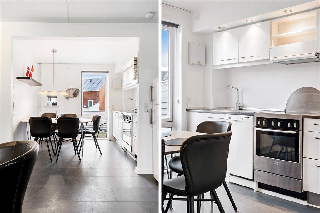 Kurz gesagt, es handelt sich um ein solides Reihenhaus, welches 2021 modernisiert wurde und 73 m² misst. Der Grundriss ist gut und familienfreundlich. Es gibt 3 Schlafzimmer, wovon sich eins im Erdgeschoss befindet. Die anderen beiden Schlafzimmer liegen im ersten Stock, hier befindet sich auch das Badezimmer. Der Aufenthaltsraum des Hauses ist im Erdgeschoss, wo Wohnzimmer und Küche offen miteinander verbunden sind. Im Küchenteil steht der Esstisch, an dem du dich zum Abendessen nach einem Tagesausflug versammeln kannst. Nach der Mahlzeit kannst du rüber in die Sofaabteilung rücken, um zum Beispiel einen guten Film im Fernsehen zu schauen.