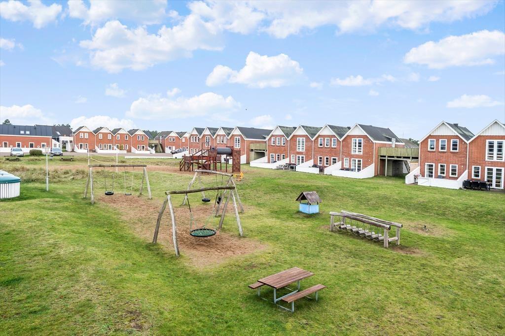 Wenn das Wetter zum Draußensein einlädt, kannst du das Familienleben auf die private Terrasse verlegen. Diese befindet sich direkt an einer Grünfläche, die an den Rømø Golfclub mit seinem tollen 18-Loch-Linksplatz angrenzt. Die schöne Aussicht bildet eine wunderschöne Kulisse, wenn du das Leben in den Gartenmöbeln genießt oder dich auf den Grillabend vorbereitest. Am Hauptgebäude des Centers befindet sich eine Ladestation für Elektroautos.