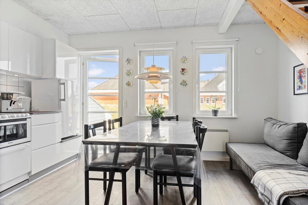 Wenn du nicht bereits in Urlaubsstimmung bist, wirst du es sicherlich, wenn du dich an einem sonnigen Morgen mit einer guten Tasse Kaffee auf der Terrasse niederlässt. Der ganze Tag liegt vor dir, und es liegt ganz bei dir und deiner Gesellschaft, ob ihr einfach nur hier in den Gartenmöbeln faulenzen möchtet oder ob ihr euch bei gutem Wetter aufmacht, um ganz Rømø zu erkunden. Die große nach Süden ausgerichtete Terrasse ist teilweise abgeschirmt, und die Holzterrasse auf der anderen Seite des Hauses hat auch einen Zaun zum Nachbarn hin, aber sonst ist alles offen, sodass die Kinder leicht auf die grünen Gemeinschaftsflächen und zum Ferienzentrum gelangen können.